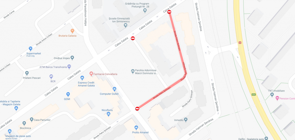 • strada Petru Șchiopu (tronsonul marcat) din Galata, de marți, 4 septembrie, până vineri, 7 septembrie;