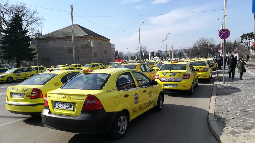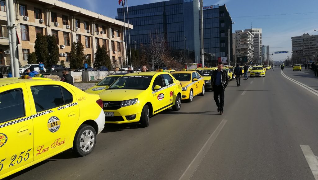 Astăzi, în intervalul orar 10:00 – 13:00, operatorii de taxi protestează împotriva concurenţei neloiale a aplicaţiilor de transport persoane şi cer înăsprirea prevederilor legale adoptate deja în acest sens.