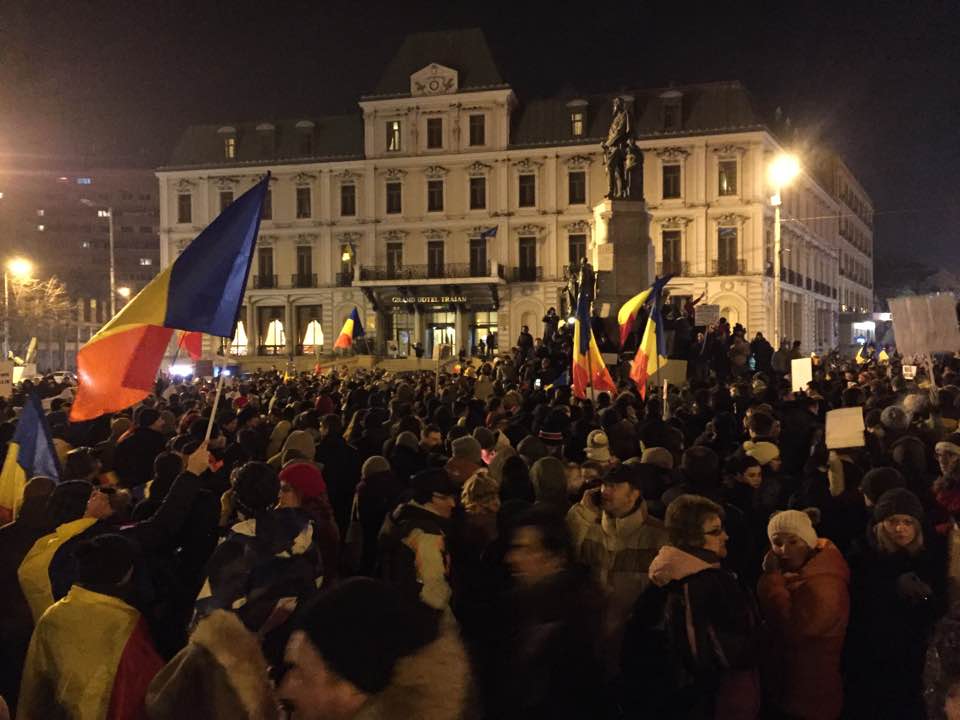 UPDATE, ORA 18:00 – Peste 1200 de persoane protestează în Piaţa Unirii din Iaşi, faţă de decizia Guvernului de a modifica, prin ordonanţă de urgenţă, codurile penale.