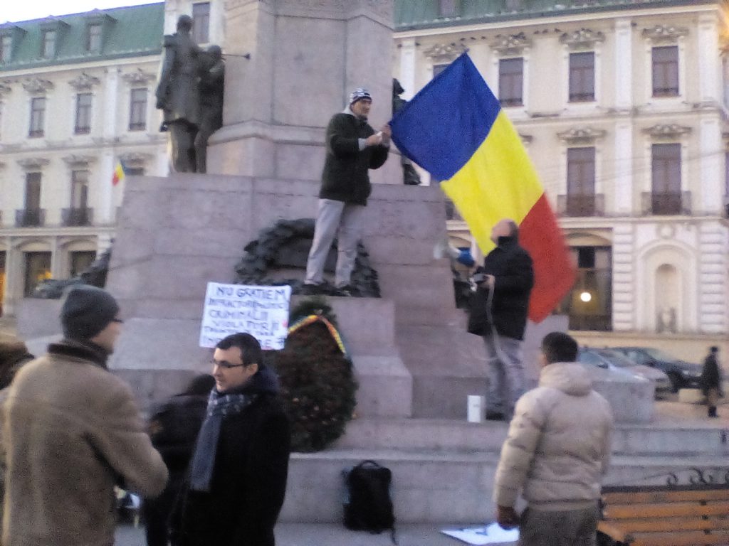 Ora 17:00 – Aproximativ 50 de persoane s-au adunat, în această după amiază, în Piața Unirii din Iași, nemulţumite de adoptarea ordonanţelor privind justiţia.