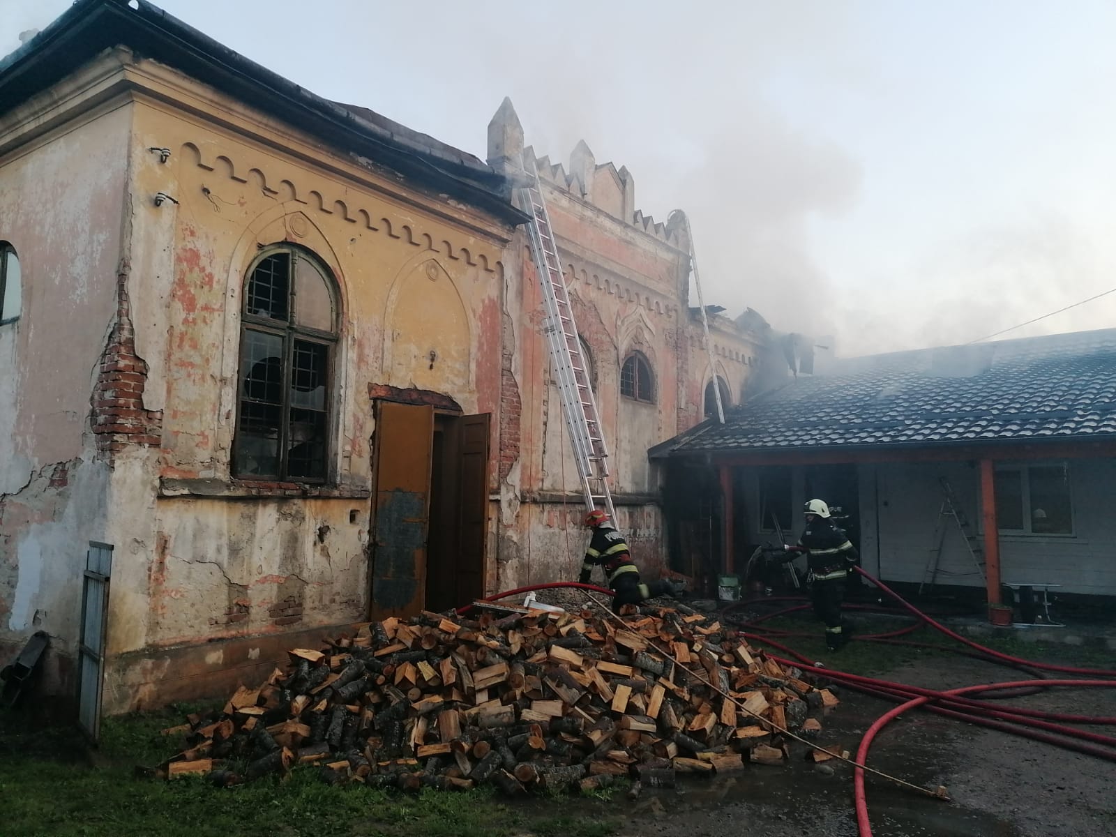 La sosirea echipajelor, incendiul se manifesta generalizat la două construcții anexe, corp comun, iar flăcările erau propagate la acoperișurile din lemn ale clădirilor alipite de acestea (o sinagogă dezafectată, o casă de rugăciune, o anexă de locuit și o locuință). În urma incendiului s-au degradat mai multe elemente de construcție ale clădirilor afectate.
