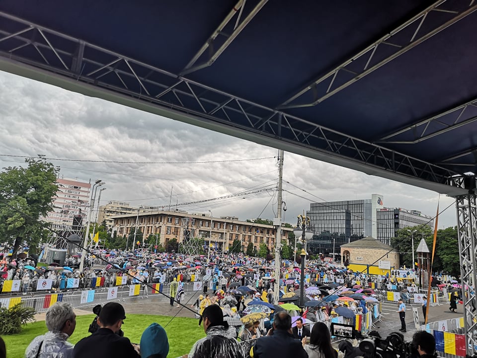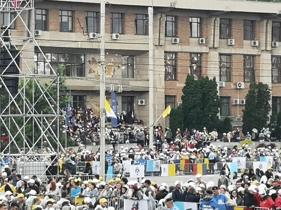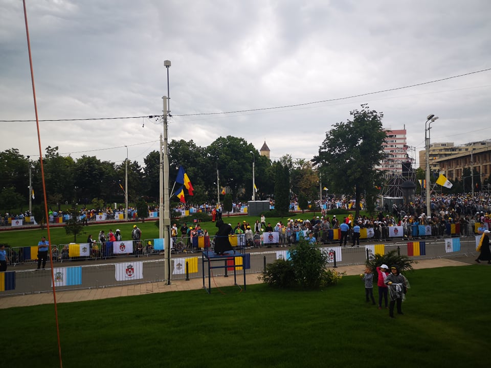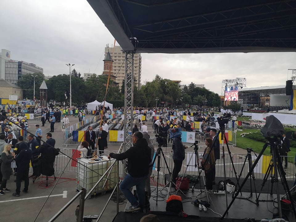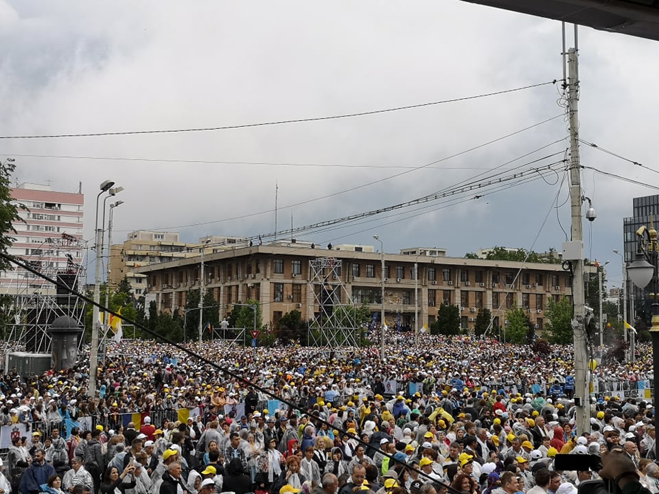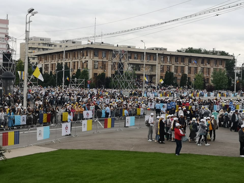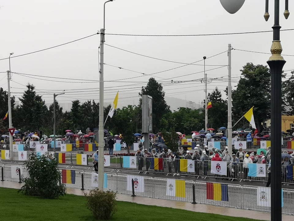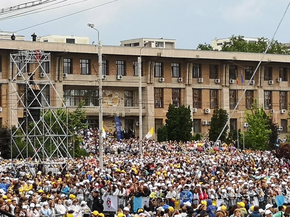 UPDATE ora 19:05 Papa Francisc pleacă de la Iaşi, oraş în care a vizitat Catedrala romano-catolică ‘Sfânta Maria Regină’ şi a avut o întâlnire mariană cu tinerii şi cu familiile în Piaţa Palatului Culturii, fiind întâmpinat de peste 100.000 de oameni.