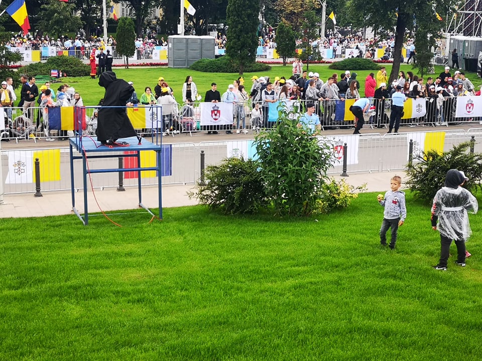 UPDATE – 16:10 – Se aşteaptă din minut în minut aterizarea Papei Francisc la Iaşi. Piaţa Palatului este plină până la refuz. Aproximativ 70.000 de oameni aşteaptă să îl întâmpine pe Suveranul Pontif. Centrul Iaşului este survolat în acest moment de mai multe elicoptere. Icoana Făcătoare de Minuni a Maicii Domnului, adusă special de la Sanctuarul de la Cacica, a fost purtată în procesiune pe străzile Iaşului, iar acum este adusă pe scena din faţa Palatului Culturii.