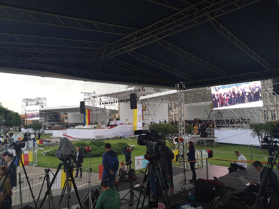 UPDATE ora 18.10: Papa Francisc se adresează mulțimii în Piaţa Palatului Culturii. Sfântul Părinte i-a salut pe oameni în limba română: „Bună seara!”