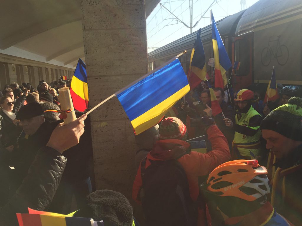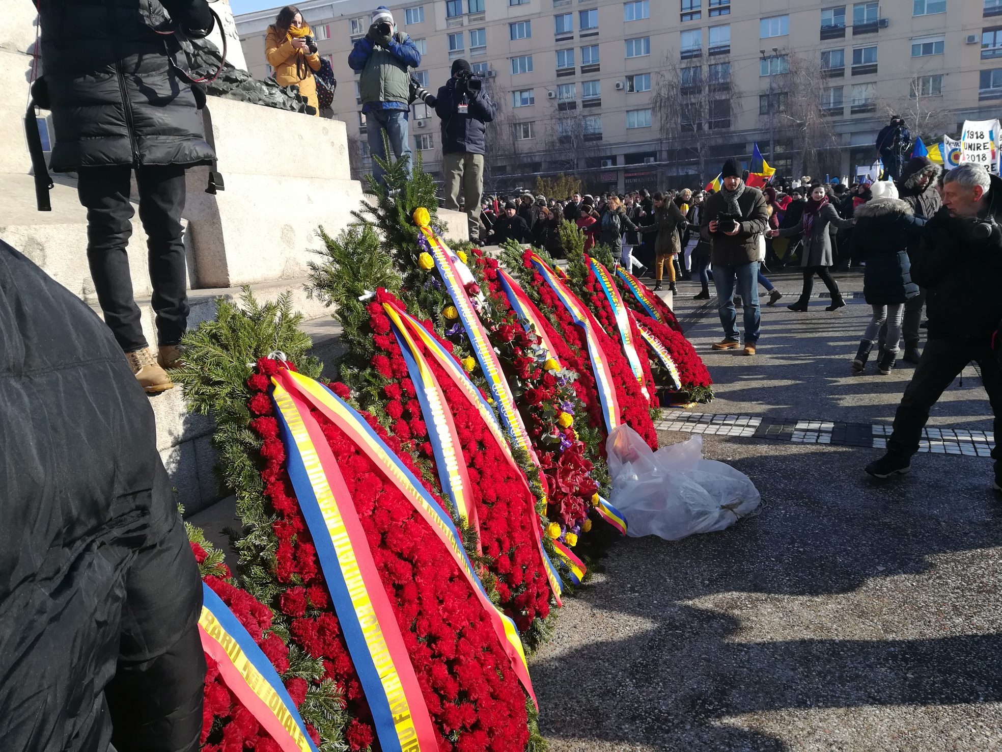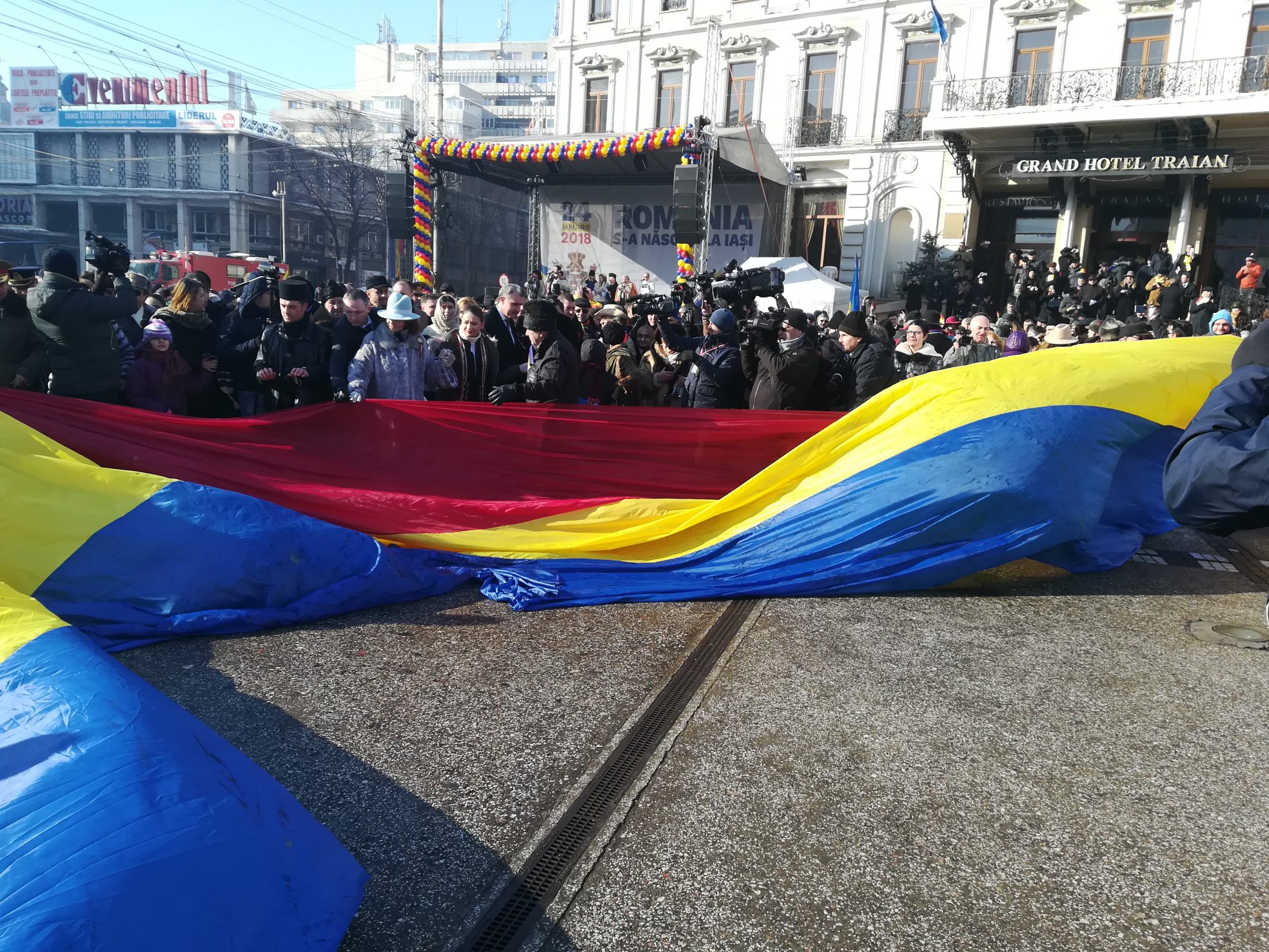 Astăzi, cu ocazia manifestărilor din Piaţa Unirii de la Iaşi, un grup de aproximativ 500 de tineri basarabeni au desfăşurat un drapel tricolor pe o lungime de o sută de metri.