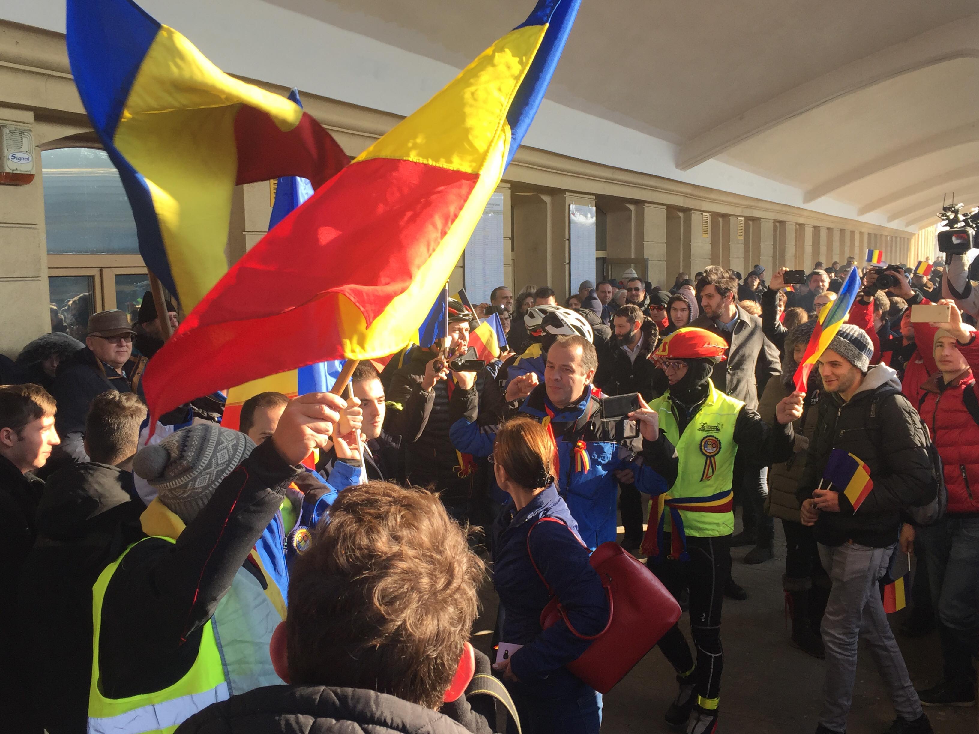 La destinaţie, ei au marcat Ziua Unirii cu o horă, după care au pedalat pe stăzile oraşului pentru a schiţa harta României: