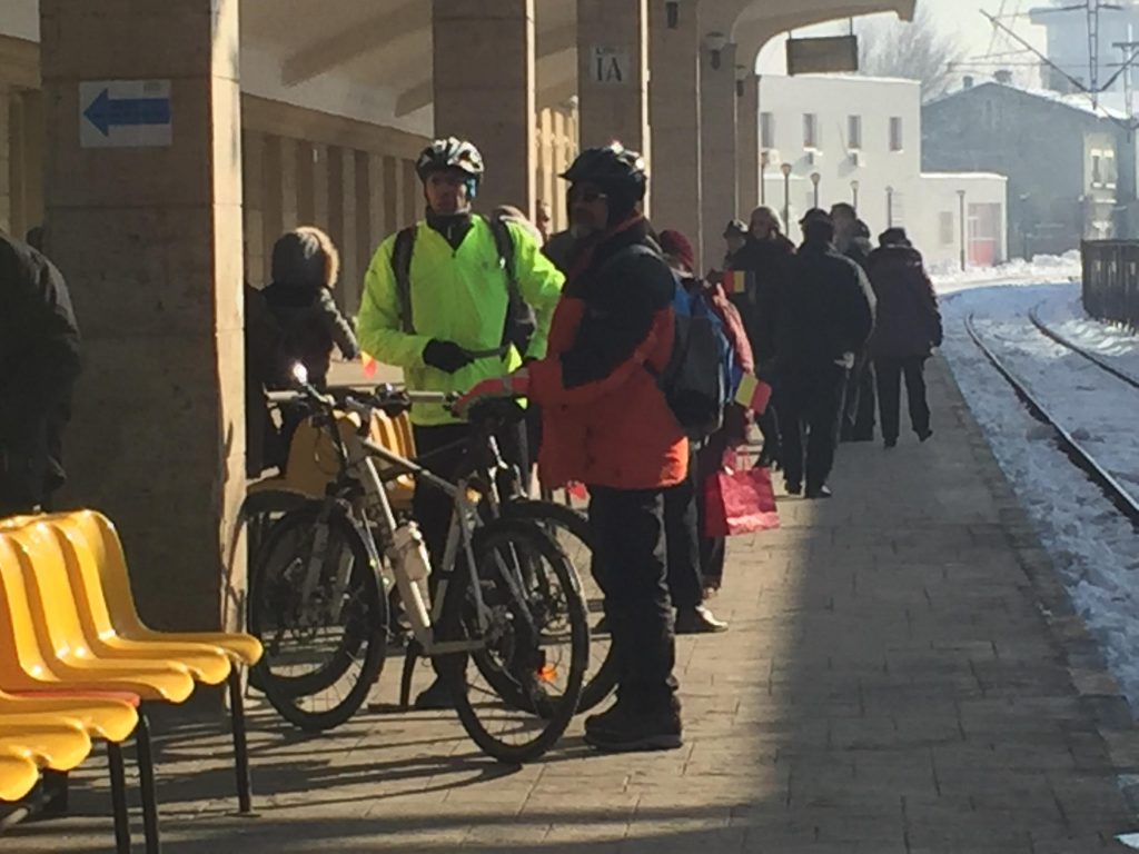 Printre pasageri sunt şi biciclişti din Bucureşti, cărora li se alătură oameni cu aceeaşi pasiune din Focşani, Bârlad şi Iaşi.