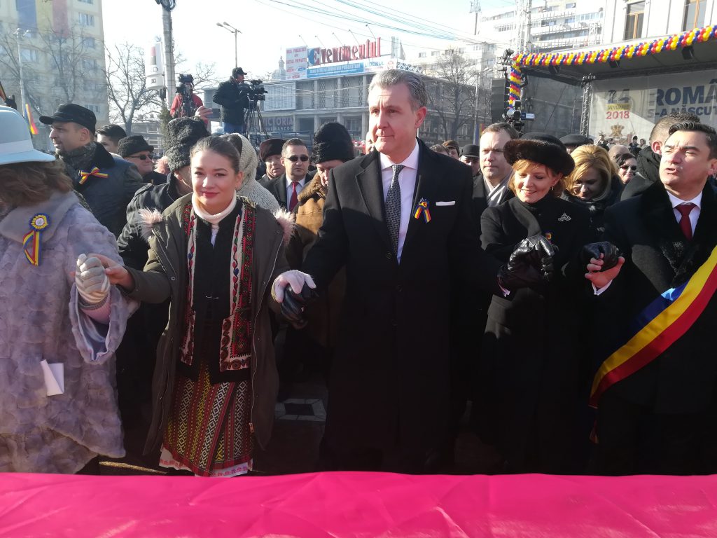 ora 11.00 – 12.00: Manifestările oficiale: Te Deum, Discursurile oficialităţilor locale şi centrale, Depunere coroane de flori la statuia Domnitorului Al. I. Cuza, Parada Militară, Hora Unirii „Hai să dăm mână cu mână”