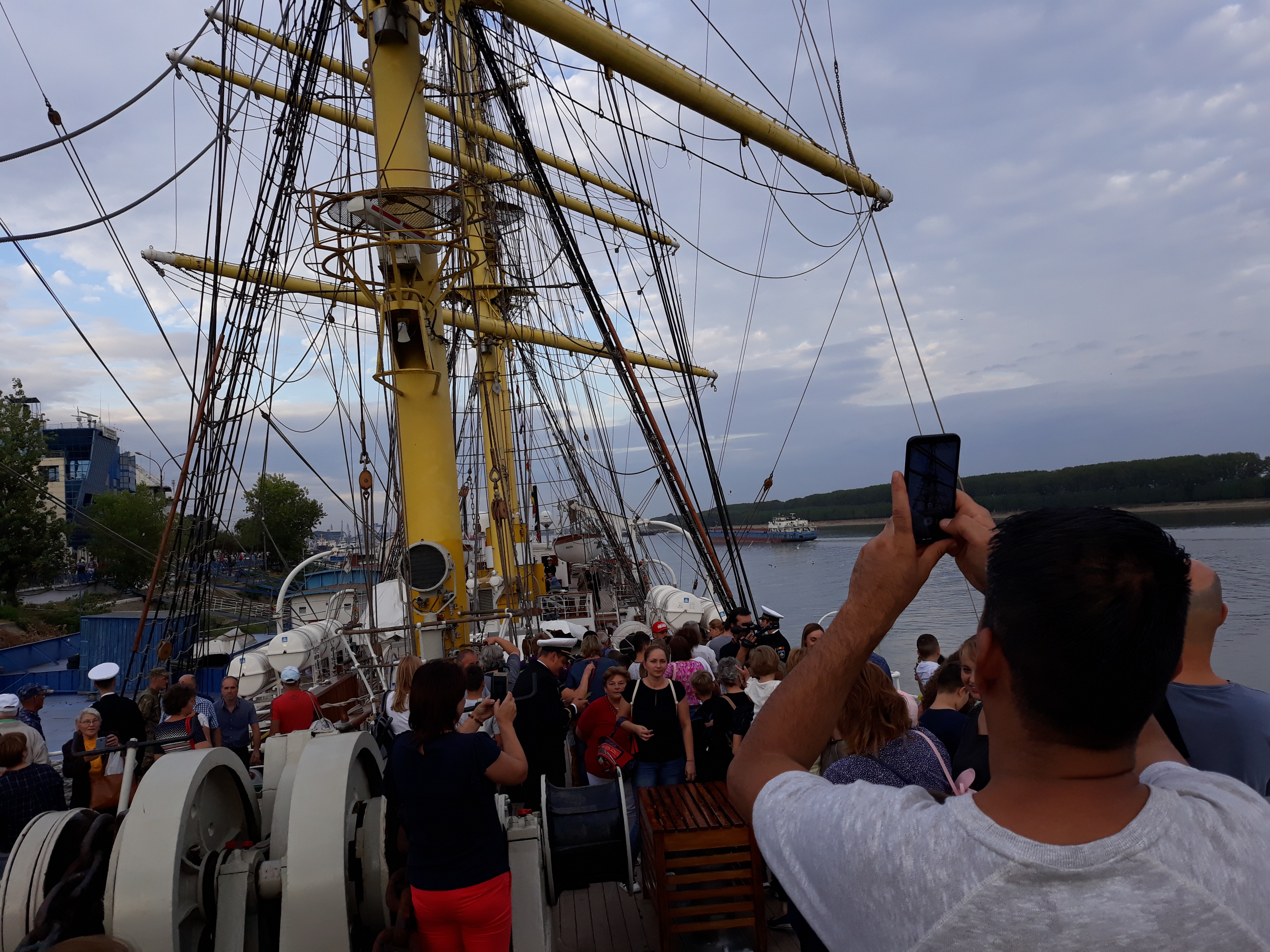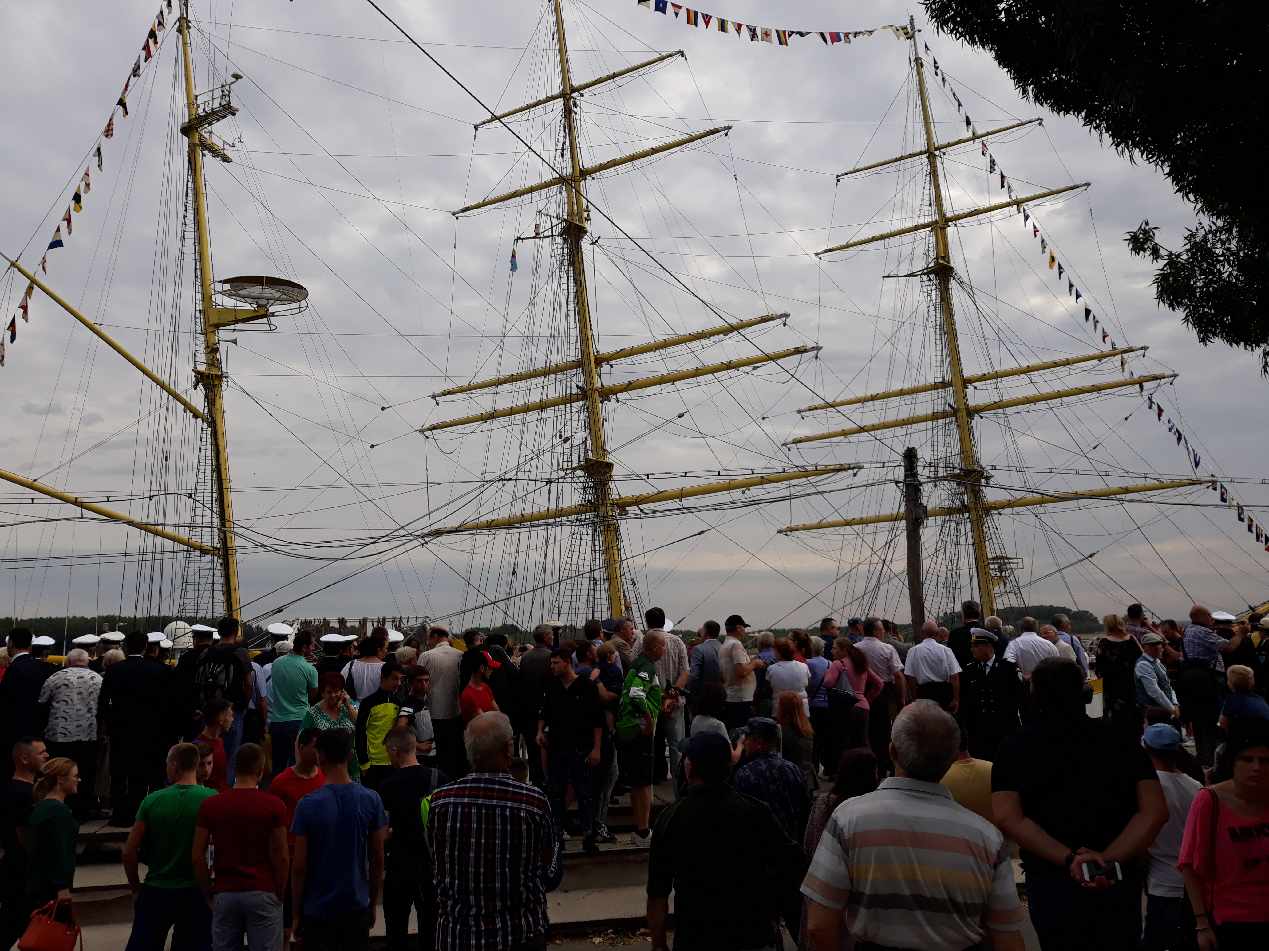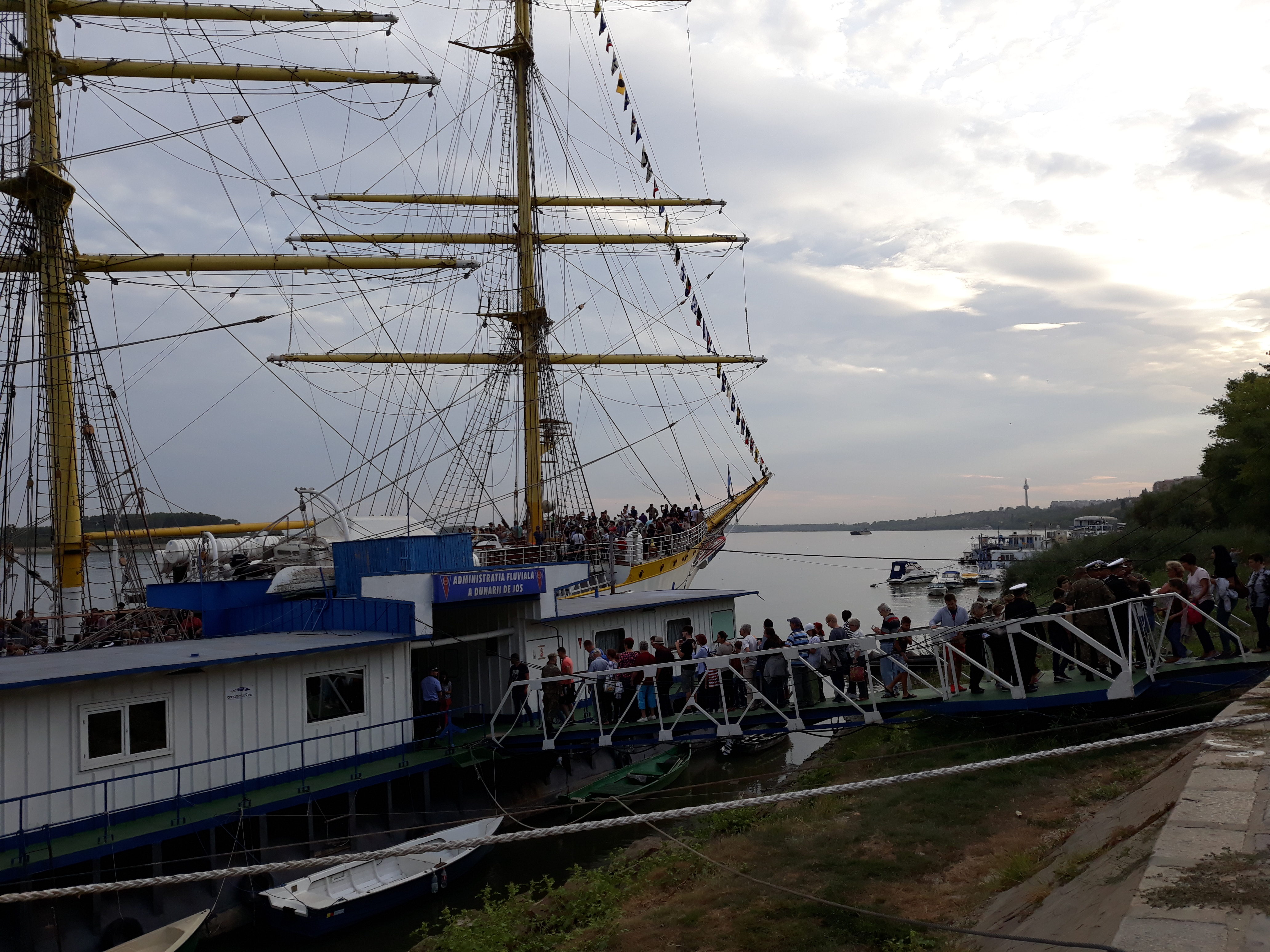 (FOTO) Nava-școală „Mircea” a ajuns, ieri, la Galaţi. Peste o mie de oameni au aşteptat să o viziteze
