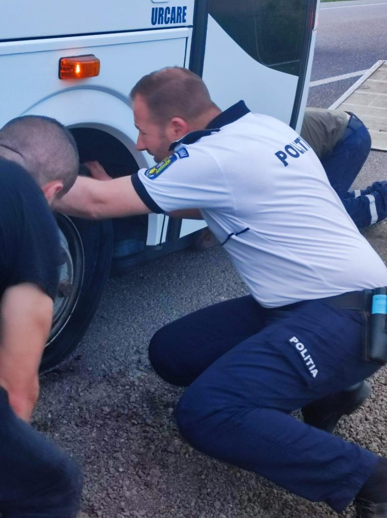 Colegii noștri din cadrul Biroului Rutier Roman, au identificat un vulcanizator mobil, împreună cu care au remediat defecțiunea.