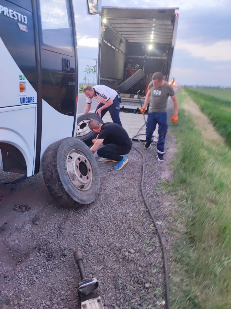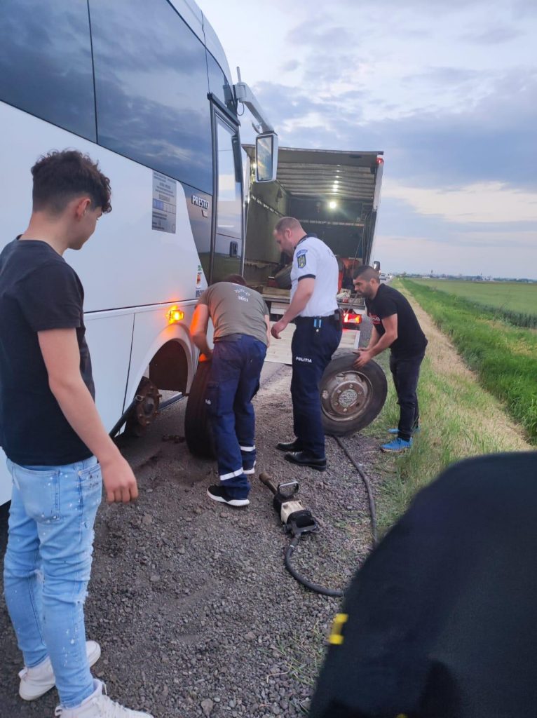 (FOTO) NEAMȚ: Explozia unei anvelope a întrerupt călătoria unui grup de copii