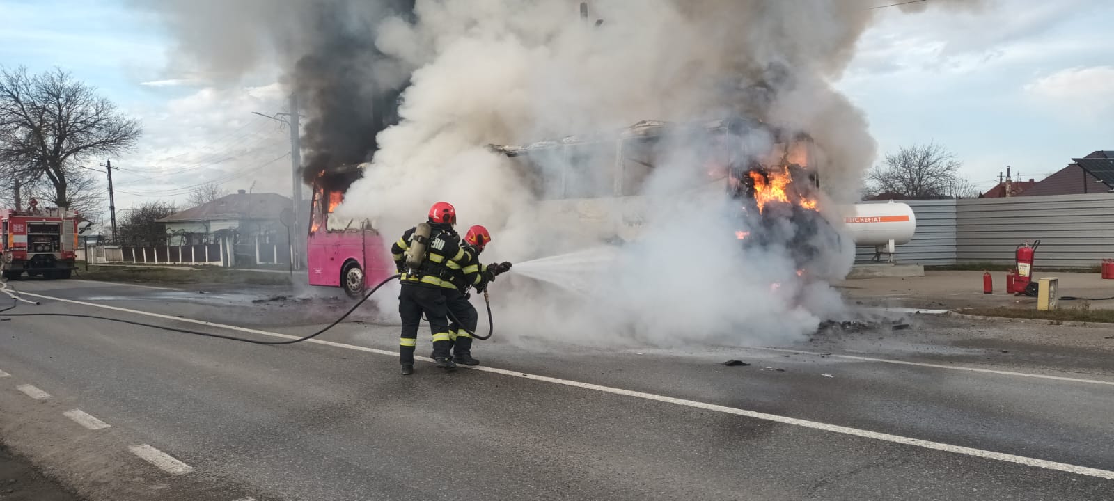 Un autocar în care se aflau mai mulţi călători a luat foc în mers, miercuri, în dreptul unei staţii GPL din localitatea Gherăieşti, a informat Inspectoratul pentru Situaţii de Urgenţă (ISU) Neamţ.