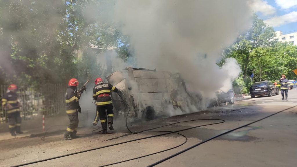 O dubă a luat foc pe Aleea Decebal din municipiul Iaşi.