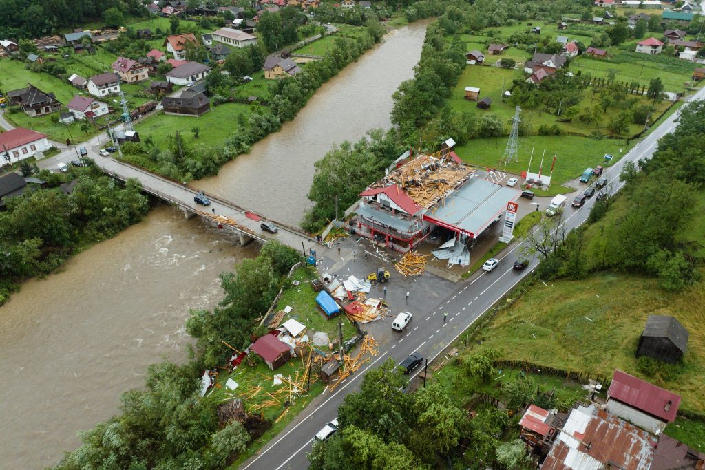 Și stația de alimentare Lukoil din satul Stejaru a fost avariată de furtună.