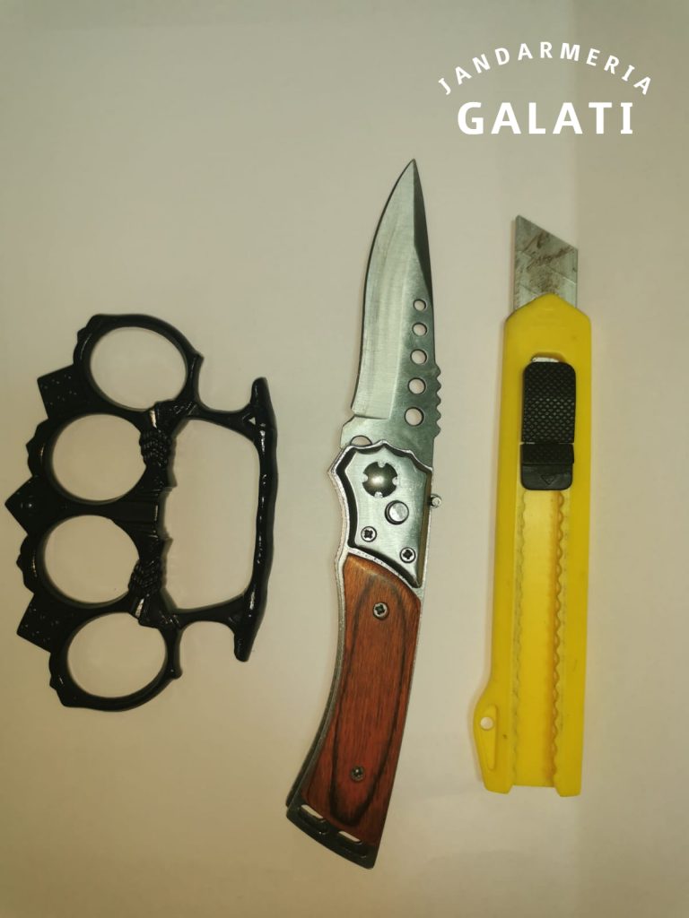 Au fost descoperiți și alți doi tineri, de 21 și 22 de ani care purtau asupra lor unul un dispozitiv de luptă de tip “box” și un altul un cuter.