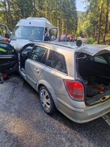 (FOTO) Suceava: Accident rutier pe raza localității Sadova, între un microbuz de transport copii și un autoturism
