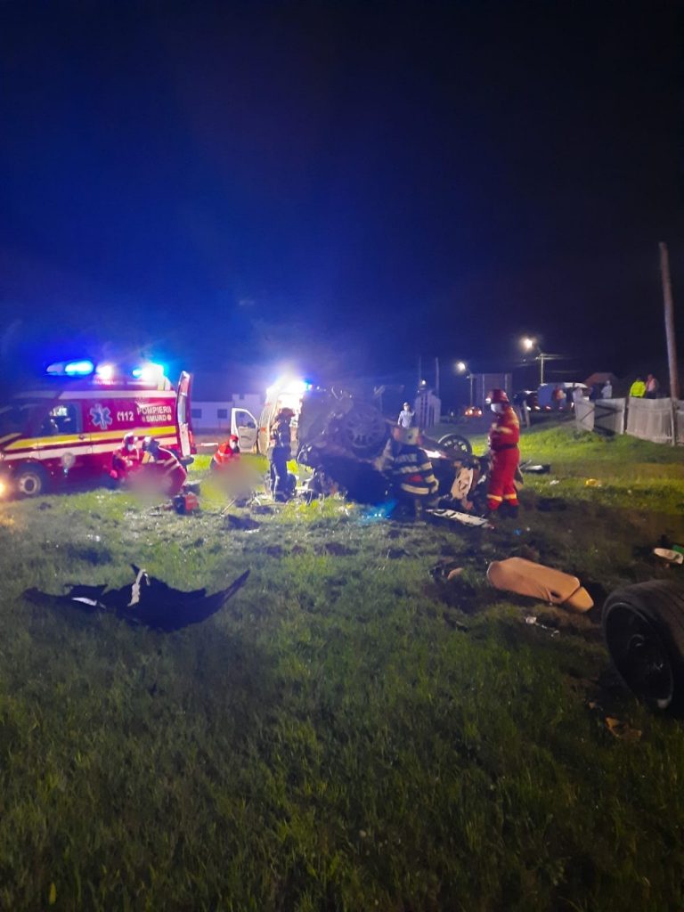 3 tineri, cu vârste cuprinse în 23 şi 30 de ani au decedat noaptea trecută, după ce s-au răsturnat cu autoturismul în afara parții carosabile.