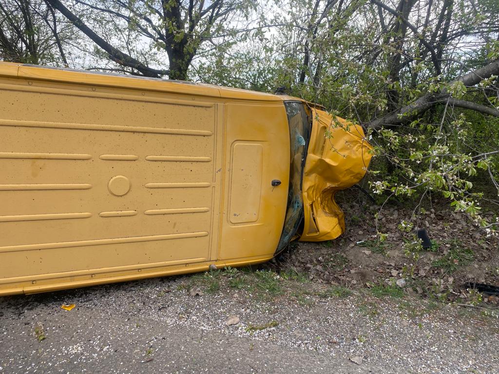 (FOTO) Suceava: Un microbuz cu copii s-a răsturnat la Vereşti