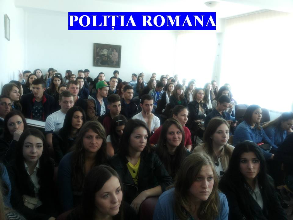 Luând în considerare aceste aspecte şi în vederea atingerii obiectivelor Programului de prevenire a delincvenţei juvenile şi victimizării minorilor 2015, poliţiştii Compartimentul de Analiză şi Prevenire a Criminalităţii au desfăşurat în perioada 18 – 24.05.2015 activităţi specifice de informare, responsabilizare şi conştientizare, acţiunile preventive fiind canalizate către toate categoriile de tineri cu grad de risc victimal.