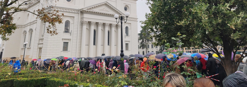 UPDATE – Rândul credincioșilor s-a restrîns și este format în curtea Catedralei Mitropolitane și pe Pietonalul Ștefan cel Mare.
