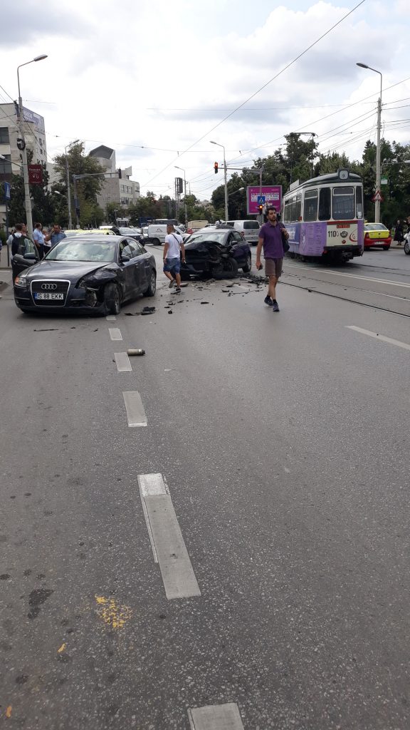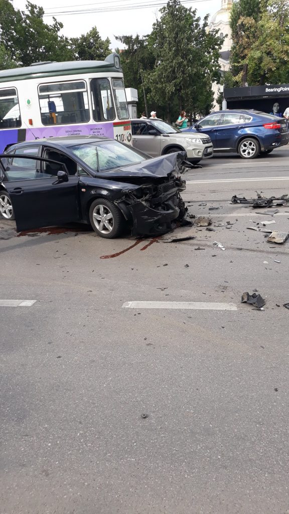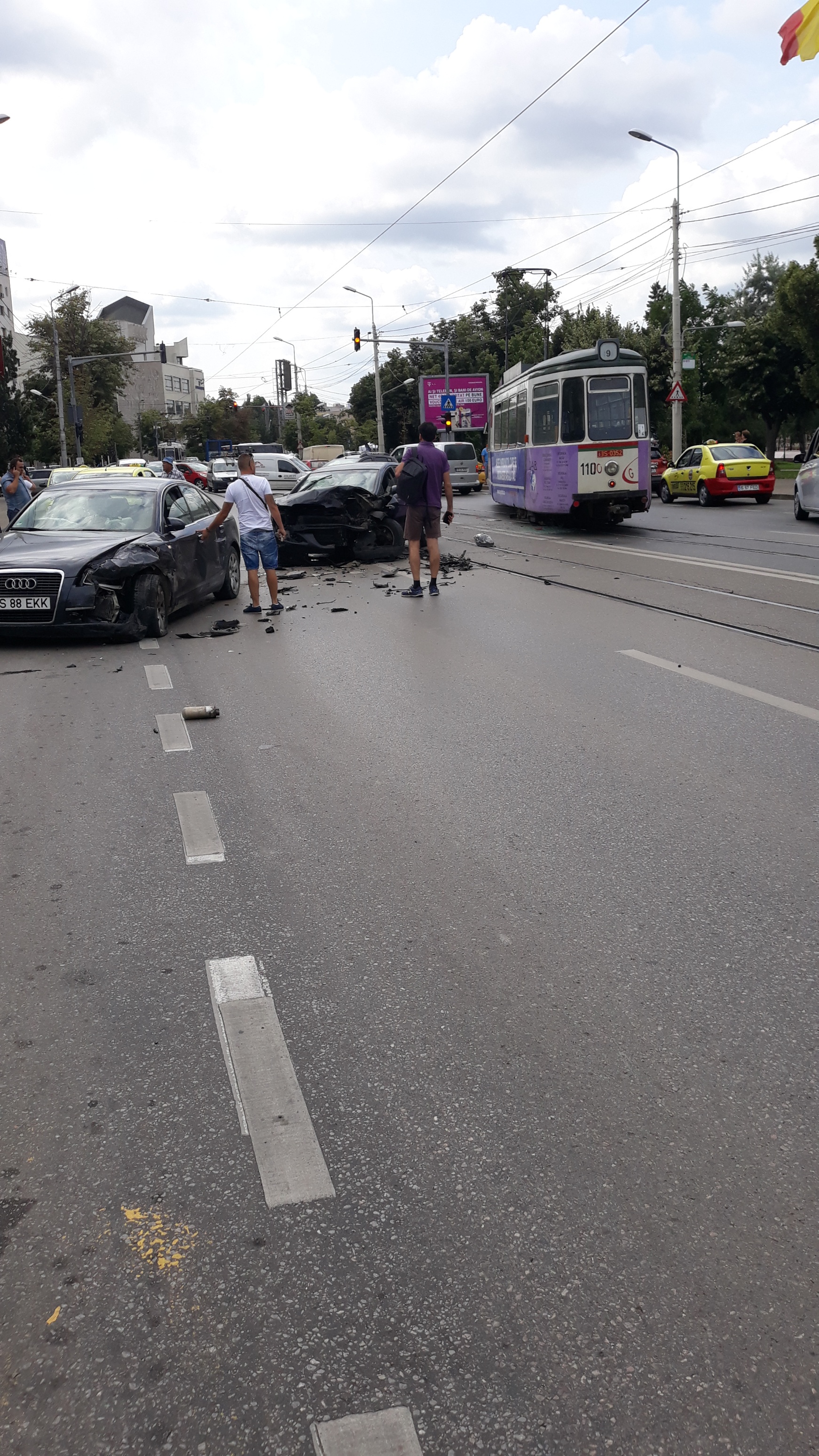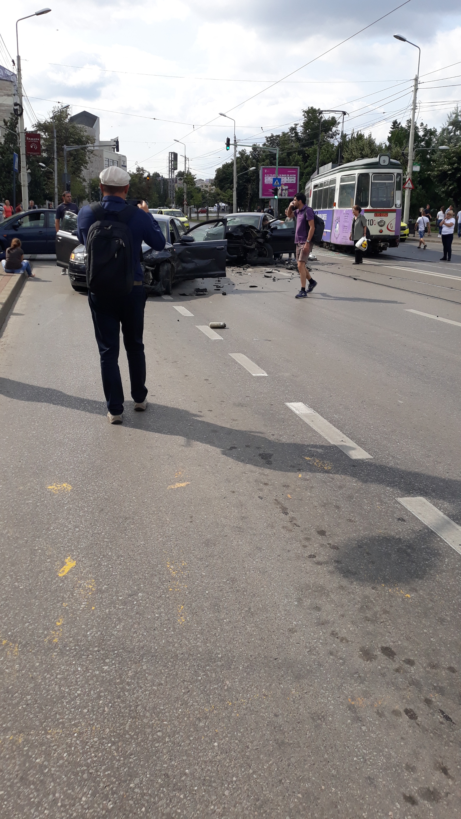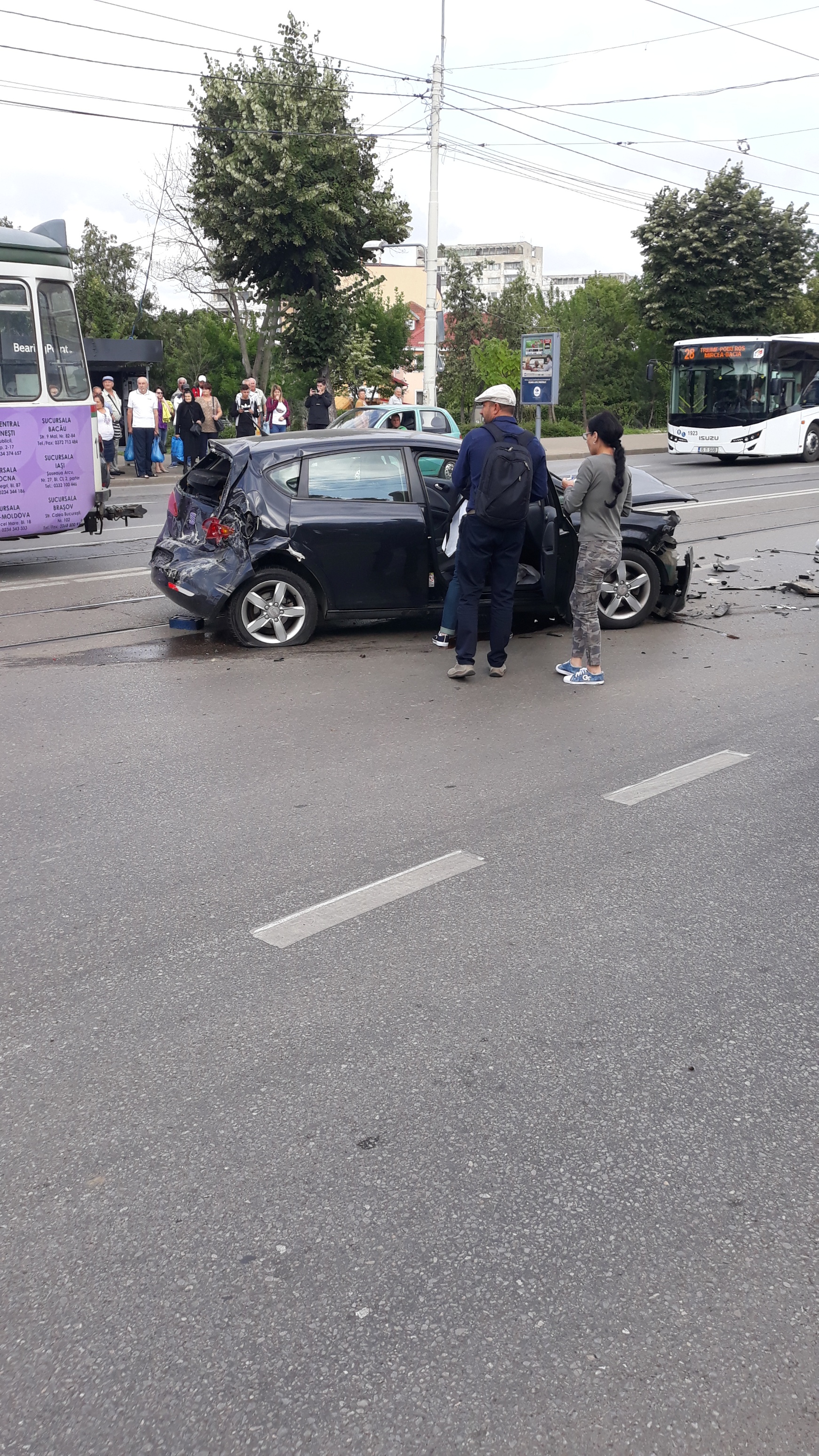 Trei persoane au avut nevoie de îngrijiri medicale după ce două maşini şi un tramvai s-au izbit violent în faţa Sălii Sporturilor, din municipiul Iaşi, în această dimineaţă.