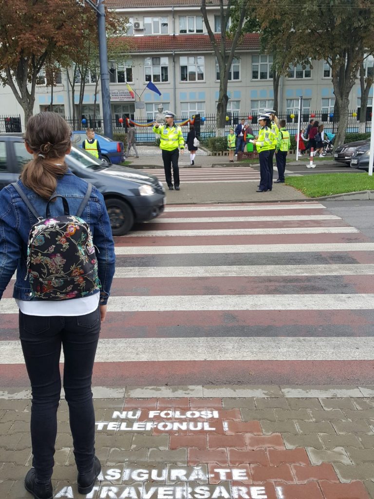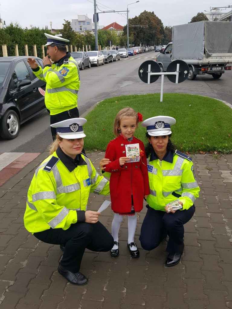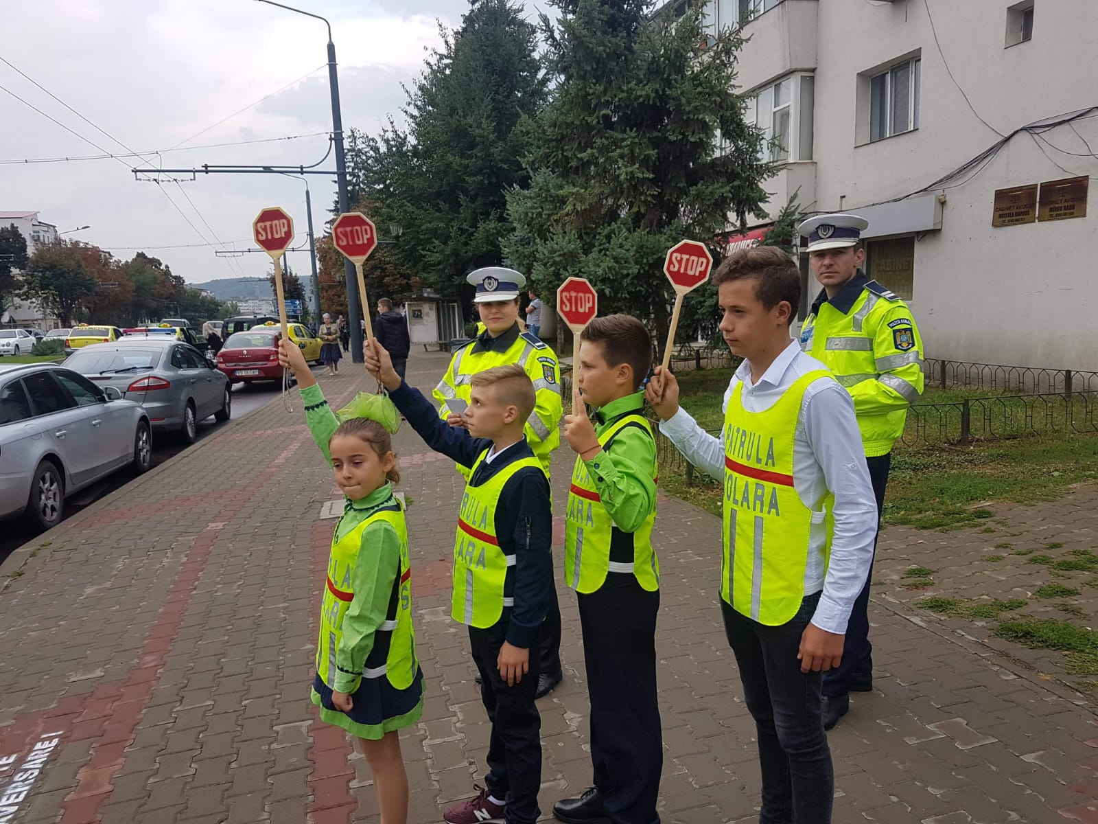 De asemenea, polițiștii rutieri împreună cu polițiștii locali, ajutați de elevi din cadrul patrulelor școlare au acționat în dreptul principalelor treceri de pietoni, venind astfel în sprijinul micilor particpanți la trafic care se deplasau cu emoție către școală. Copiilor și părinților le-au fost împărțite pliante cu mesaje preventive.