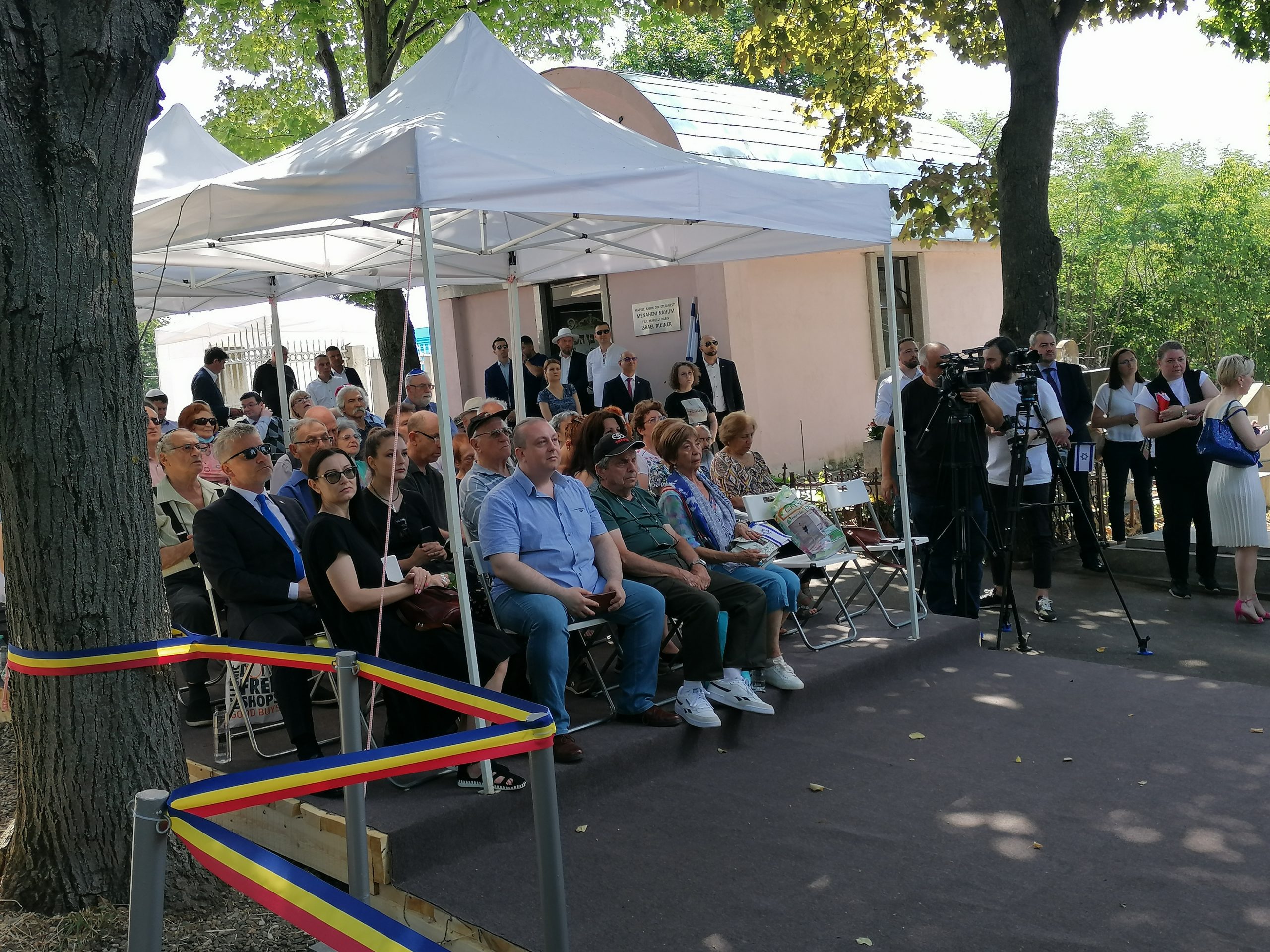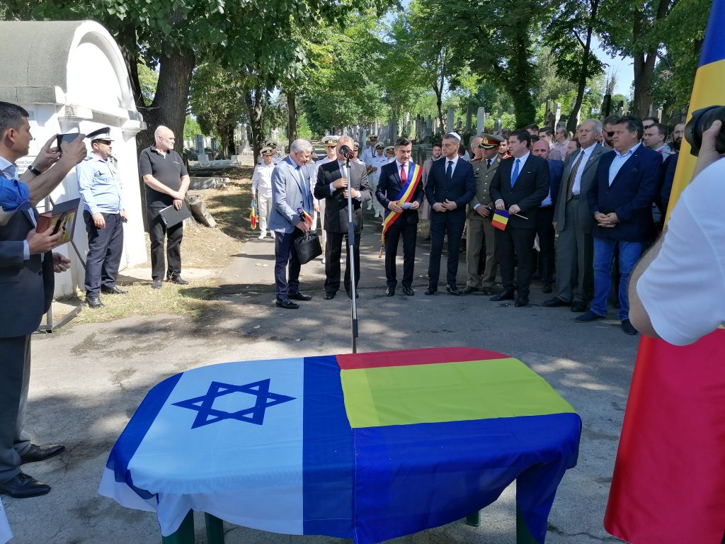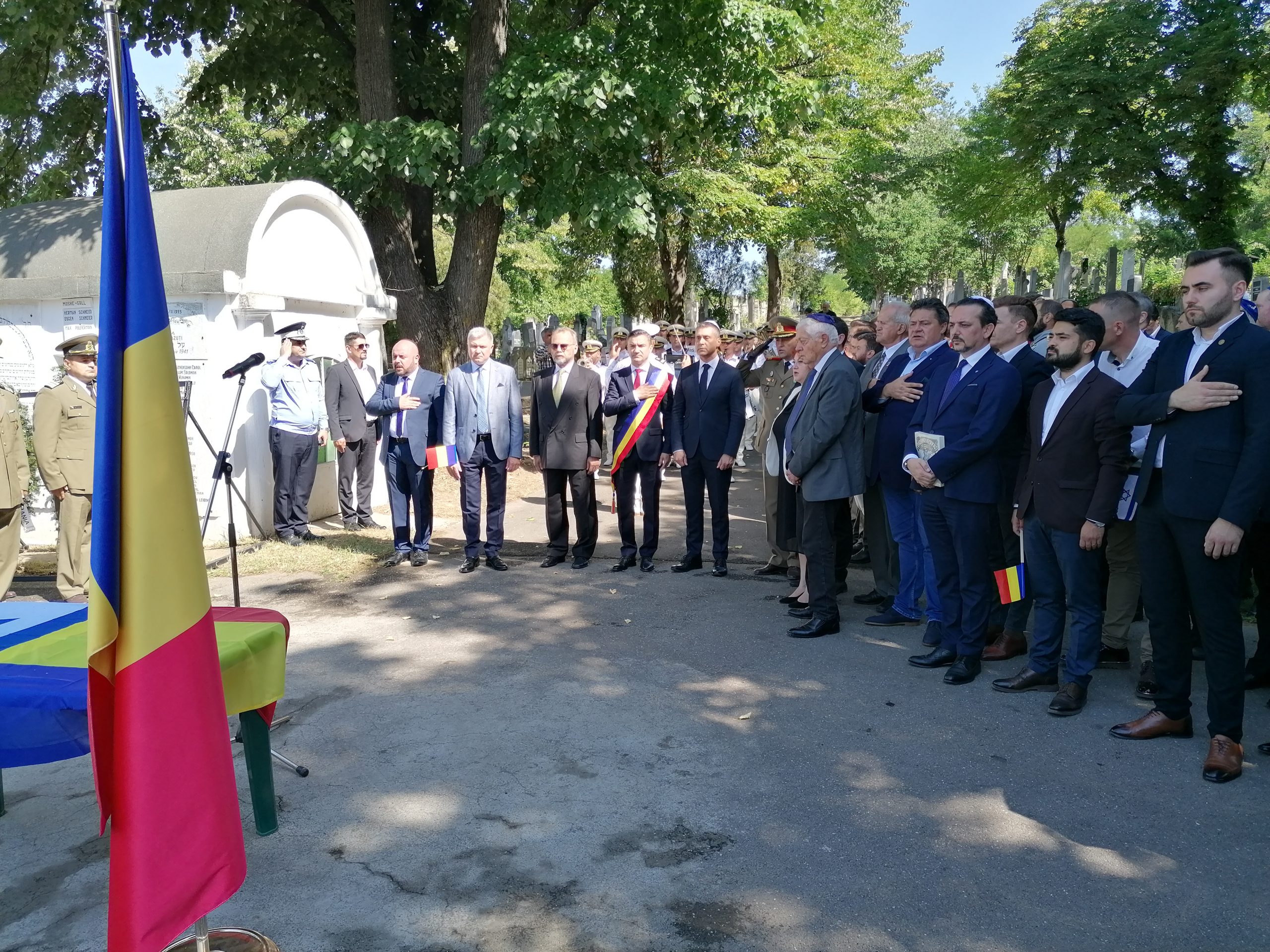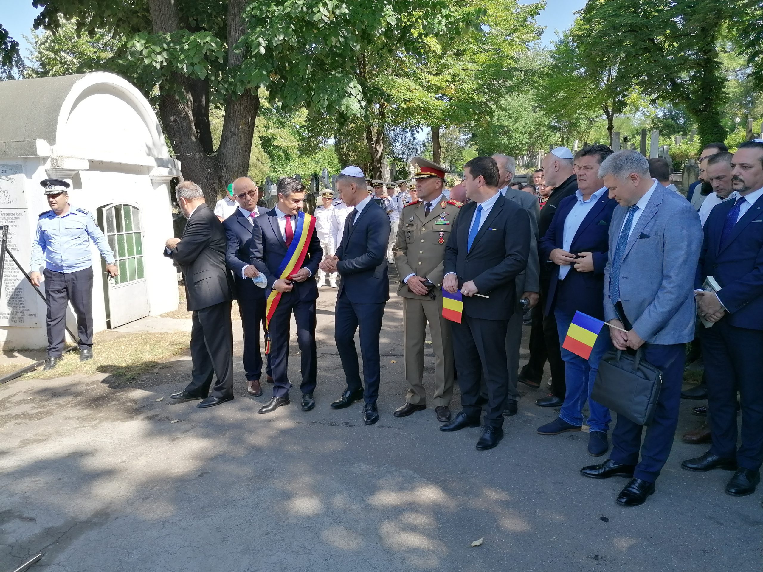 De asemenea, sunt prezenţi reprezentanţi ai comunităţii evreieşti din România, ai preşedinţiei şi guvernului.
