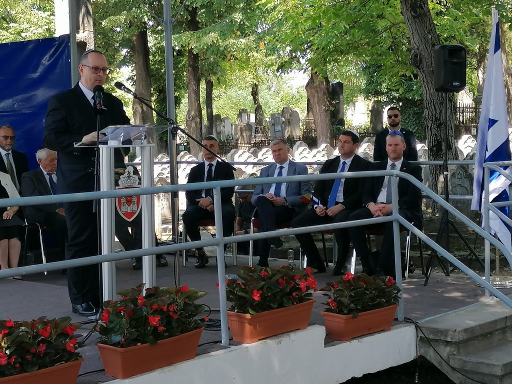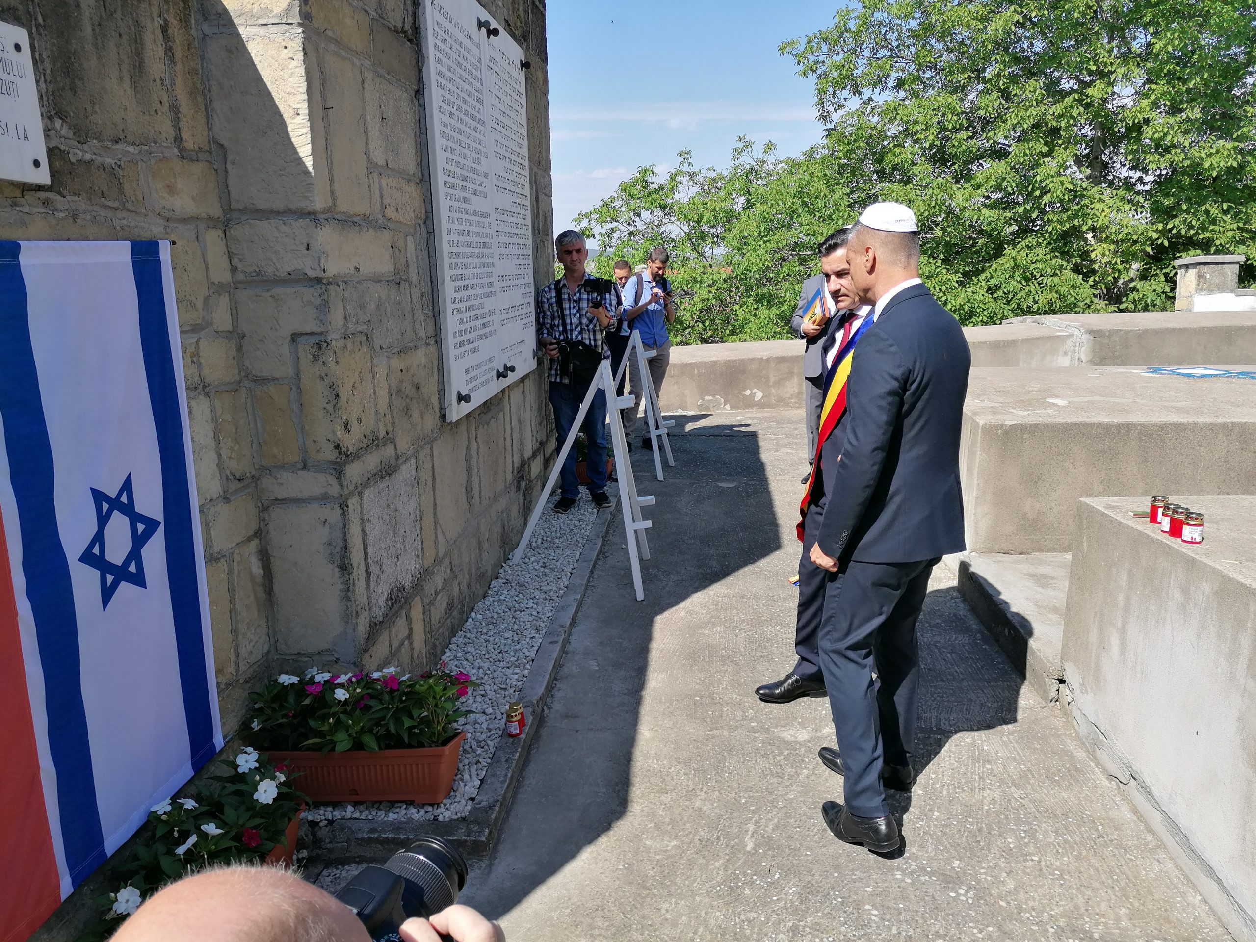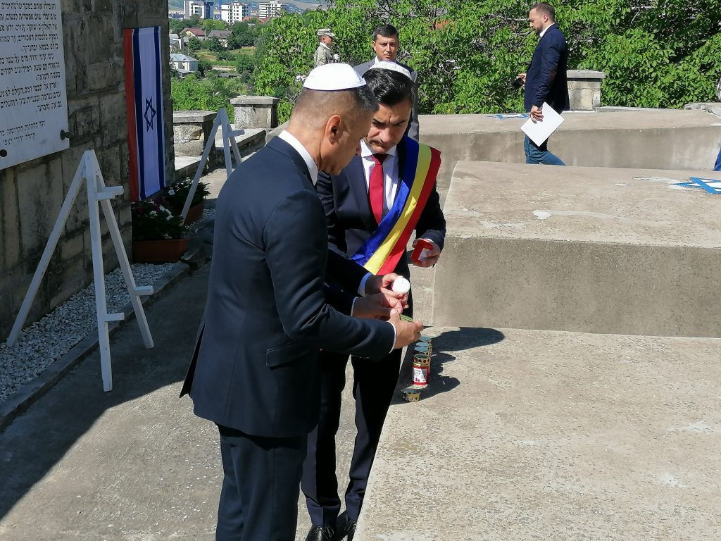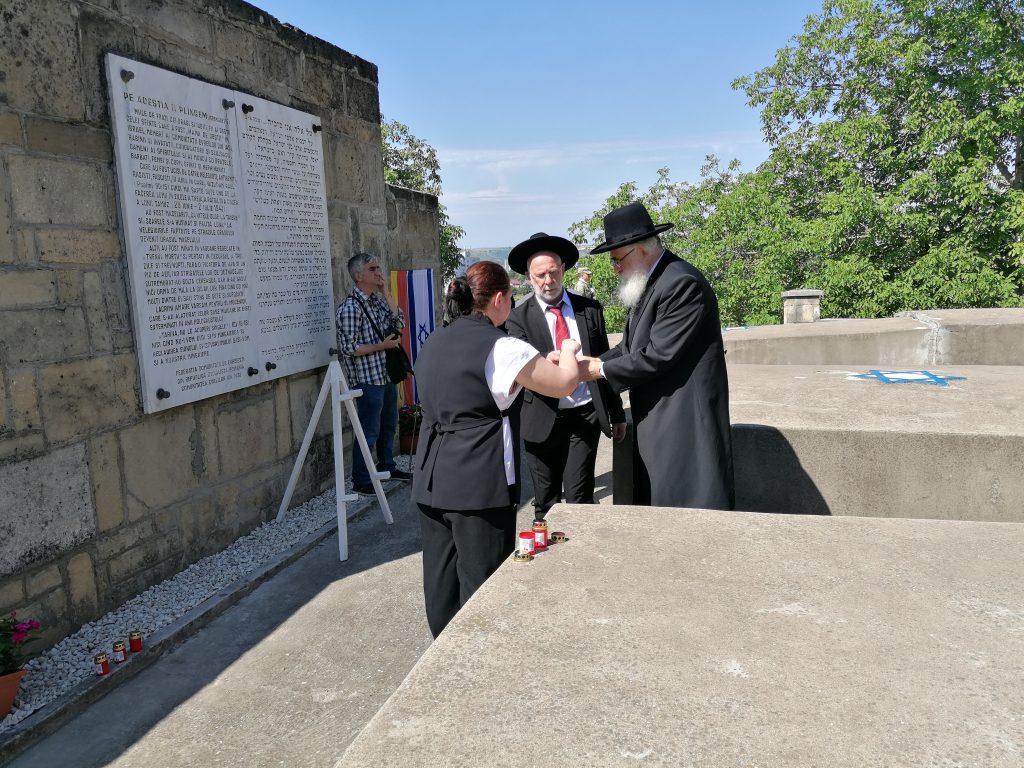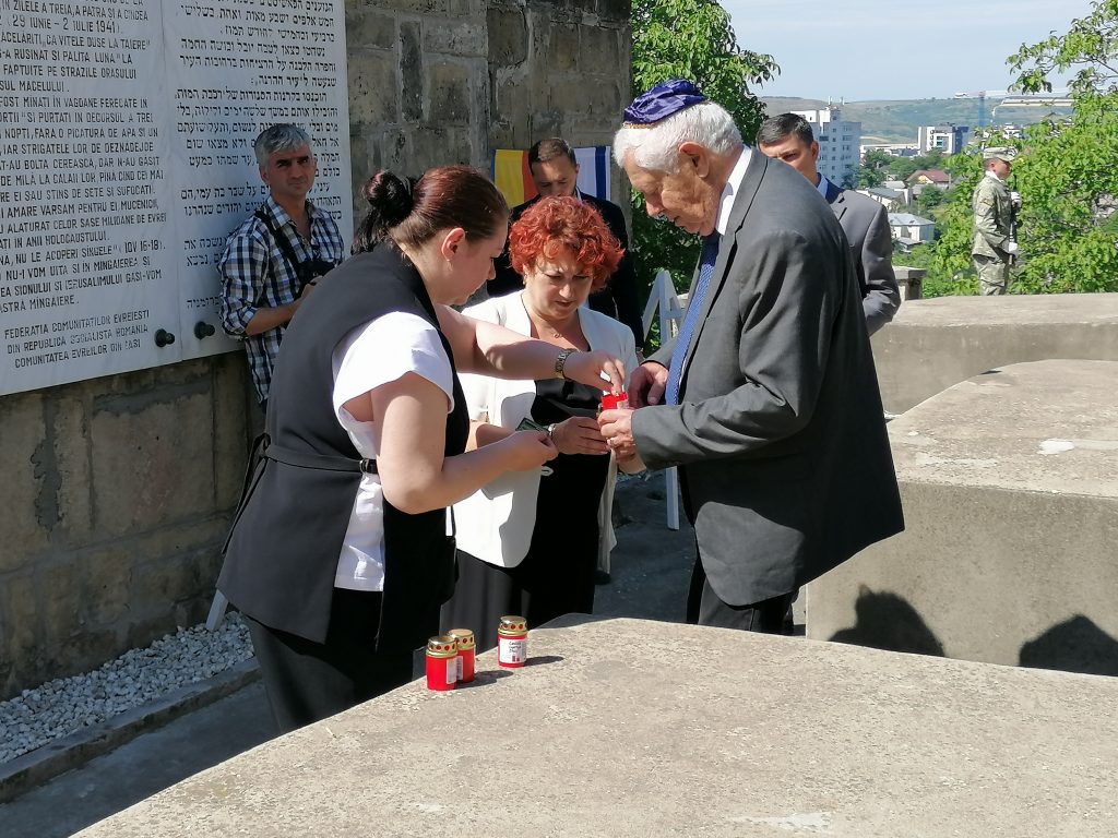 La Cimitirul Evreiesc au fost aprinse candele în memoria victimelor Pogromului, au fost depuse coroane de flori şi au fost rostite alocuţiuni.