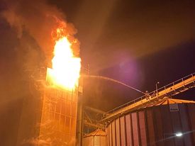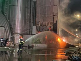 Un incendiu de proporții s-a declanșat aseară, la Orbeni, la un depozit de cereale la una dintre cele mai mari firme agricole din județul Bacău. Pompierii au fost alertați la ora 20:18 și s-au luptat cu flăcările mai bine de 11 ore.