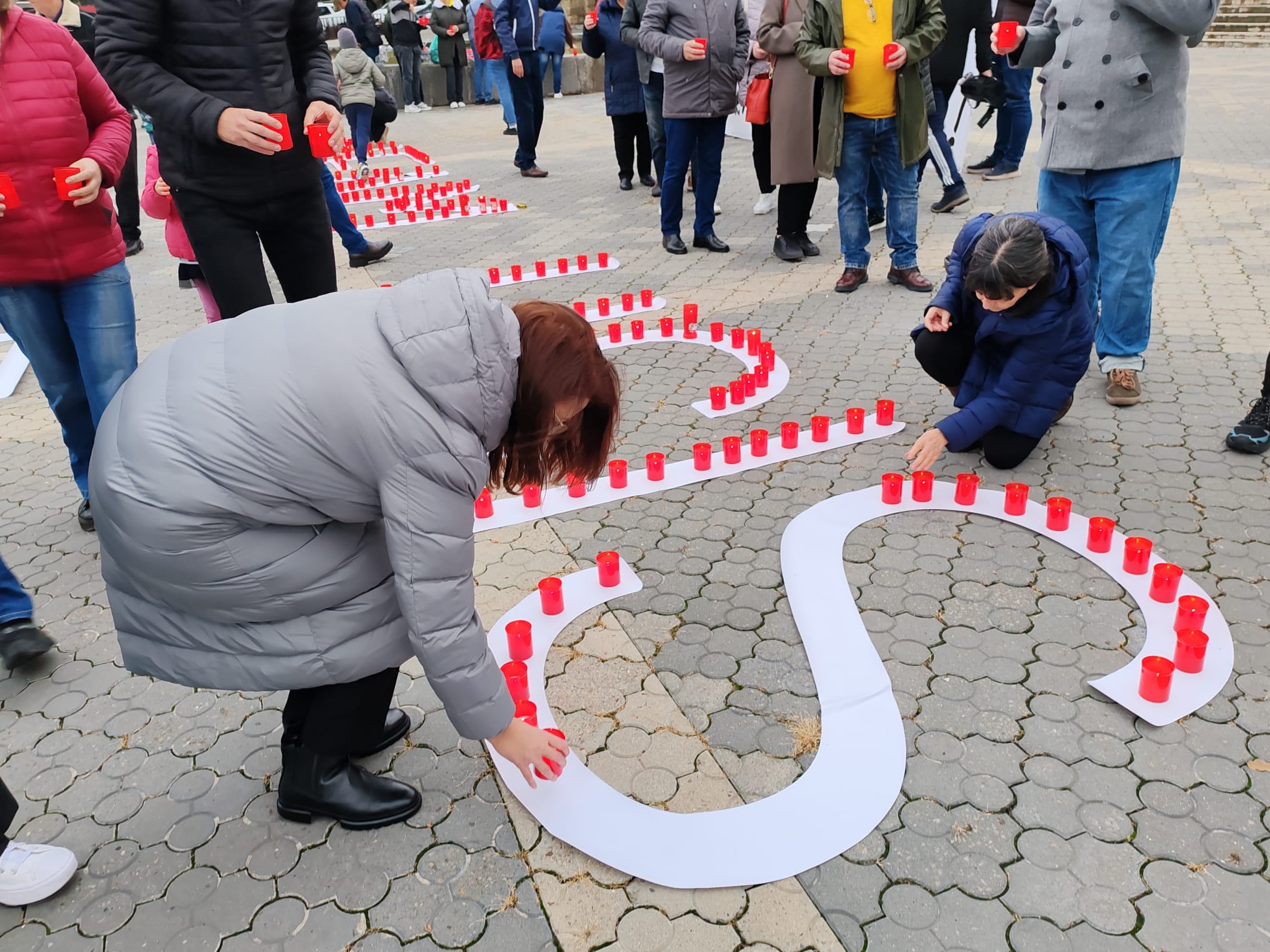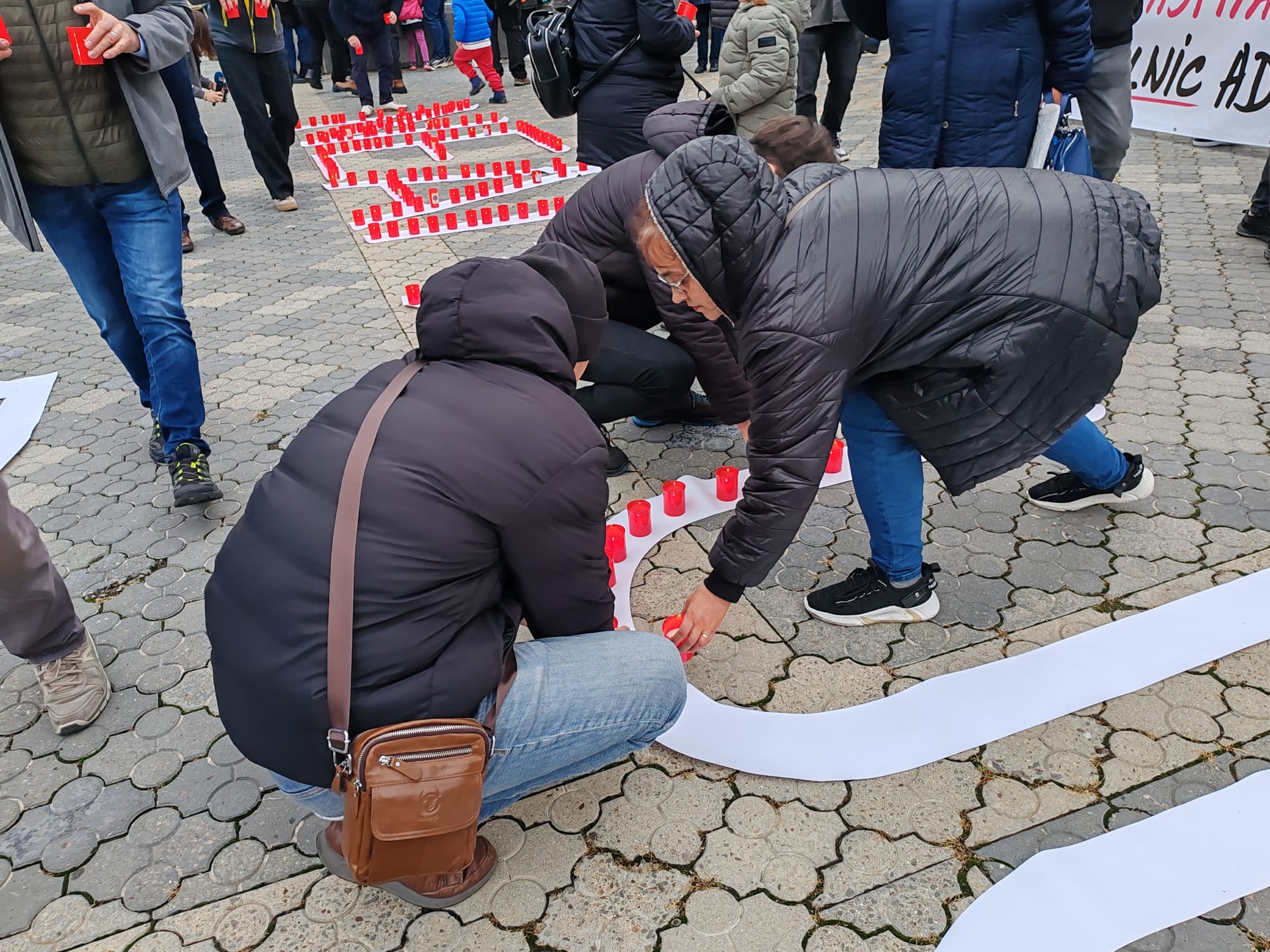 Participanții au aprins lumânări și au format mesajul „Neam ucis de nosocomiale”, în semn de solidaritate cu familiile îndoliate.