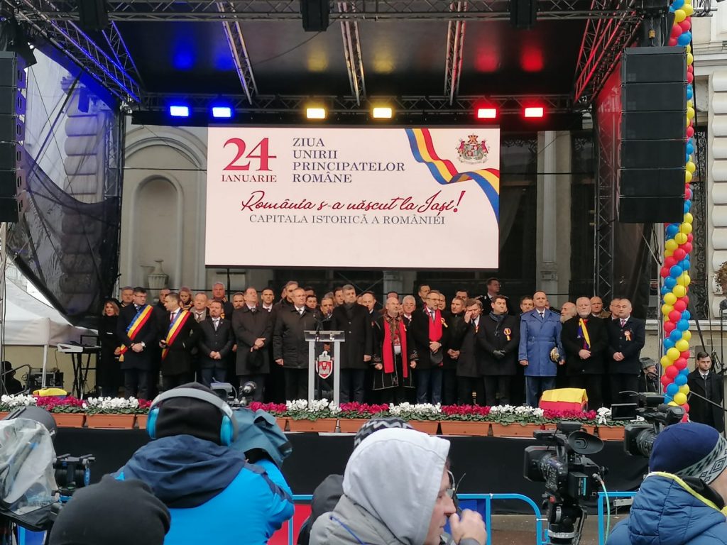 La ora 10:00, în Piața Unirii din Iași s-au adunat sute de persoane pentru a asista la manifestările prilejuite de 24 ianuarie, Ziua Unirii Principatelor Române.