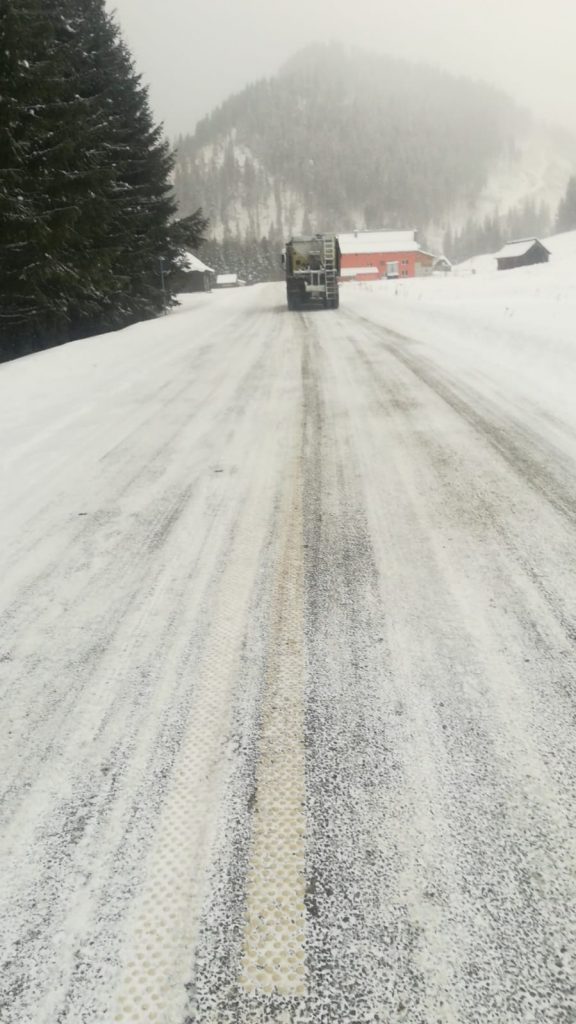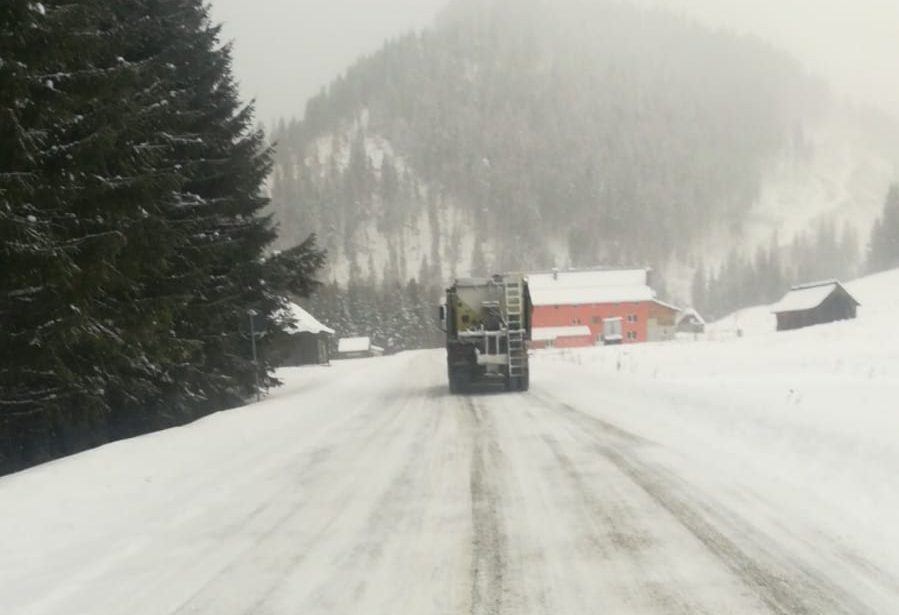 Pe timpul nopții, lucrătorii de la DRDP Iași au acționat cu autoutilaje și au răspândit material antiderapant.