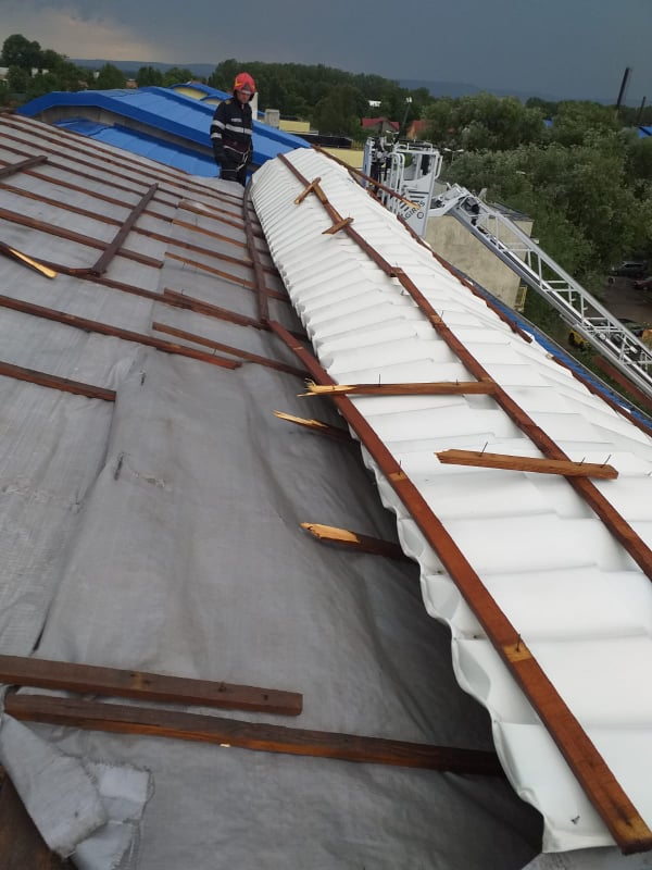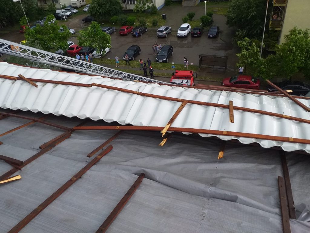 (FOTO) Vrancea: Furtună puternică în Focşani, cu acoperişuri smulse şi copaci rupţi