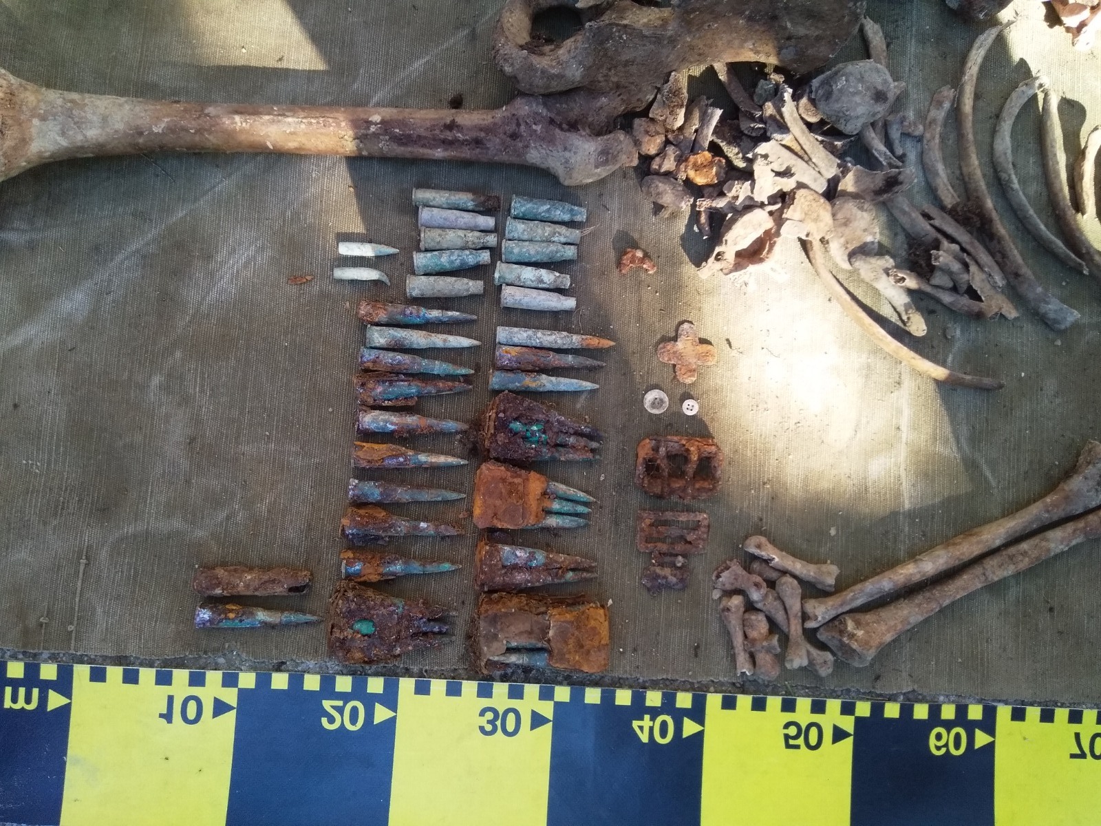 ‘Din câte ştim, e prima descoperire de acest gen din Vrancea. Alături de resturile soldatului s-a mai găsit şi o plăcuţă de identificare care, în urma curăţării, ne va spune probabil numele soldatului şi unitatea din care acesta făcea parte. De asemenea, au mai fost găsite un nasture, un buton metalic de veston militar şi două catarame. (…) În zona respectivă, un pic mai jos de locul descoperirii, sunt vizibile câteva pietre funerare de mici dimensiuni, inscripţionate în limba germană, pe care se poate citi anul 1917’, a spus Aurora Apostu.