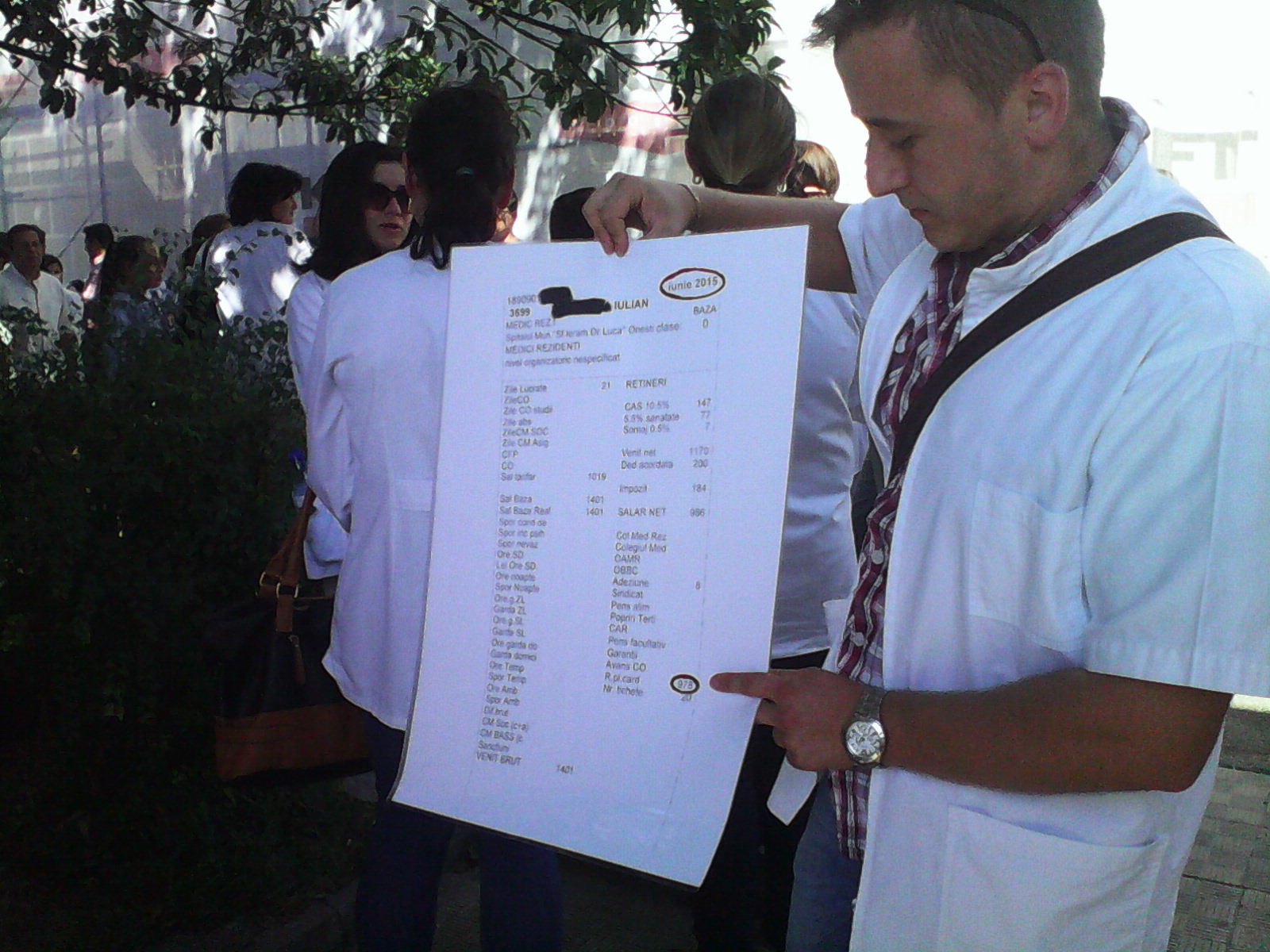 În urma unei initiative apărute pe o rețea de socializare, medicii protestează, la această oră, în faţa guvernului, în capitală, dar și în fața Universității de Medicină și Farmacie din Iași.
