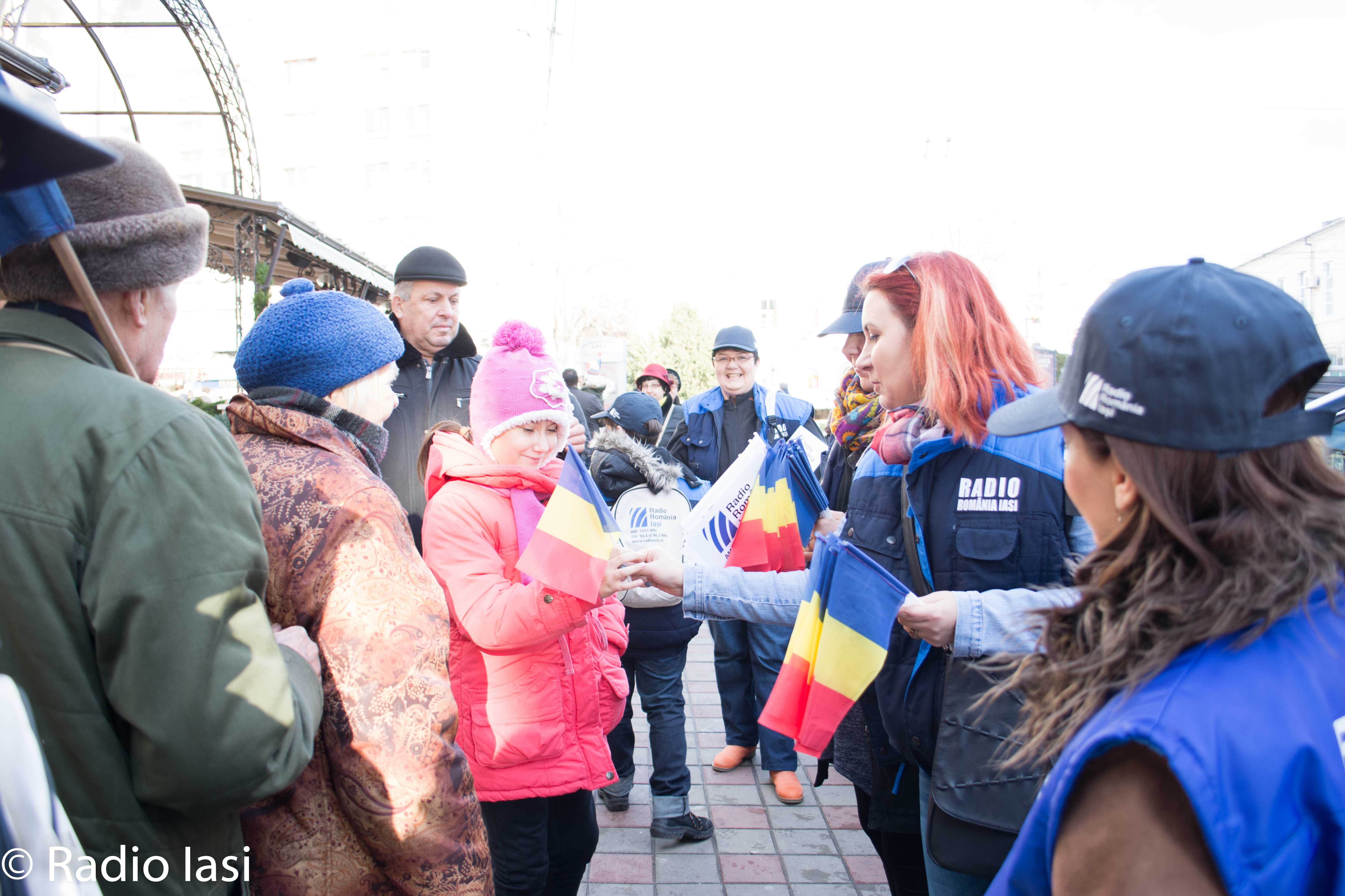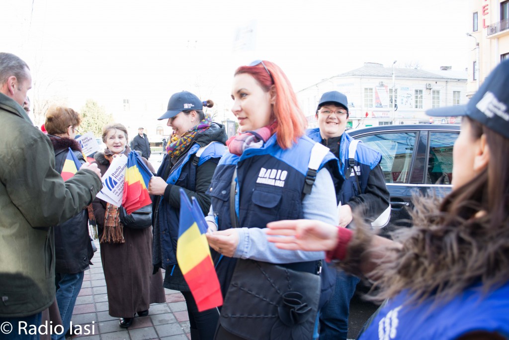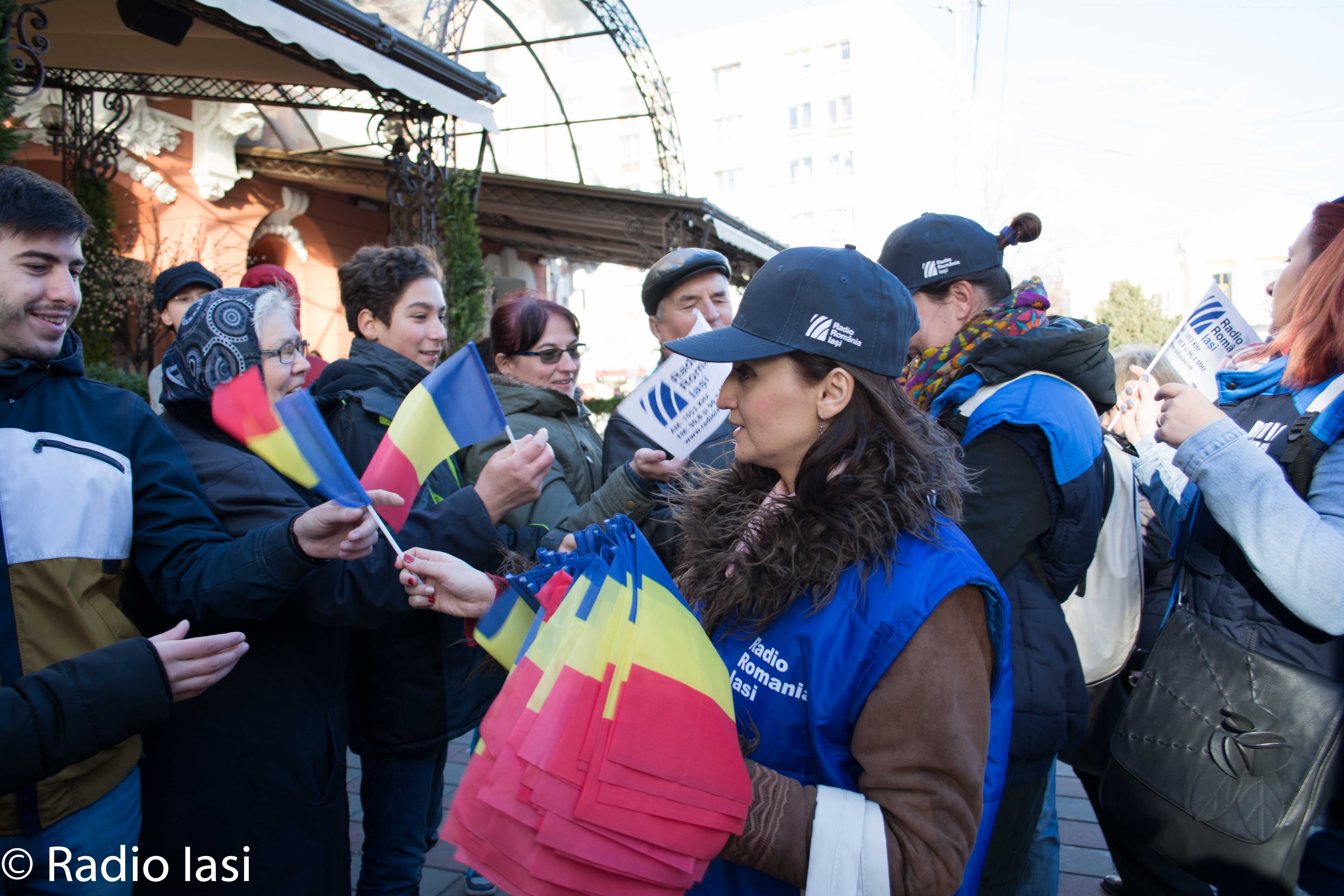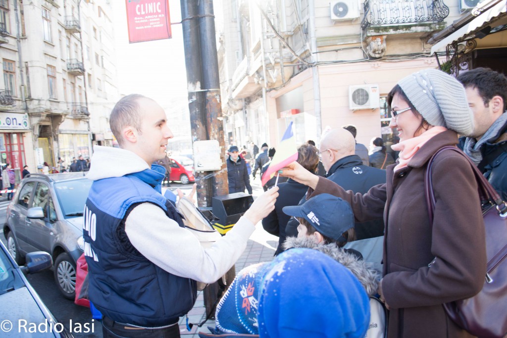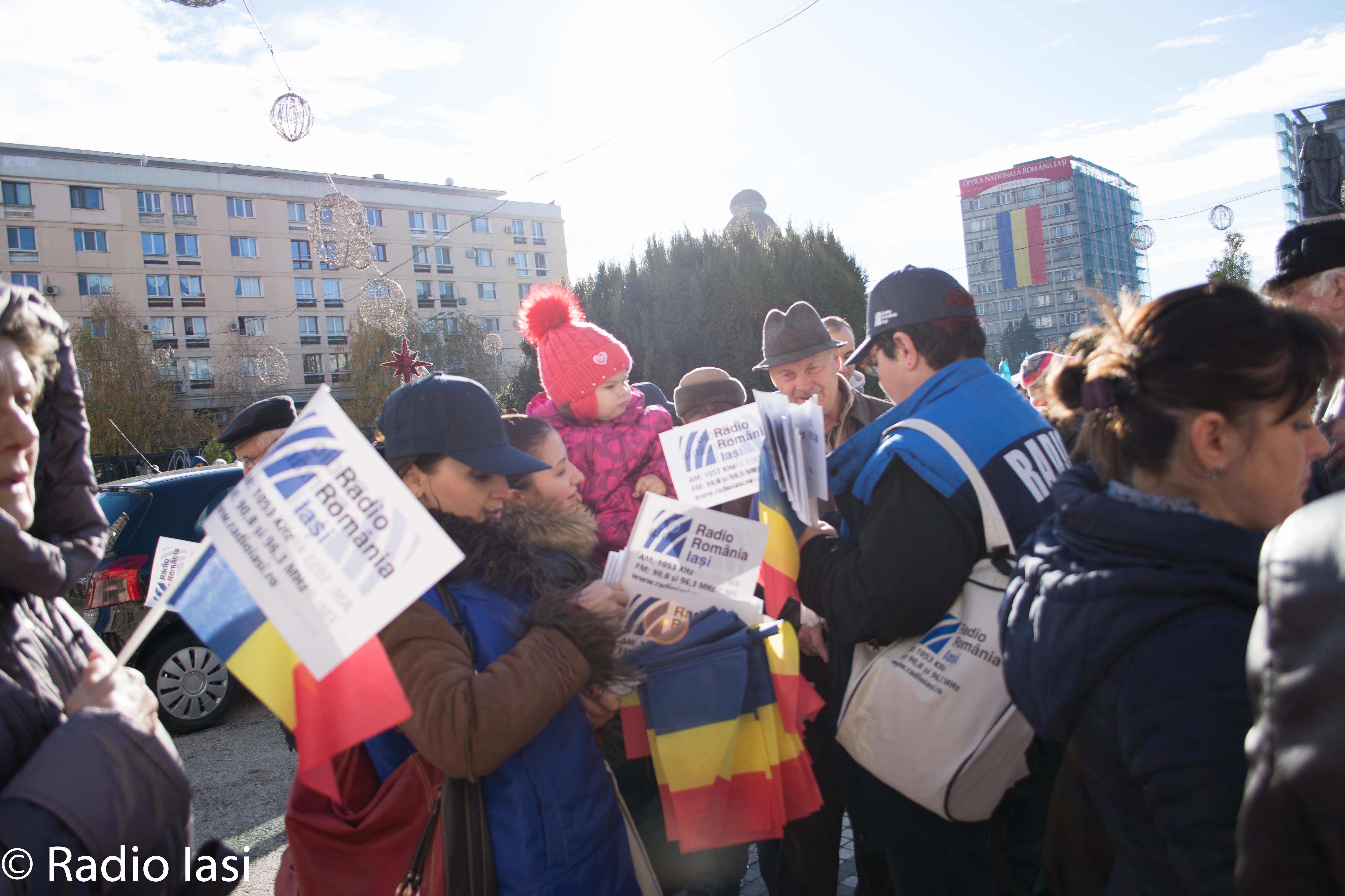 Radio Iaşi a îmbrăcat haine de sărbătoare pentru a celebra alături de voi ziua de 1 Decembrie. Tricolorul a fost personajul principal al zilei şi de aceea Radio Iaşi a oferit celor aflaţi în Piaţa Unirii un steguleţ. Stocul s-a epuizat instantaneu. La final, ne-am prins în hora unirii alături de ascultătorii noştri dragi.