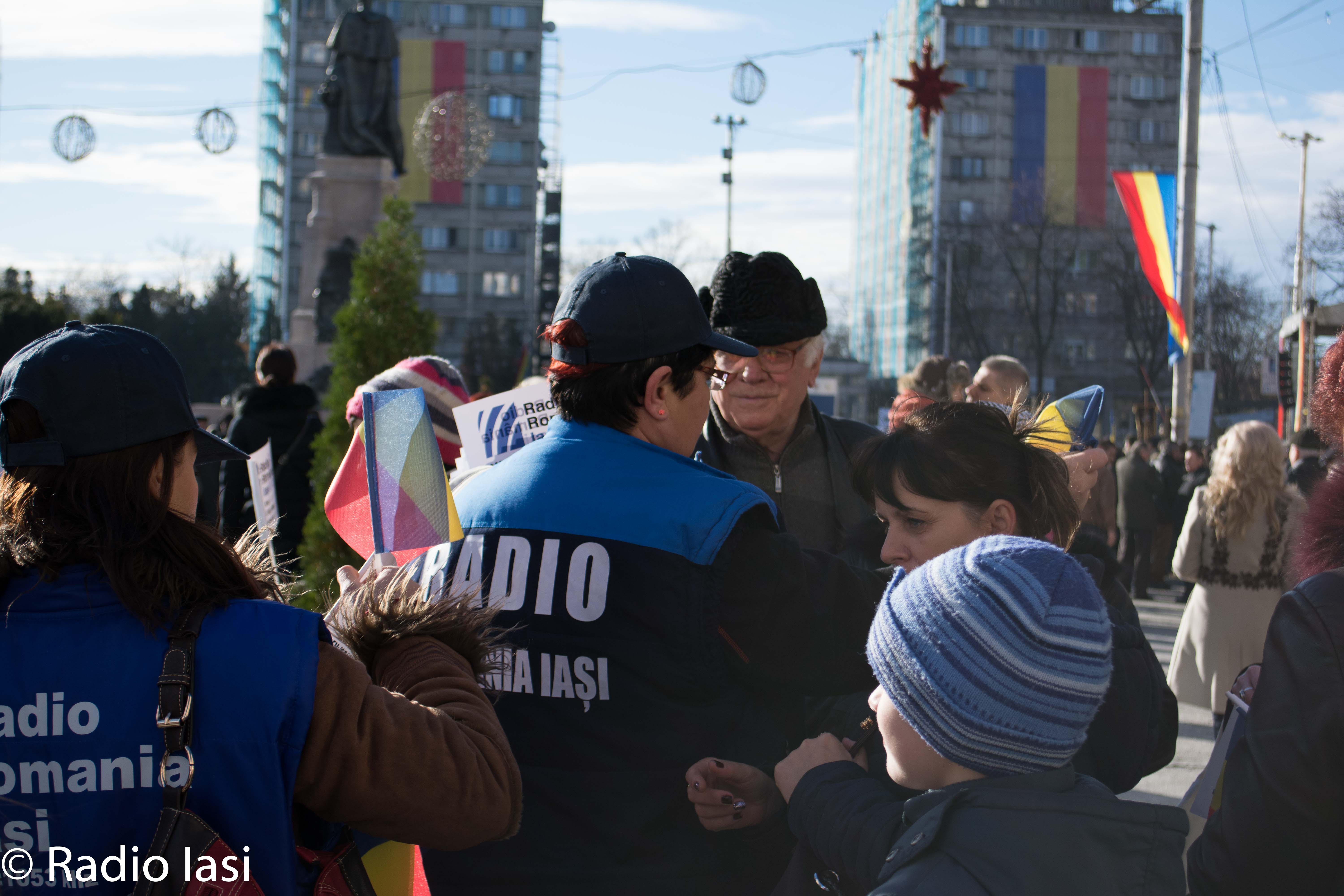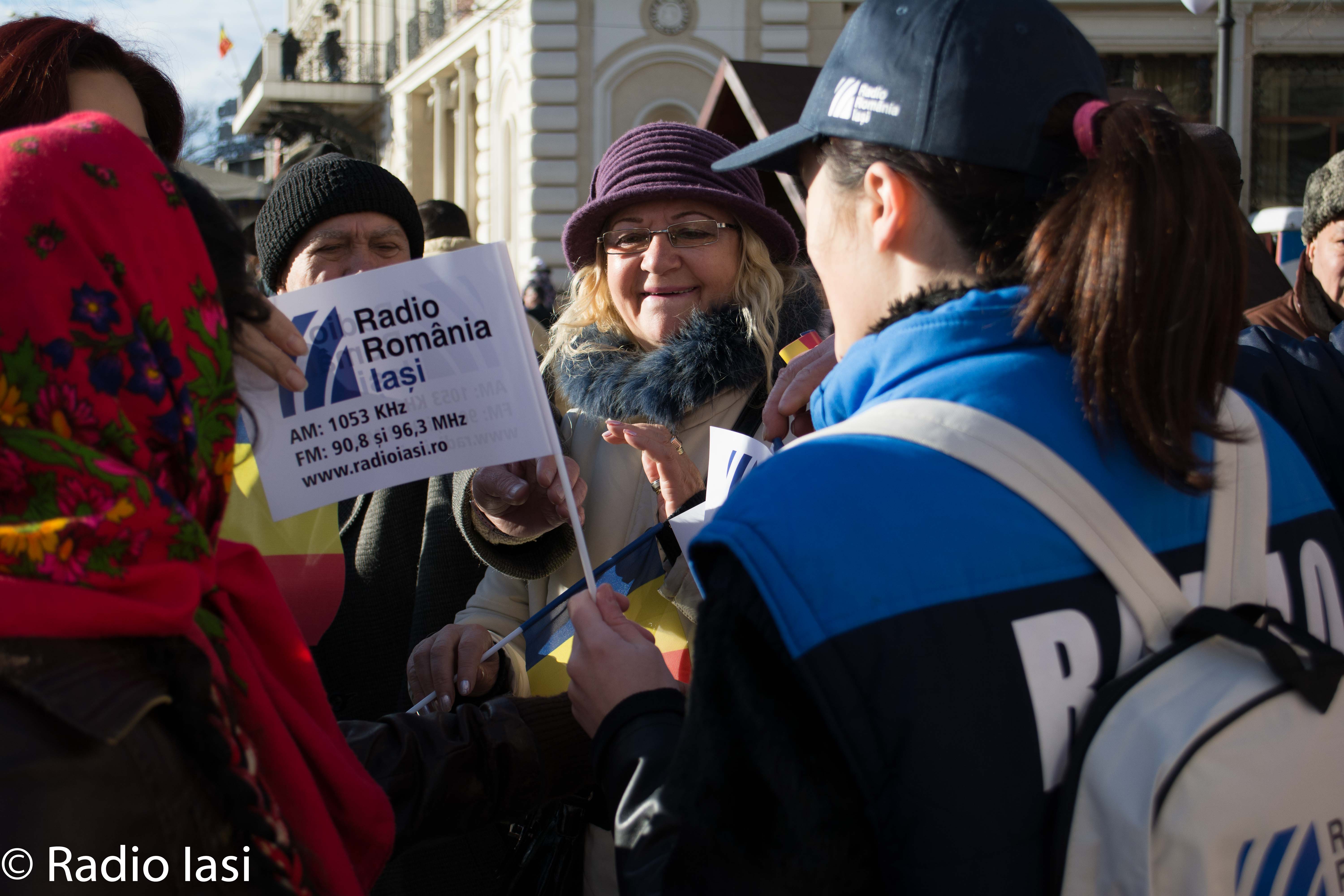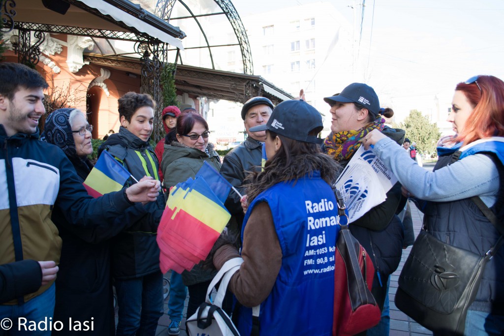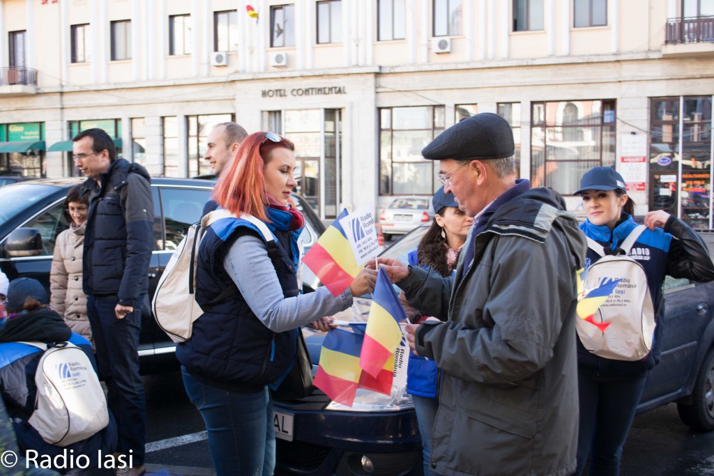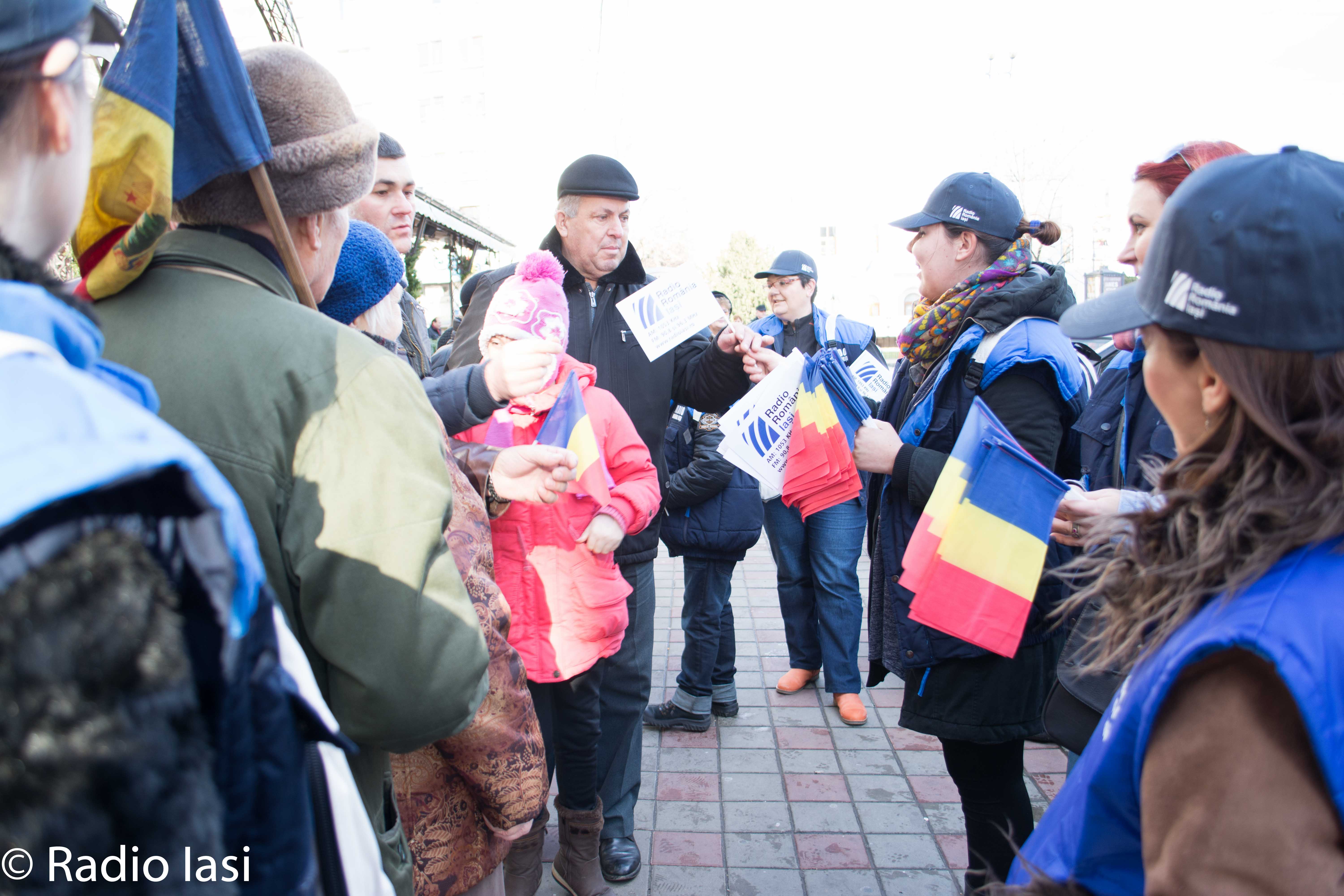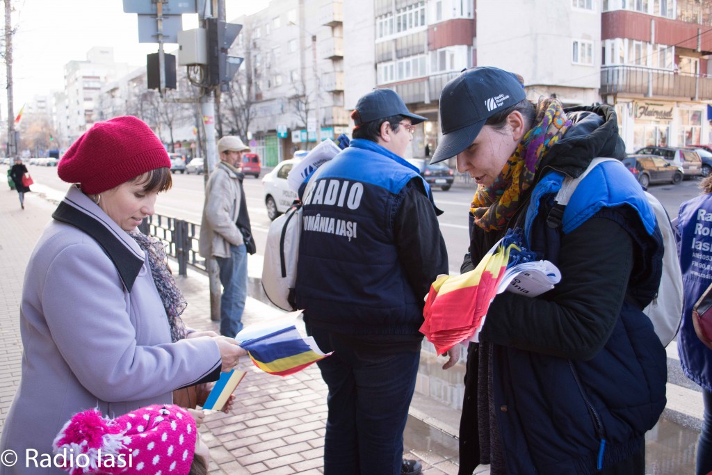 Radio Iaşi a îmbrăcat haine de sărbătoare pentru a celebra alături de voi ziua de 1 Decembrie. Tricolorul a fost personajul principal al zilei şi de aceea Radio Iaşi a oferit celor aflaţi în Piaţa Unirii un steguleţ. Stocul s-a epuizat instantaneu. La final, ne-am prins în hora unirii alături de ascultătorii noştri dragi.