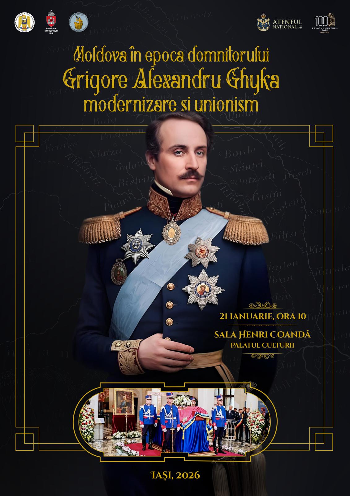 Fundația Colegiului Național de Apărare – sucursala Moldova omagiază și în acest an sărbătoarea de la 24 Ianuarie printr-o manifestare academică și civică de ținută: „Moldova în epoca domnitorului Grigore Alexandru Ghyka: modernizare și unionism” , programată în ziua de miercuri, 21 ianuarie, ora 10, în Sala „Henri Coandă” a Palatului Culturii din Iași.