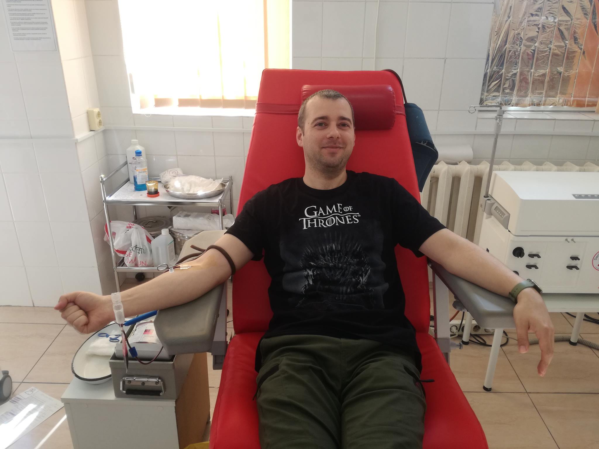 Actori, maşinişti şi personal TESA din cadrul Teatrului Dramatic ”Fani Tardini” din Galaţi au donat sânge, miercuri, la Centrul Judeţean pentru Transfuzii Sanguine, de Ziua Mondială a Teatrului.