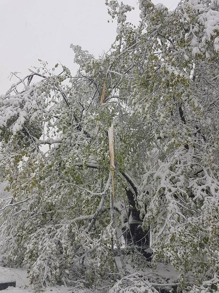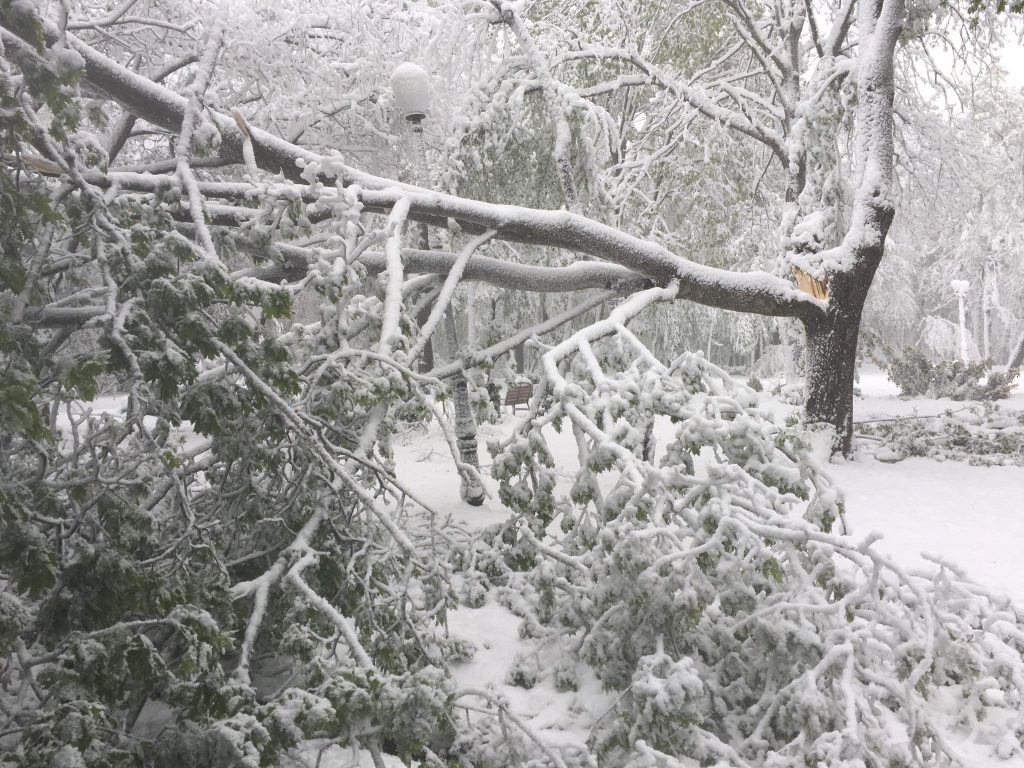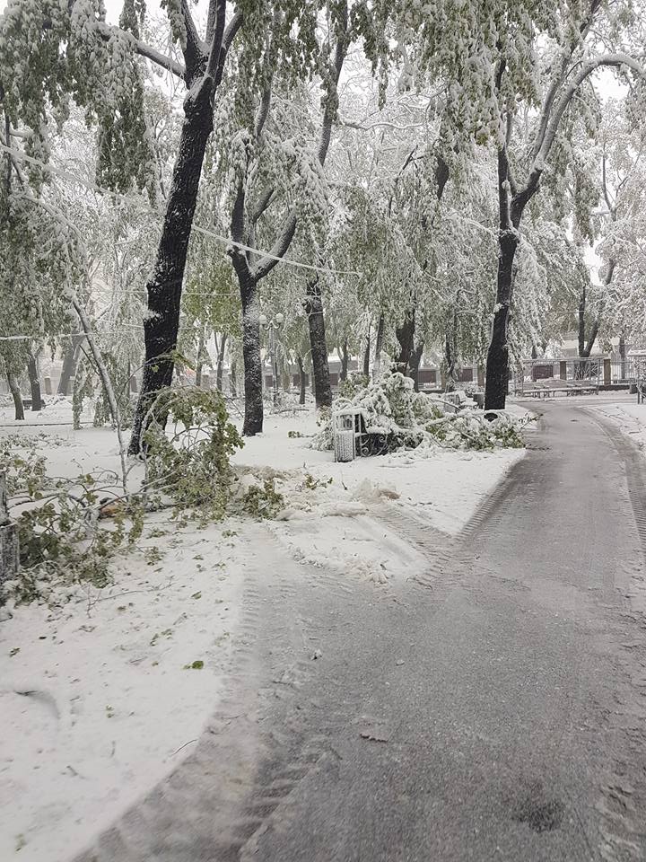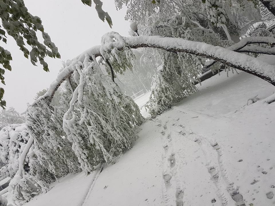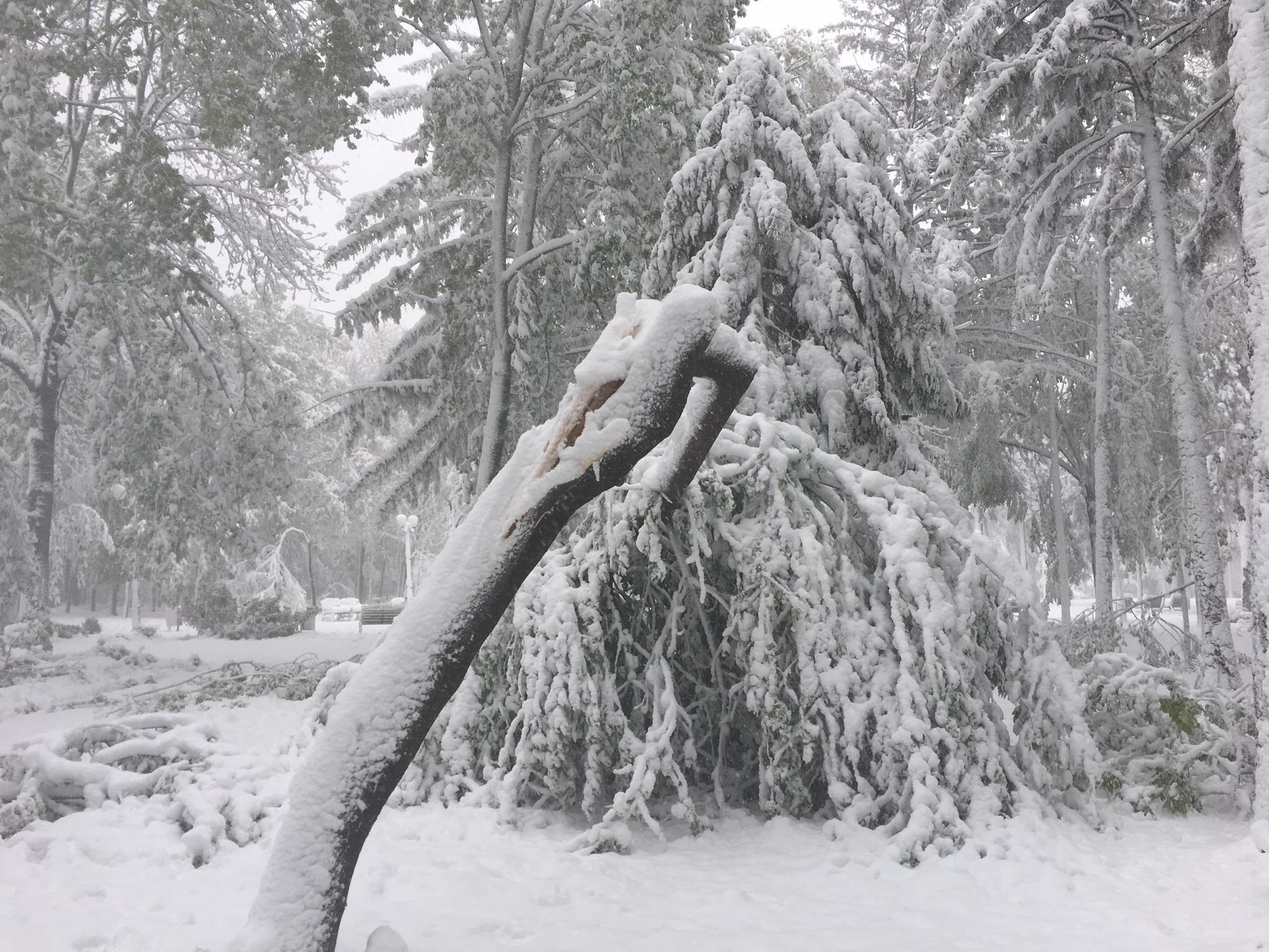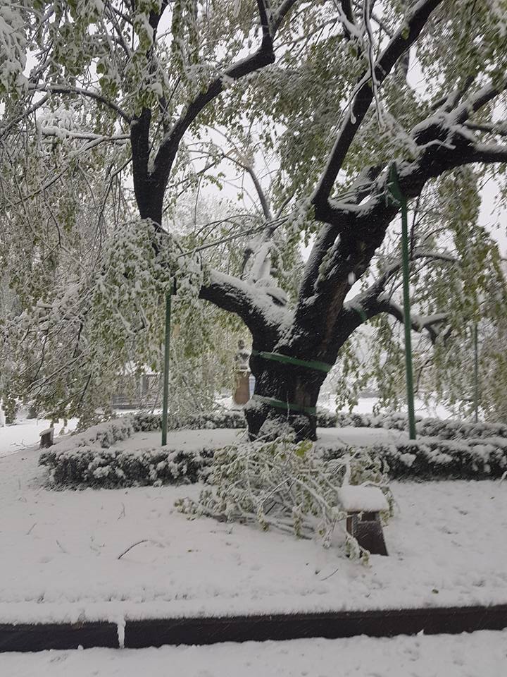 UPDATE ora 13:55 – Din cauza vremii nefavorabile, zeci de copaci din municipiul Iași au fost rupți sau doborâți la pământ din cauza zăpezii depuse, printre arborii afectați aflându-se și Teiul lui Eminescu din Parcul Copou.