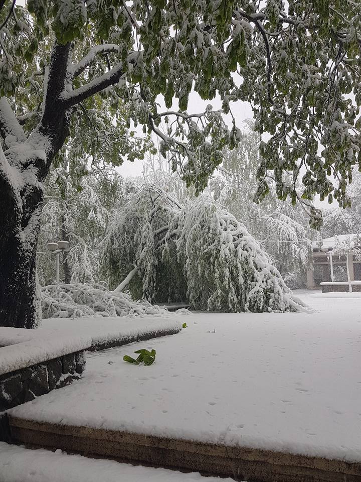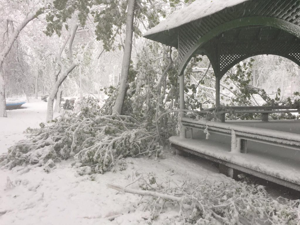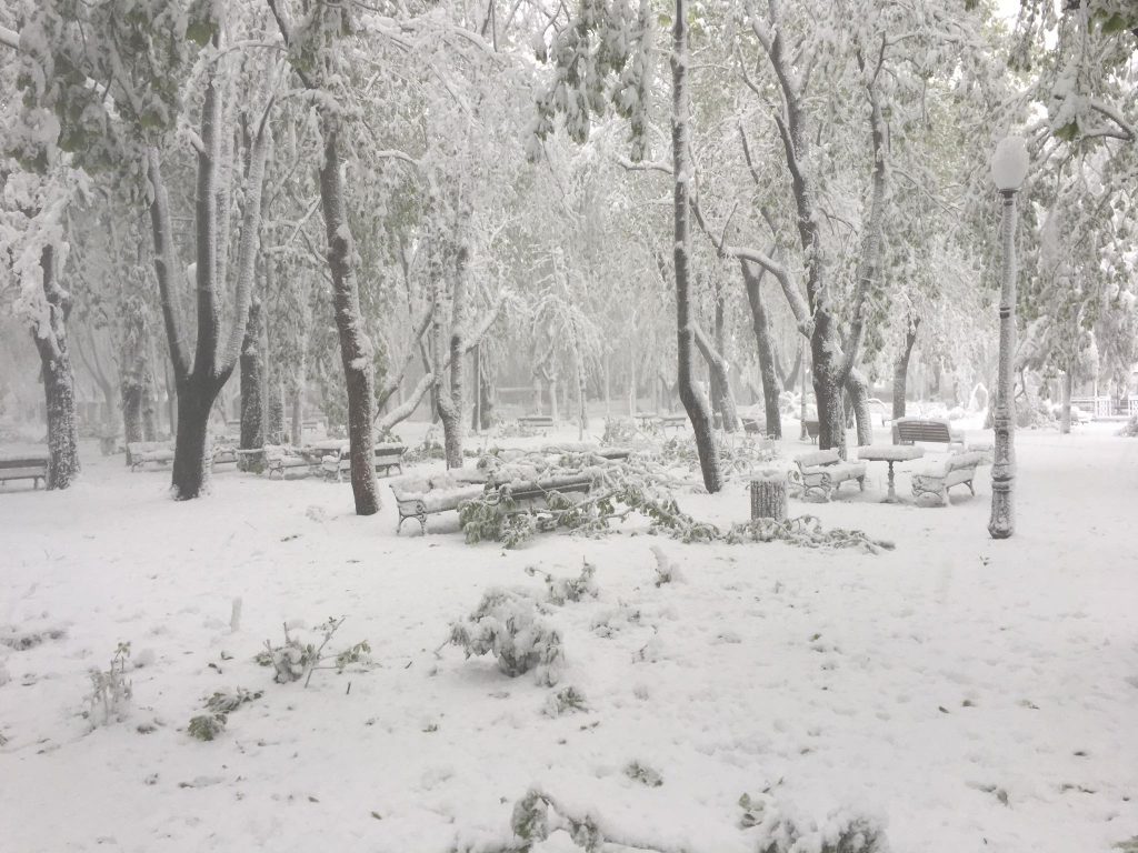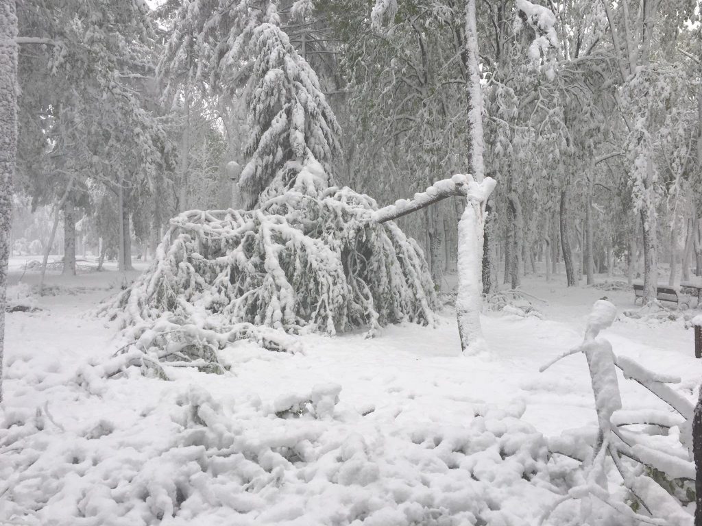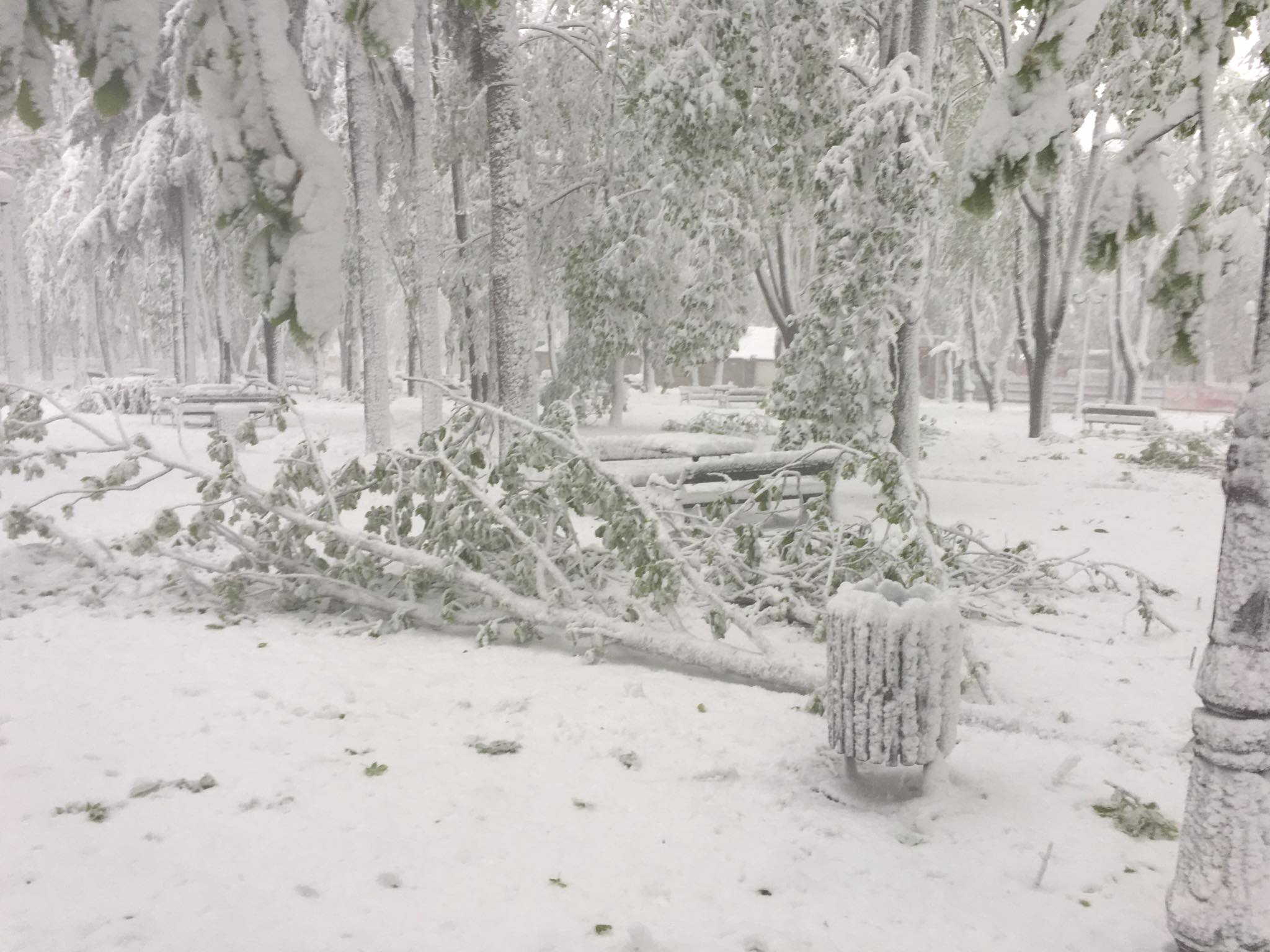 UPDATE ora 13:55 – Din cauza vremii nefavorabile, zeci de copaci din municipiul Iași au fost rupți sau doborâți la pământ din cauza zăpezii depuse, printre arborii afectați aflându-se și Teiul lui Eminescu din Parcul Copou.