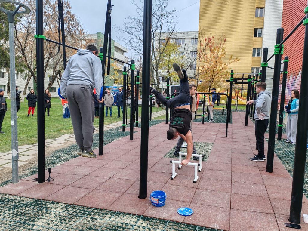 În campusul studențesc Tudor Vladimirescu din Iași a fost inaugurată astăzi cea mai mare bază de agrement din țară cu infrastructura necesară pentru Calisthenics – un sport practicat în aer liber care solicită mușchii propriului corp în activitățile de antrenament.