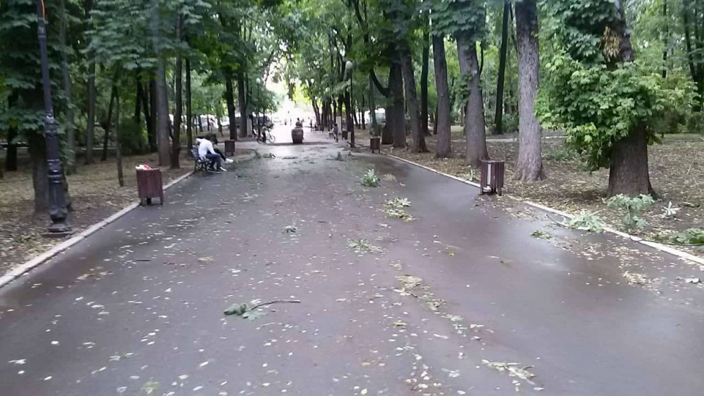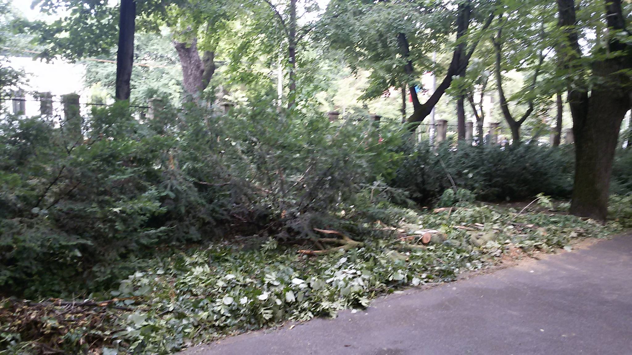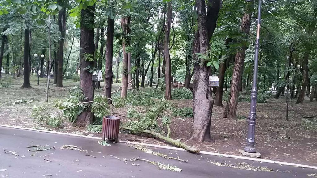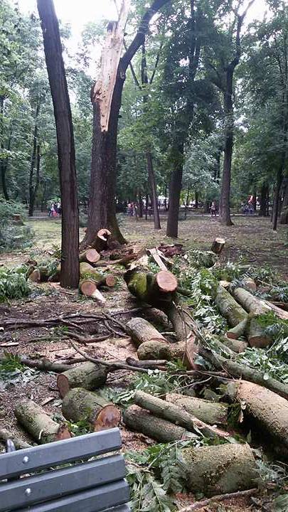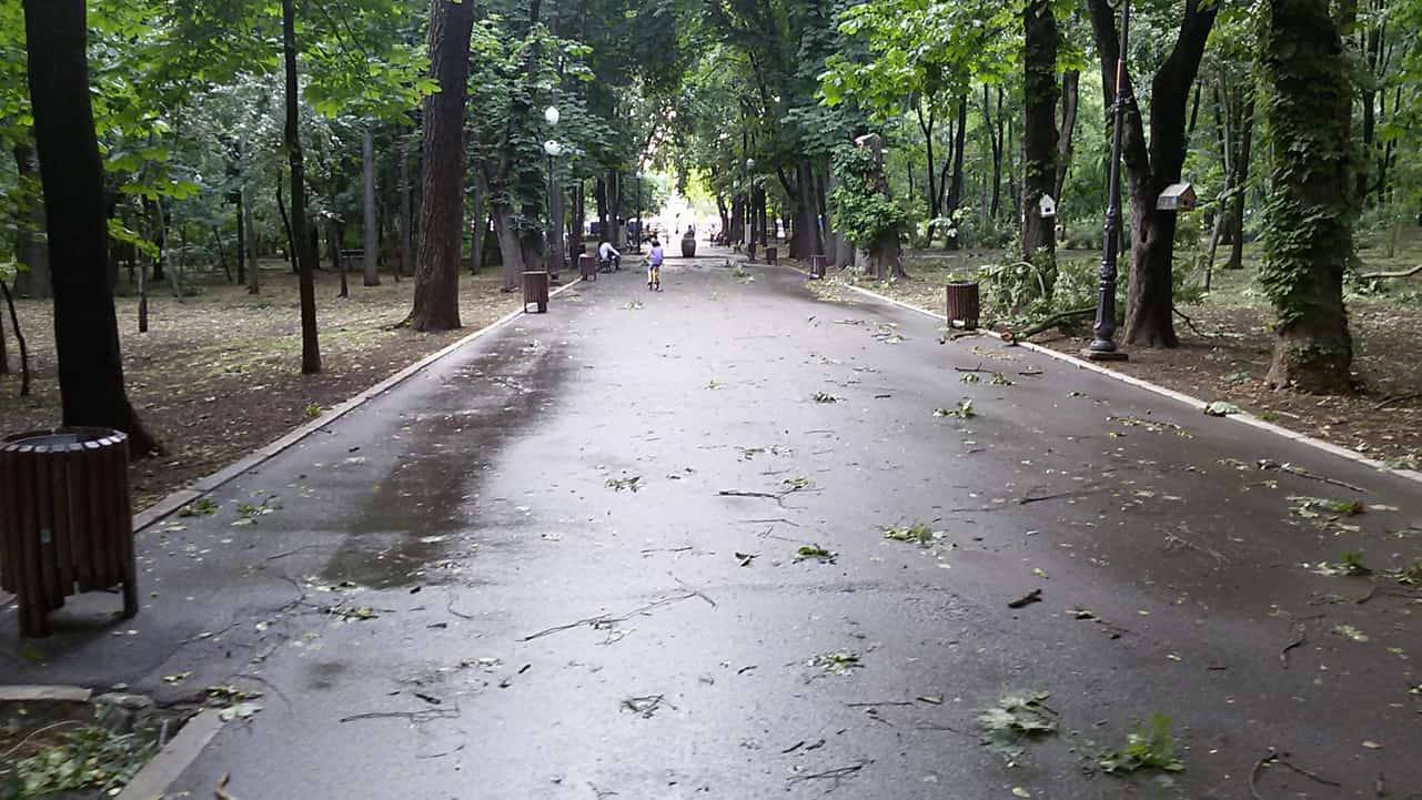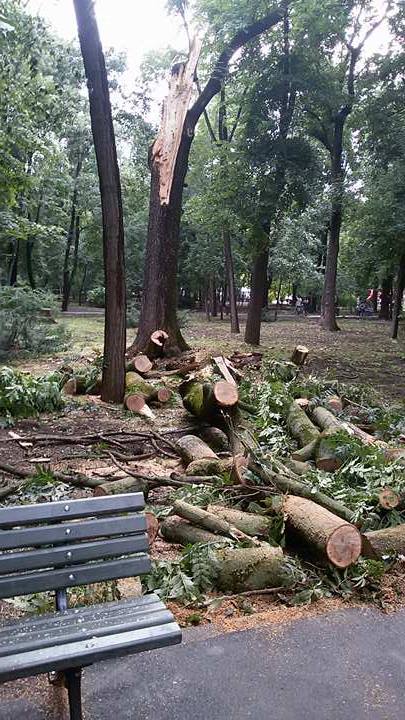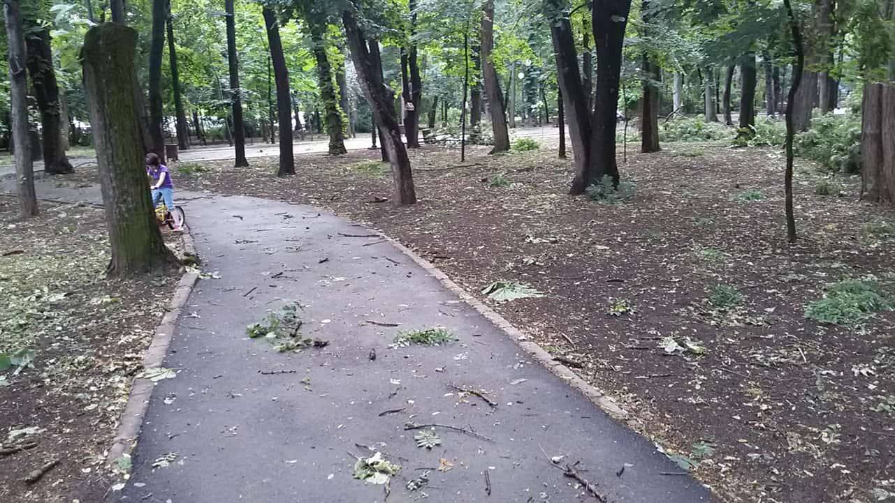 Pagubele după furtună, încă persistă, la ora 19.00, în Parcul Copou din municipiul Iaşi.