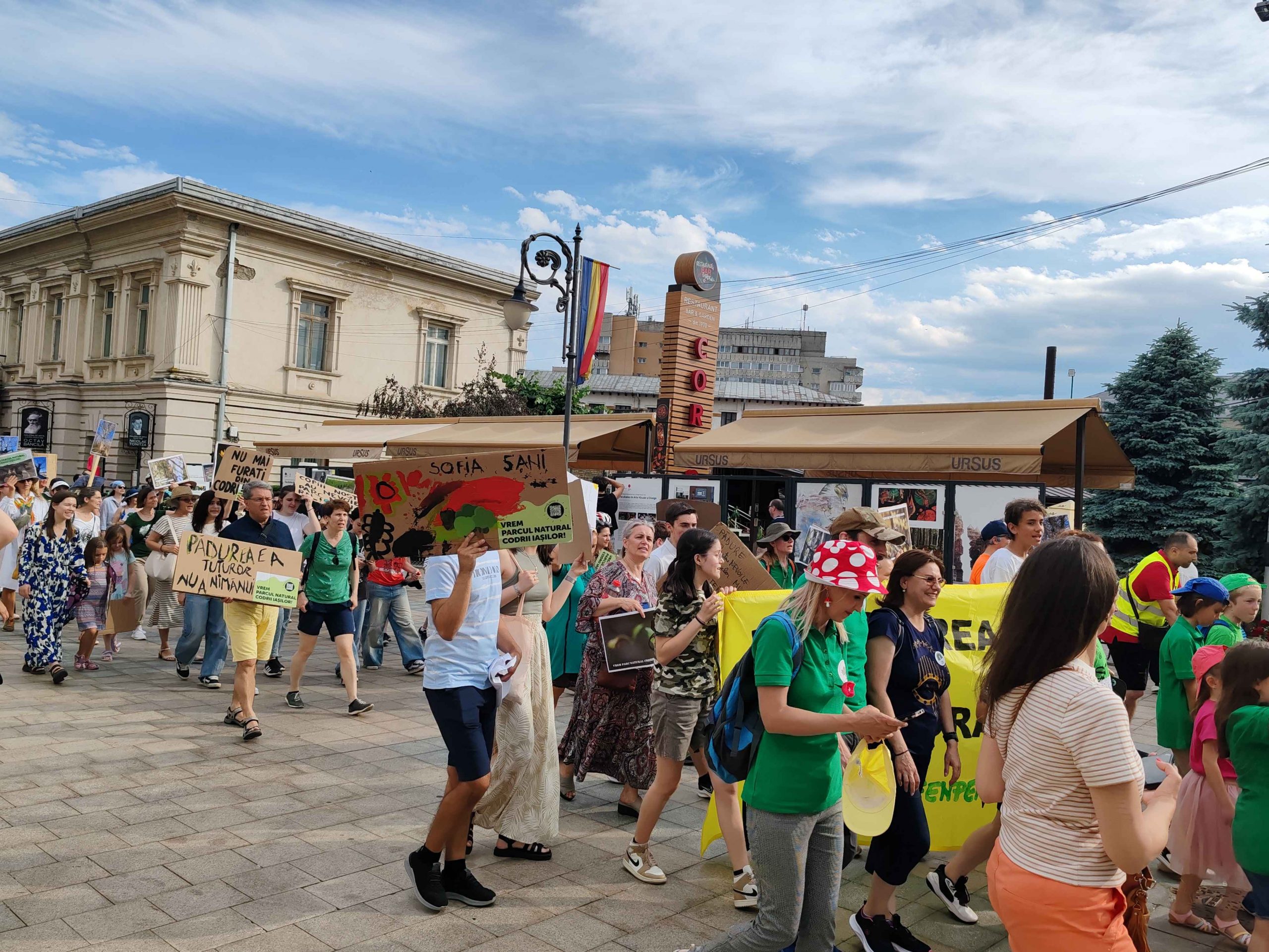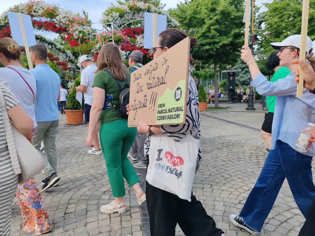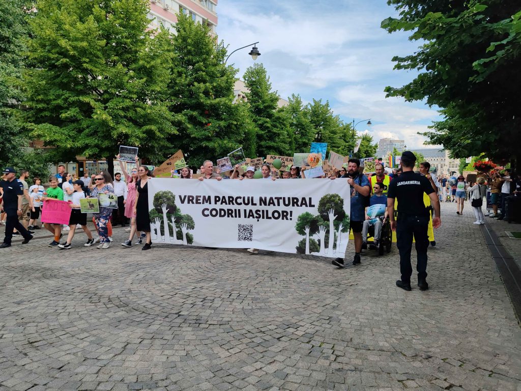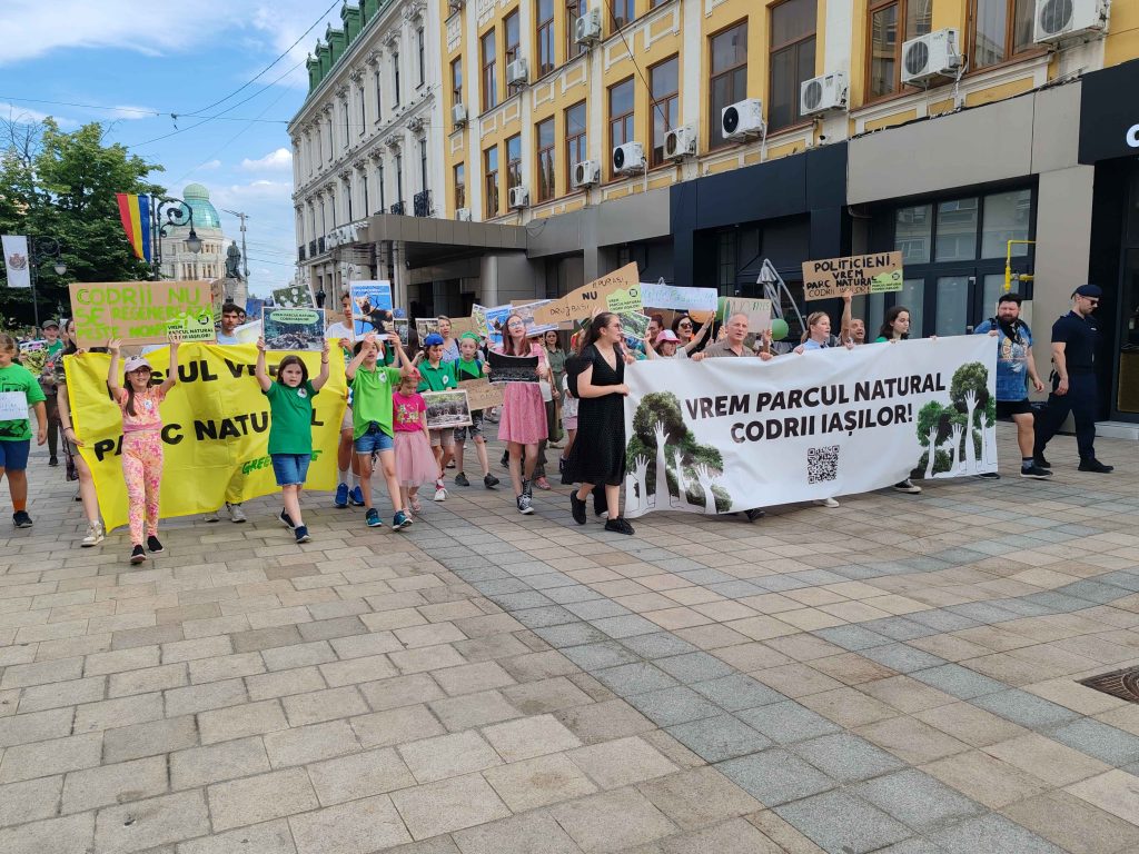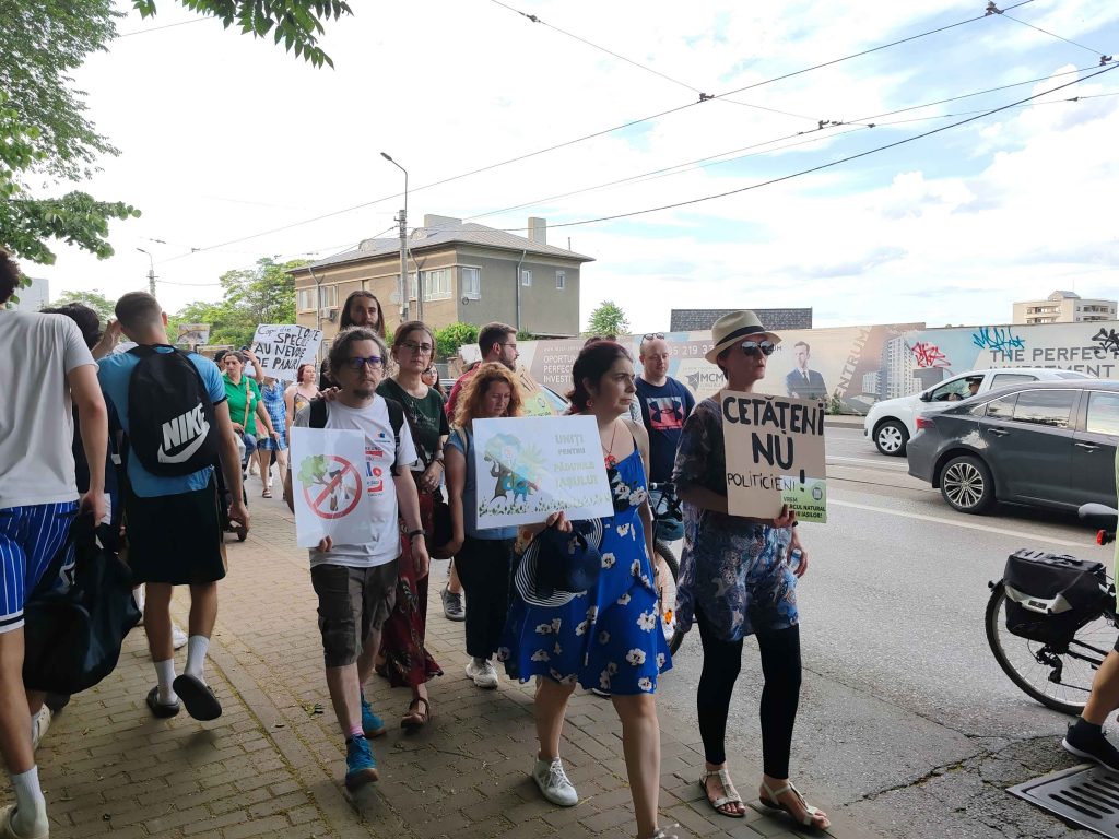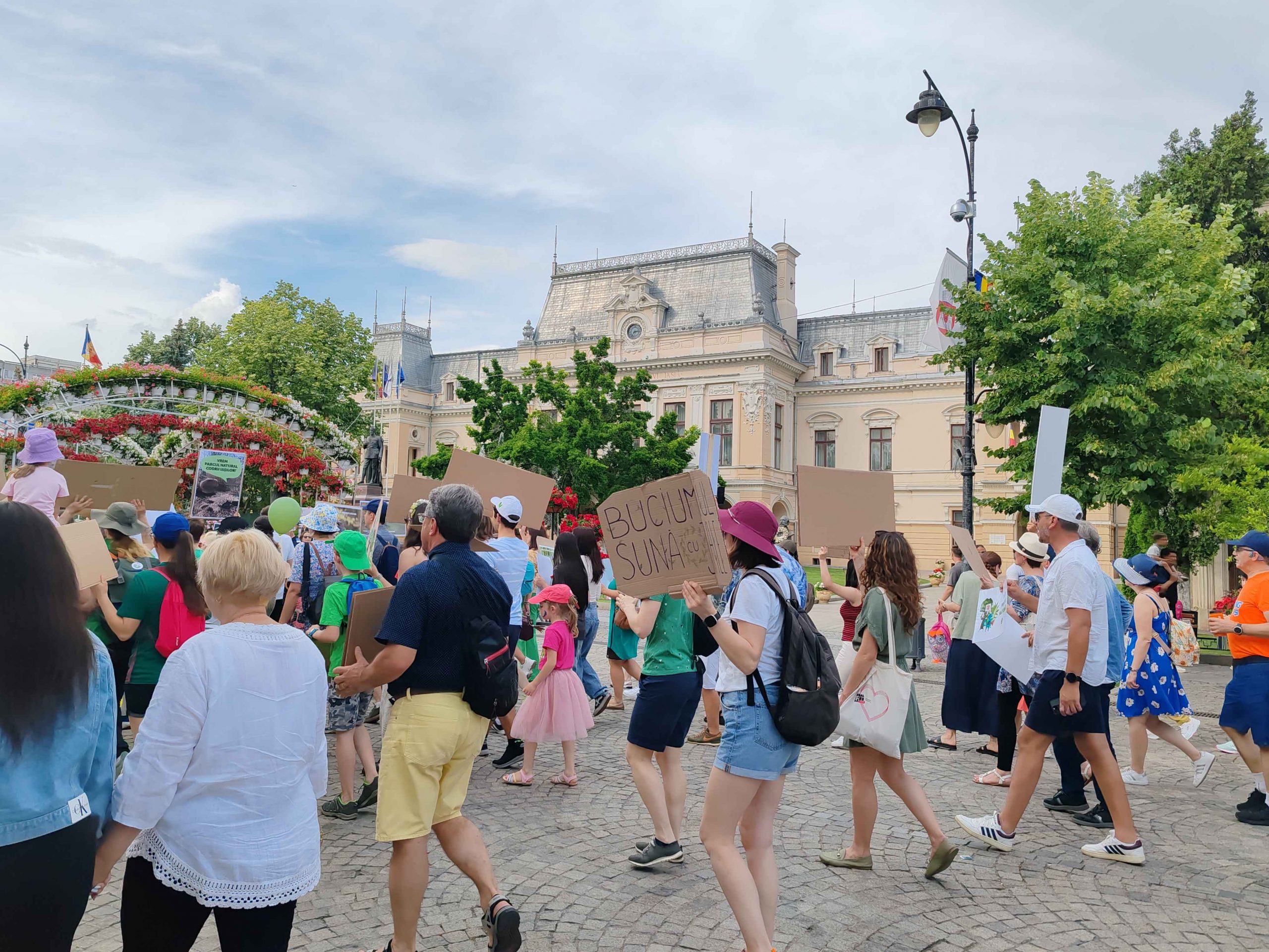 Câteva sute de persoane au protestat, sâmbătă, în zona centrală a muncipiului Iași față de intenția unor firme private de a tăia masiv din pădurile Dobrovăț, Bârnova și Bucium.