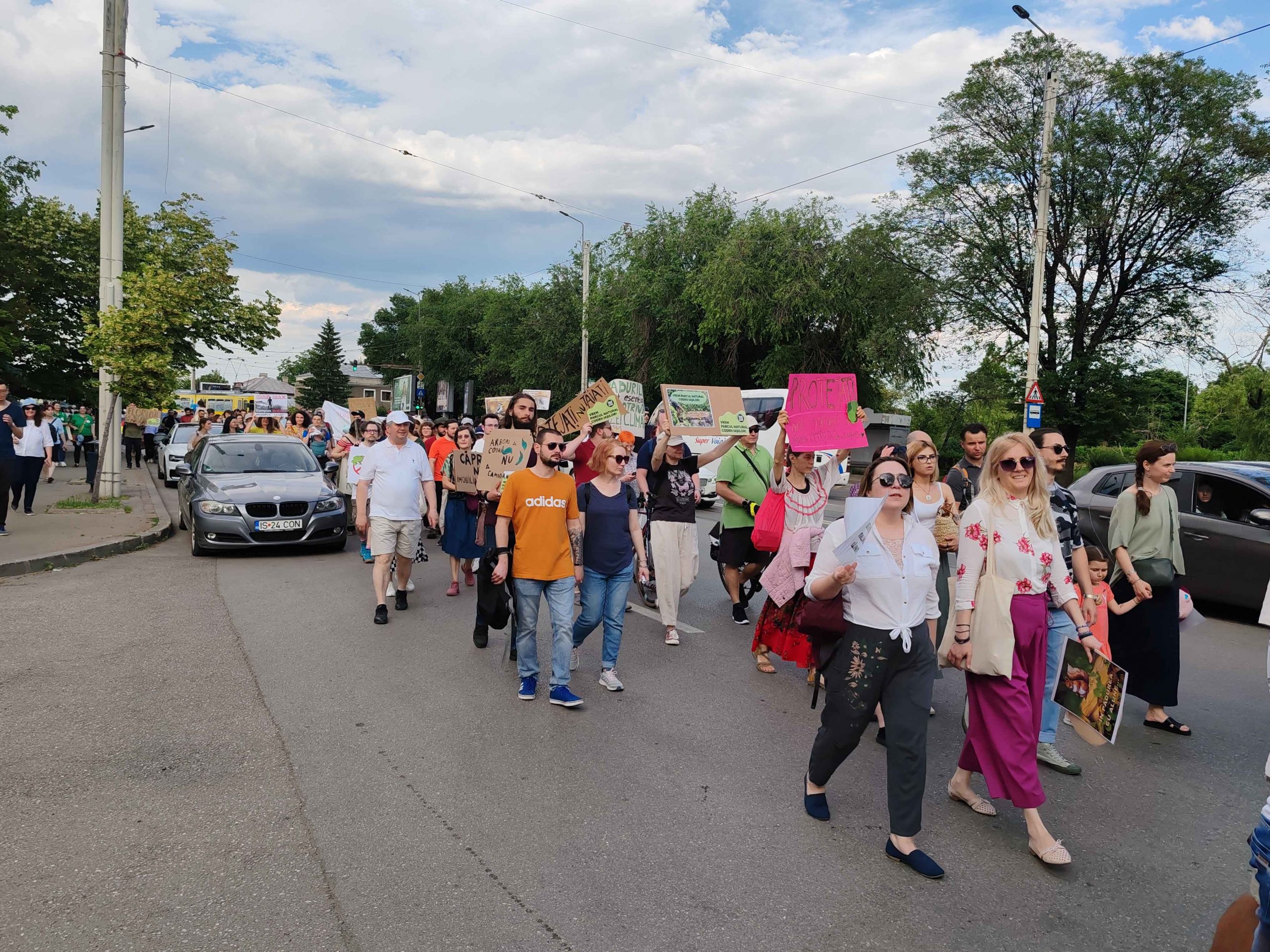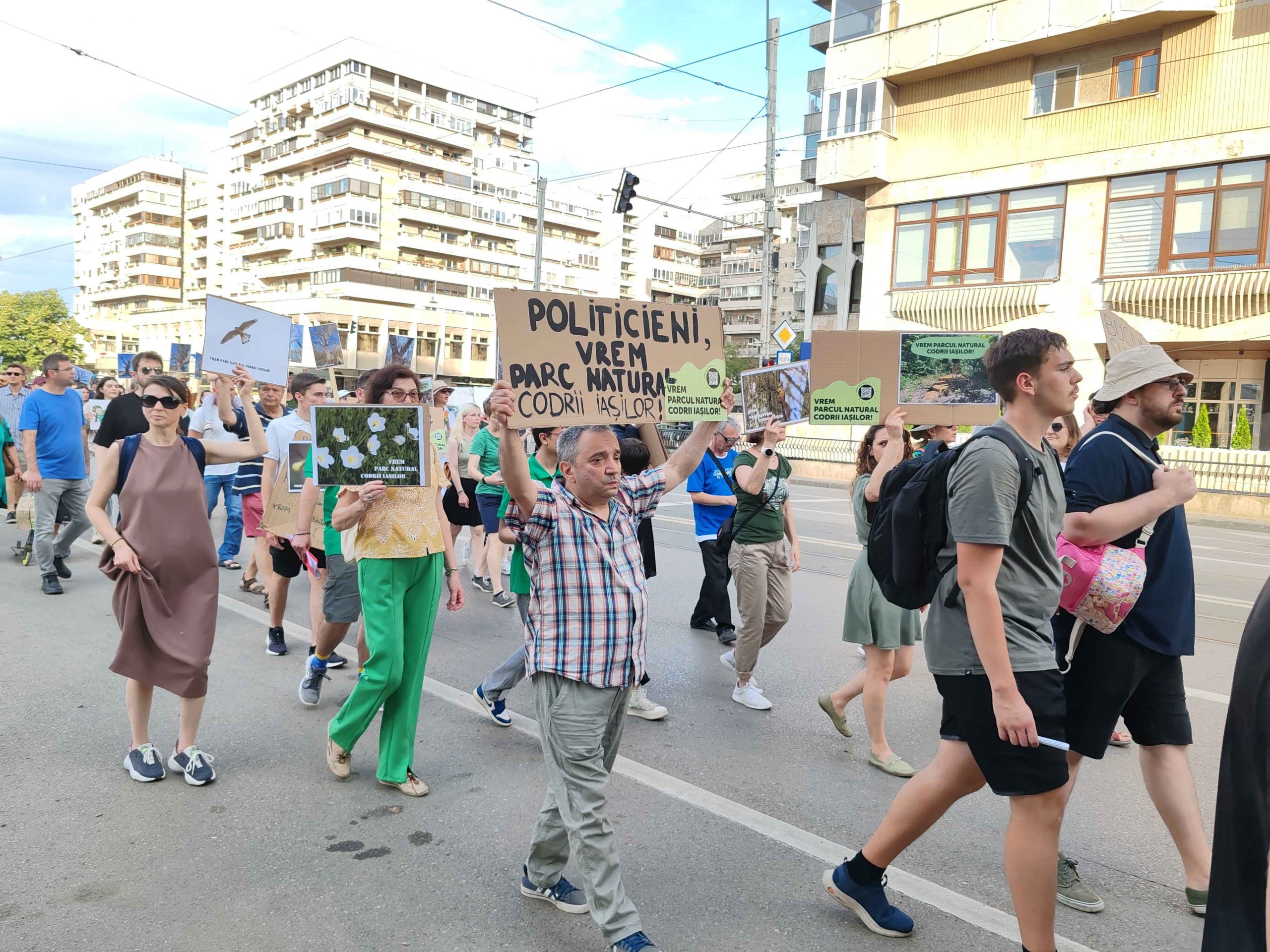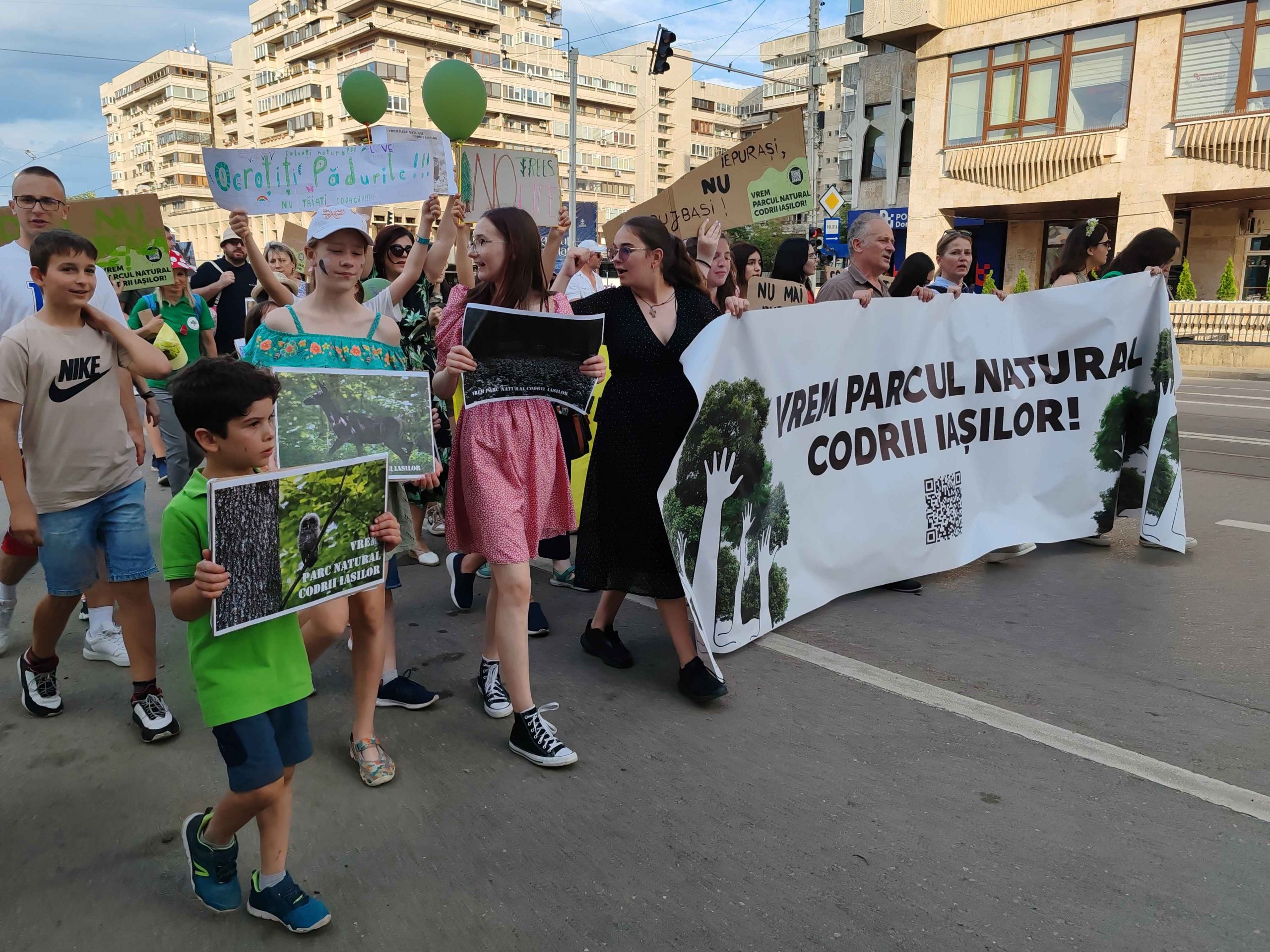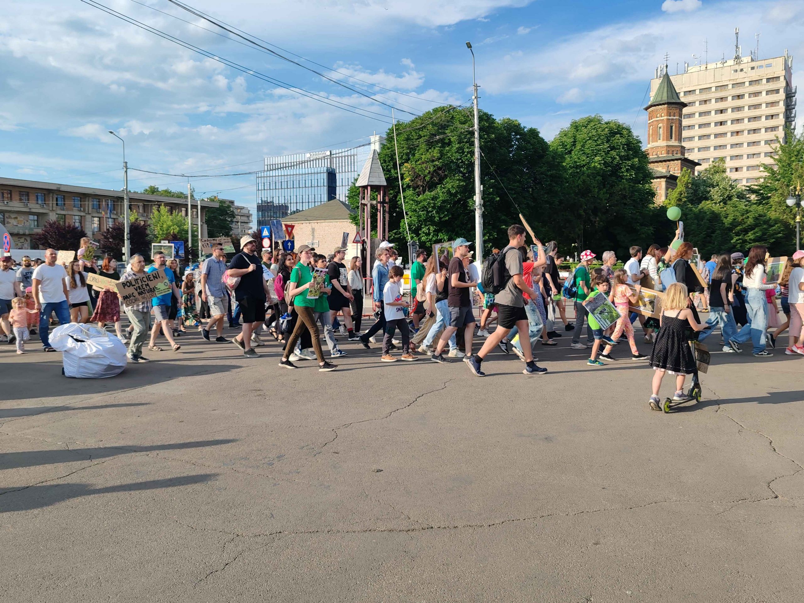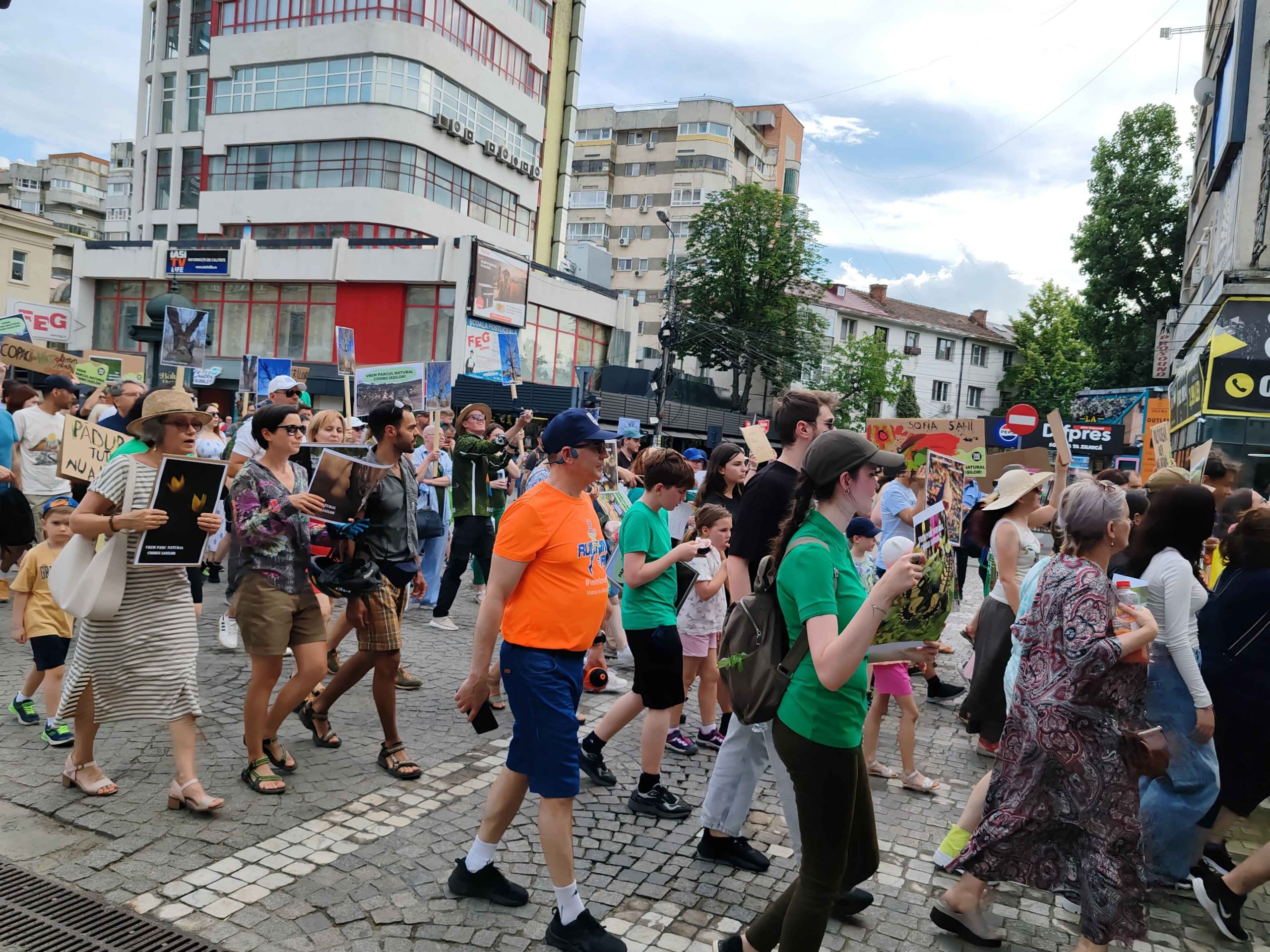 Câteva sute de persoane au protestat, sâmbătă, în zona centrală a muncipiului Iași față de intenția unor firme private de a tăia masiv din pădurile Dobrovăț, Bârnova și Bucium.