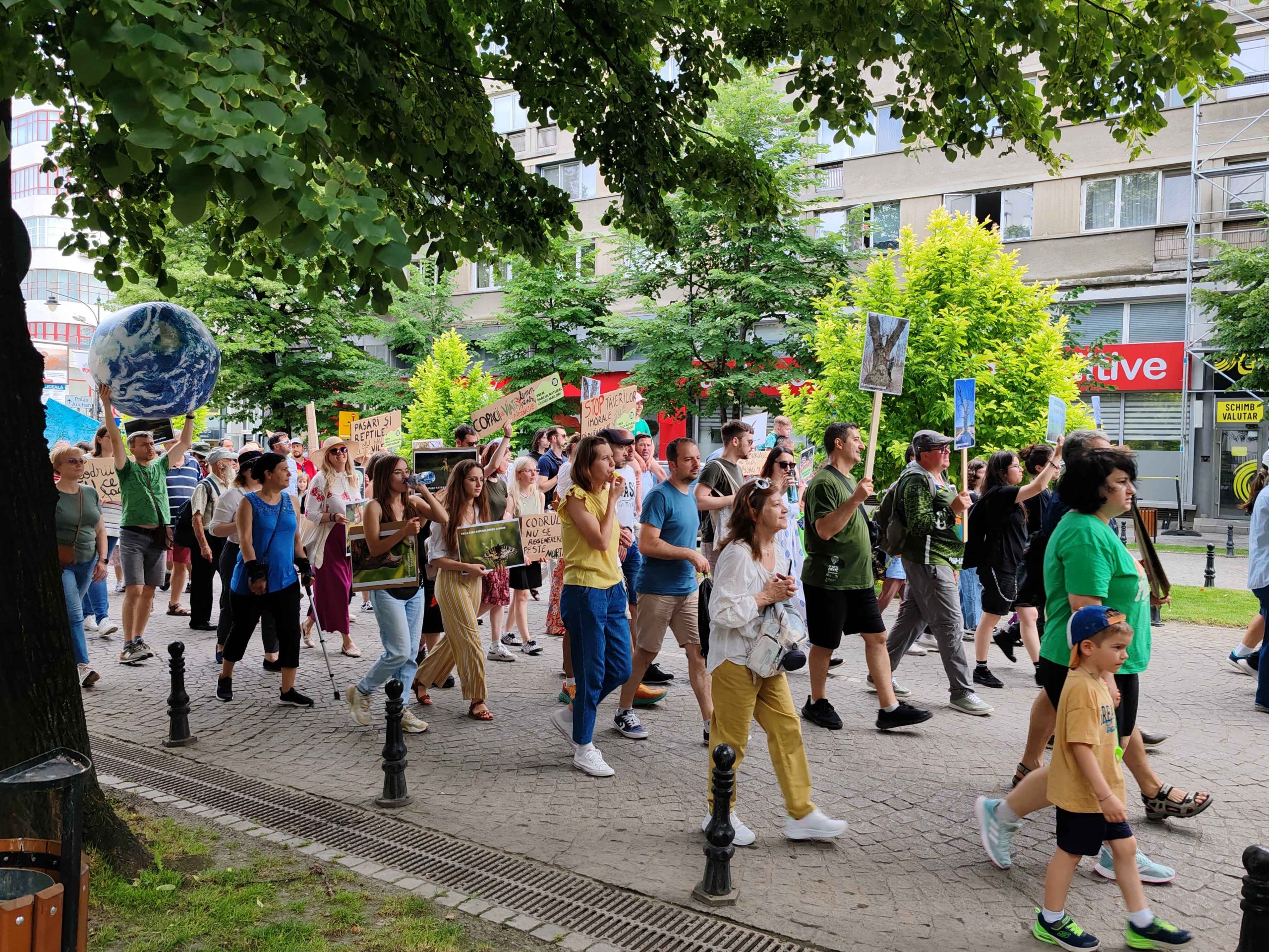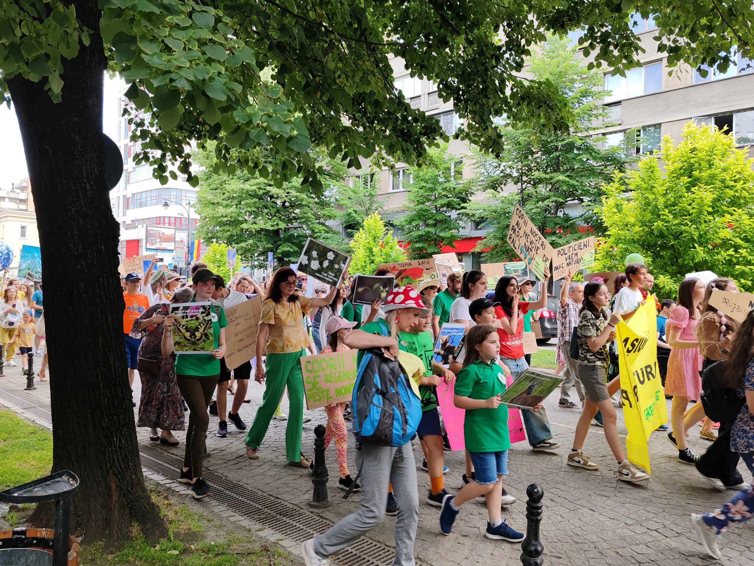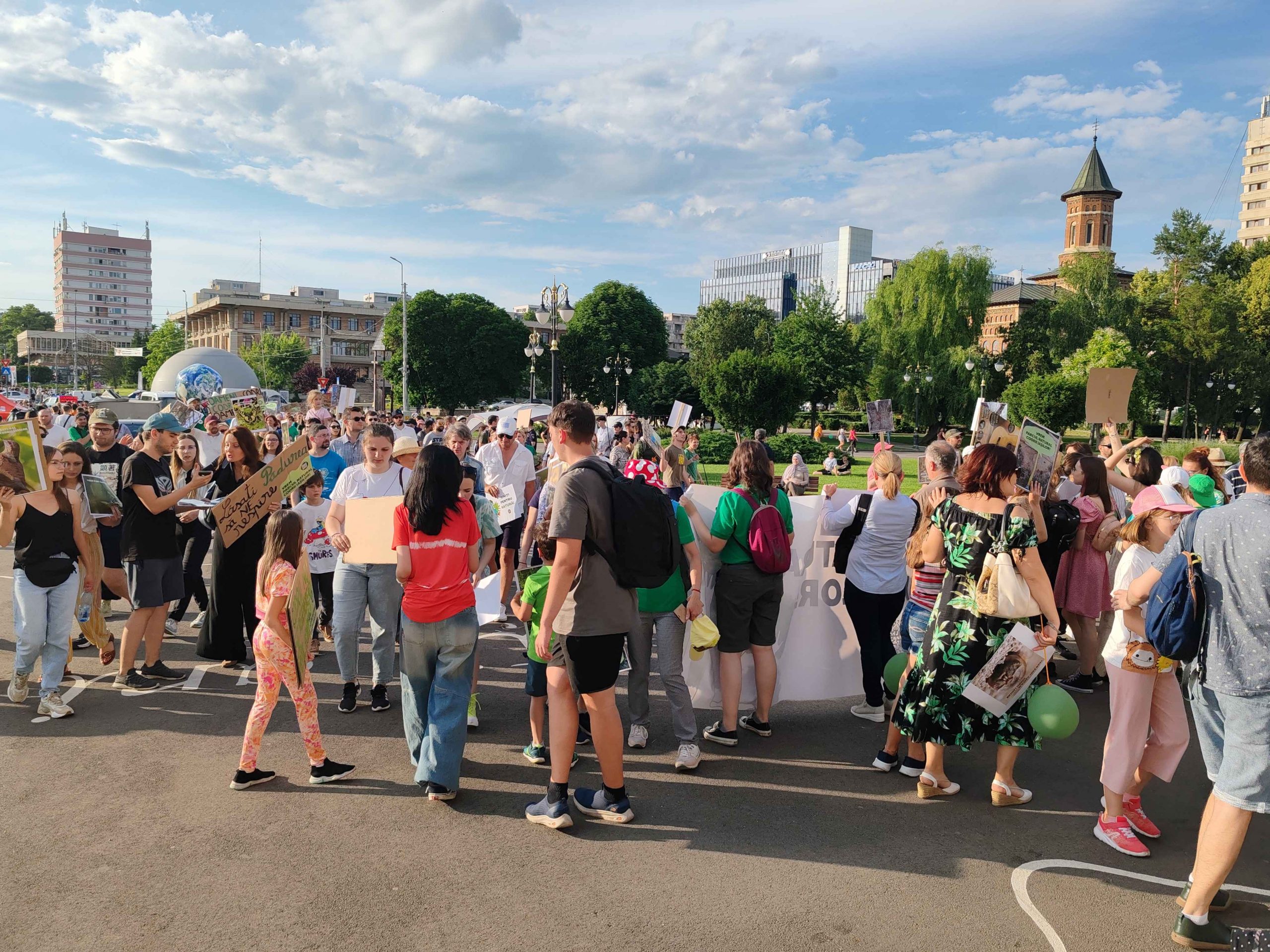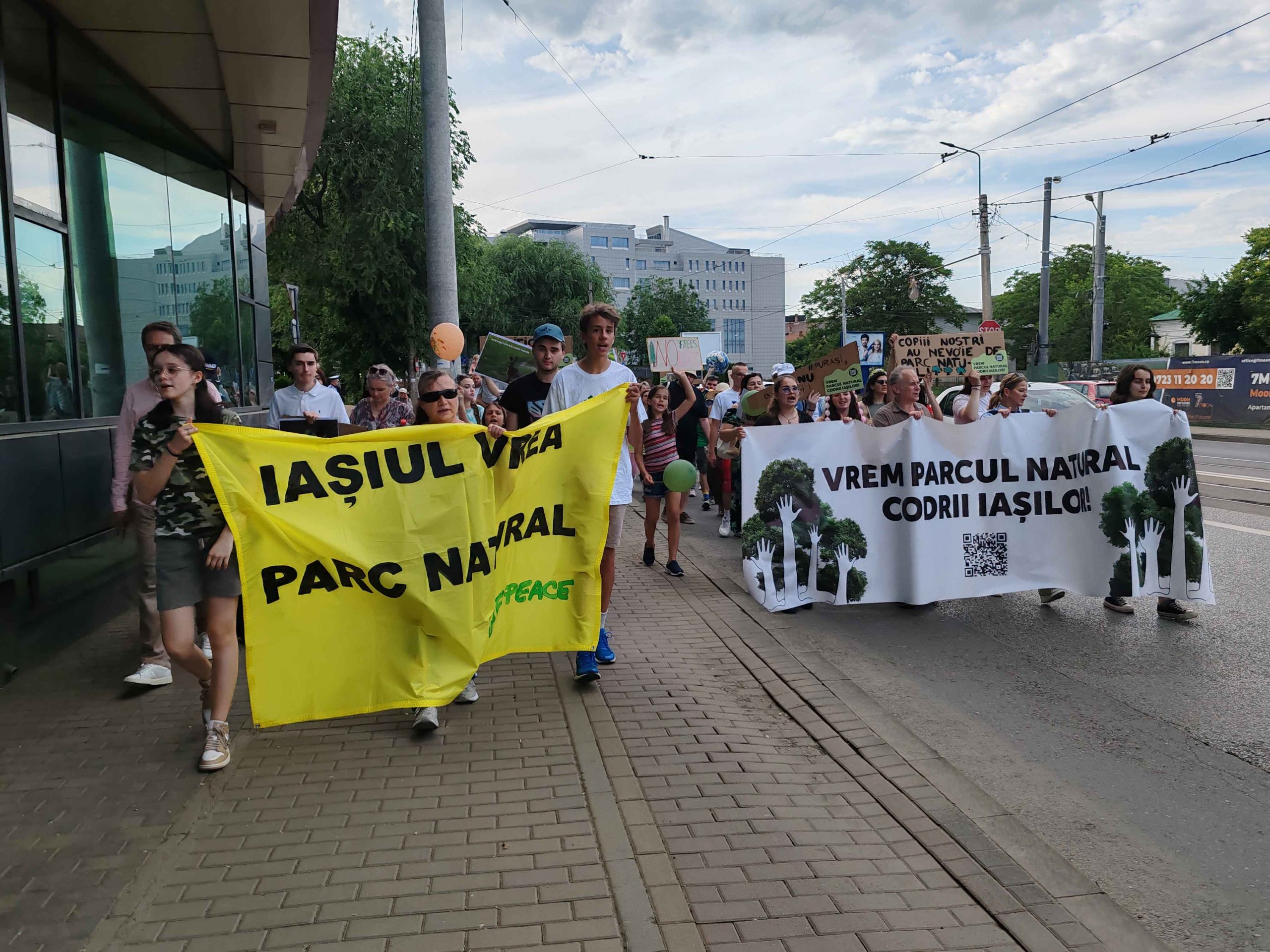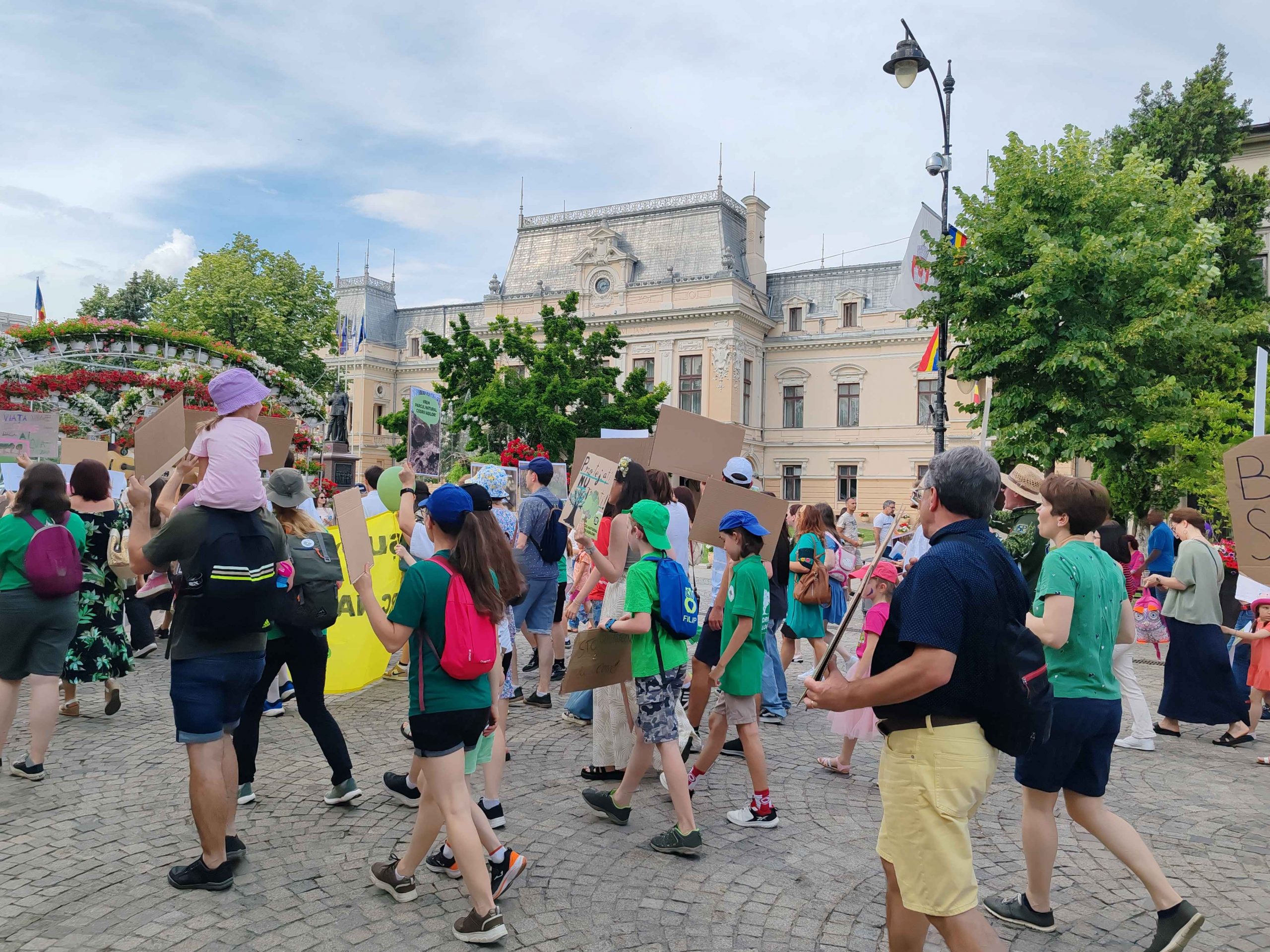 Câteva sute de persoane au protestat, sâmbătă, în zona centrală a muncipiului Iași față de intenția unor firme private de a tăia masiv din pădurile Dobrovăț, Bârnova și Bucium.