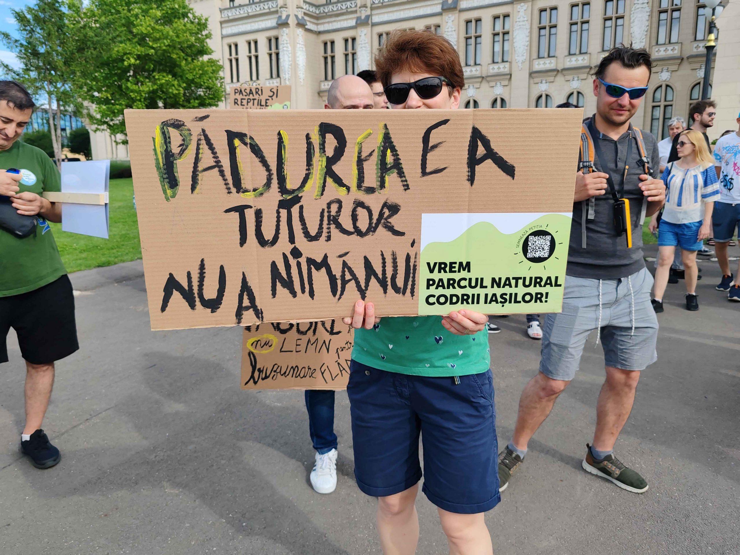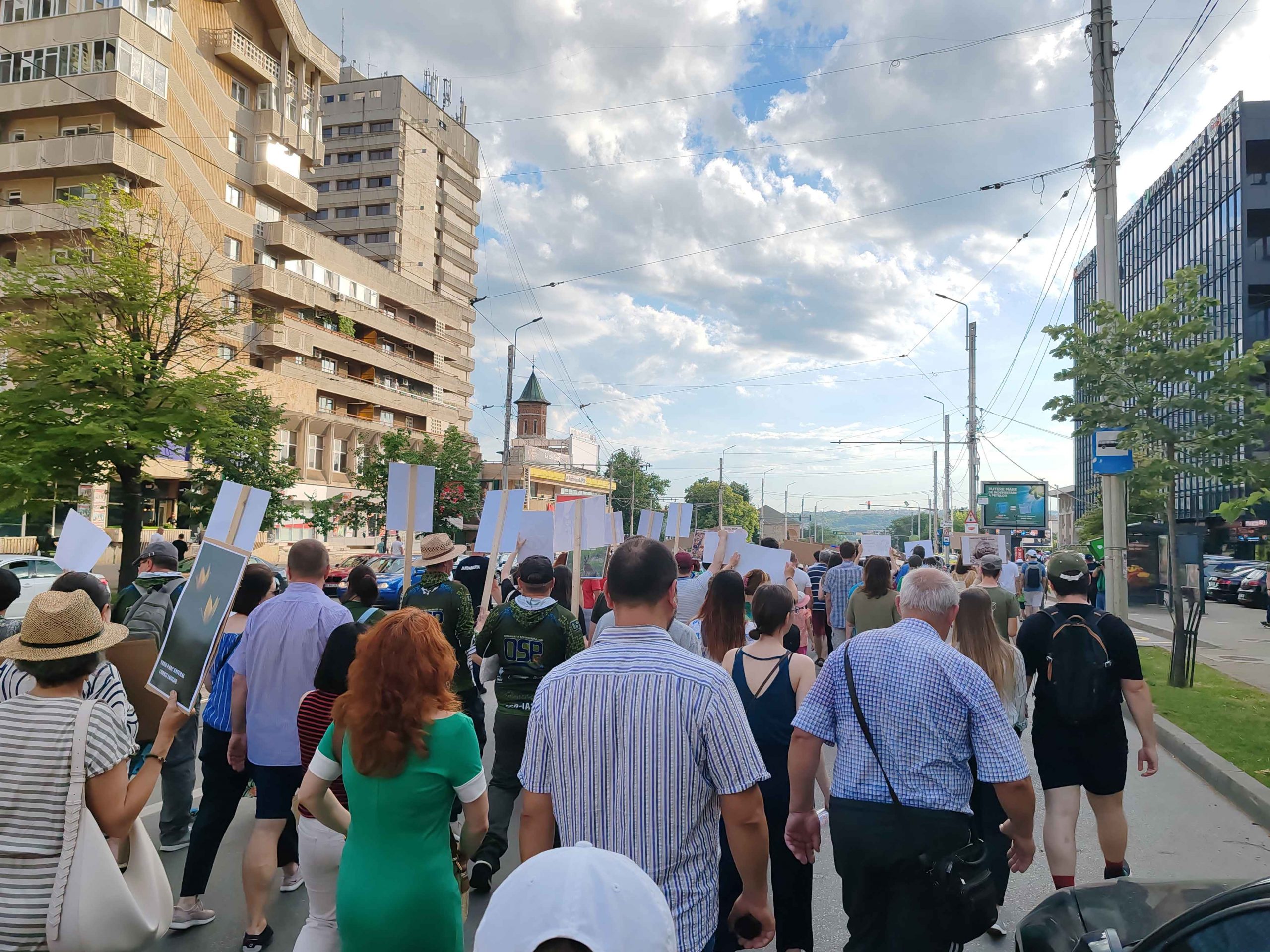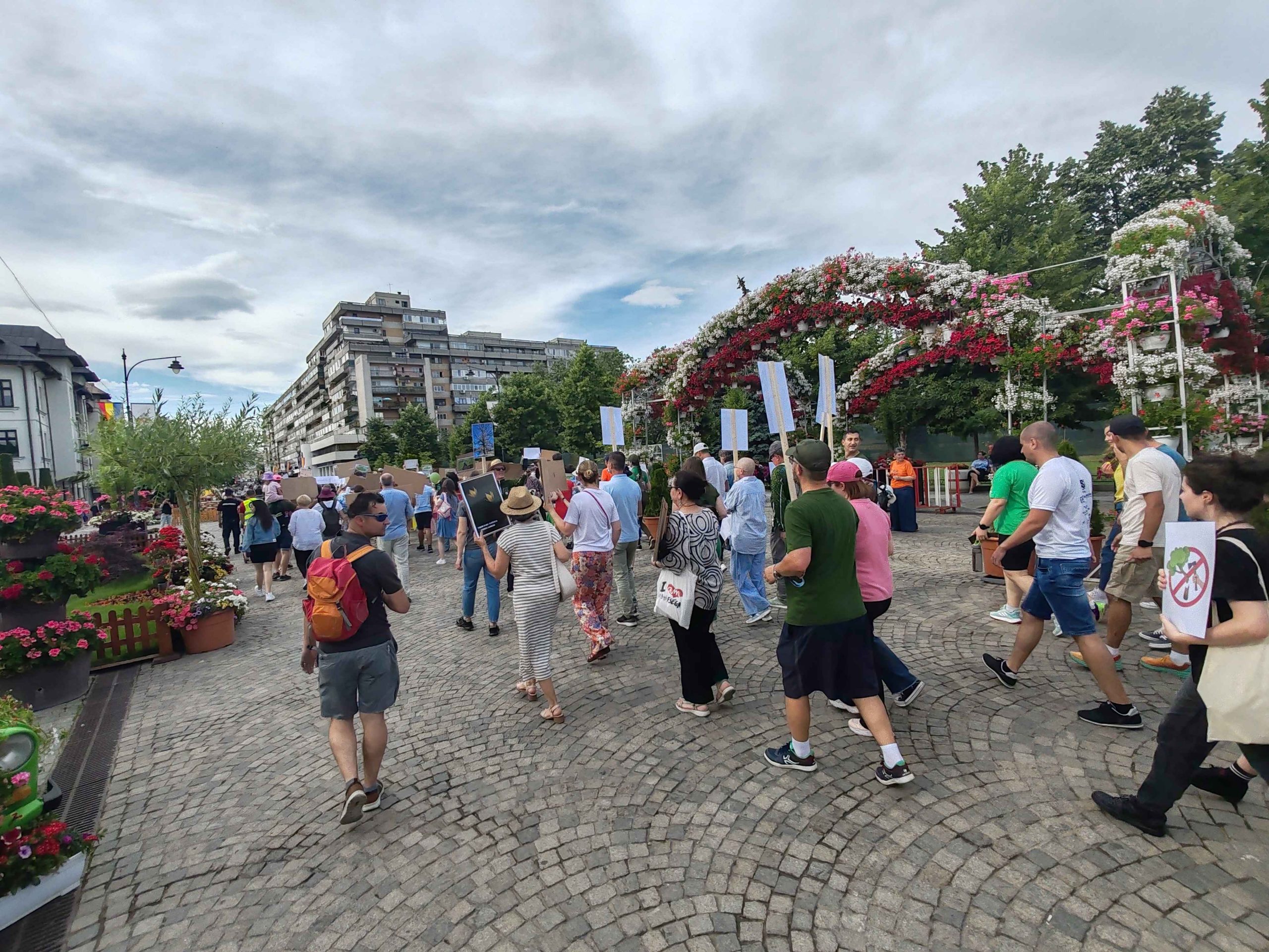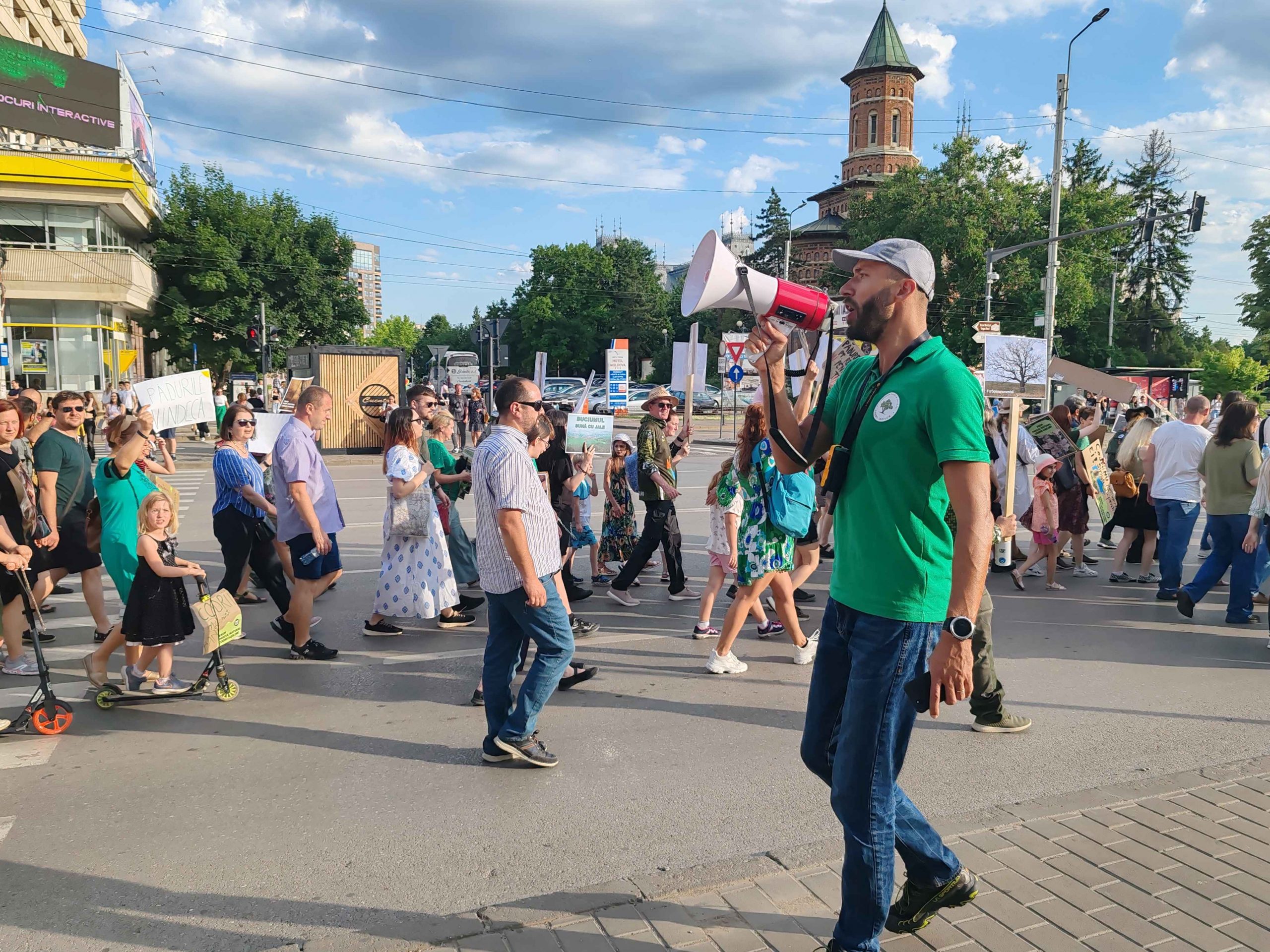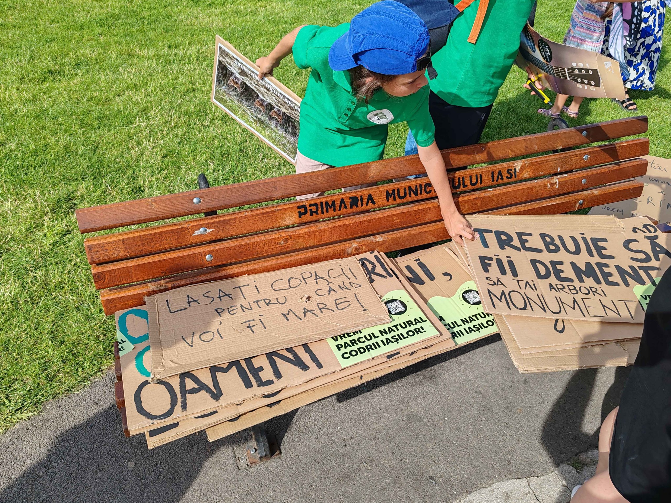 Câteva sute de persoane au protestat, sâmbătă, în zona centrală a muncipiului Iași față de intenția unor firme private de a tăia masiv din pădurile Dobrovăț, Bârnova și Bucium.