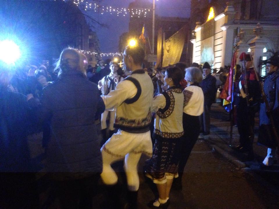 Diseară este programată retragerea cu torţe a militarilor din Garnizoana Iaşi, pe traseul Piaţa Unirii – Piaţa Palatului Culturii. Fără vreo urmă de spectacol regizat, câţiva ieşeni s-au prins într-o horă, înaintea acestui eveniment.