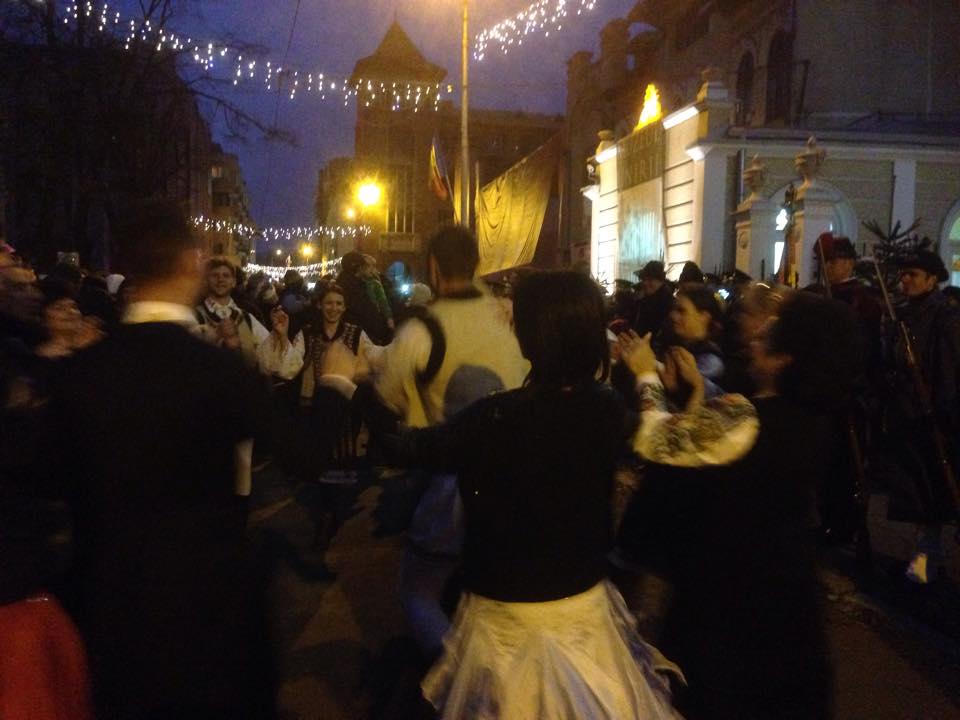 Diseară este programată retragerea cu torţe a militarilor din Garnizoana Iaşi, pe traseul Piaţa Unirii – Piaţa Palatului Culturii. Fără vreo urmă de spectacol regizat, câţiva ieşeni s-au prins într-o horă, înaintea acestui eveniment.