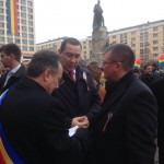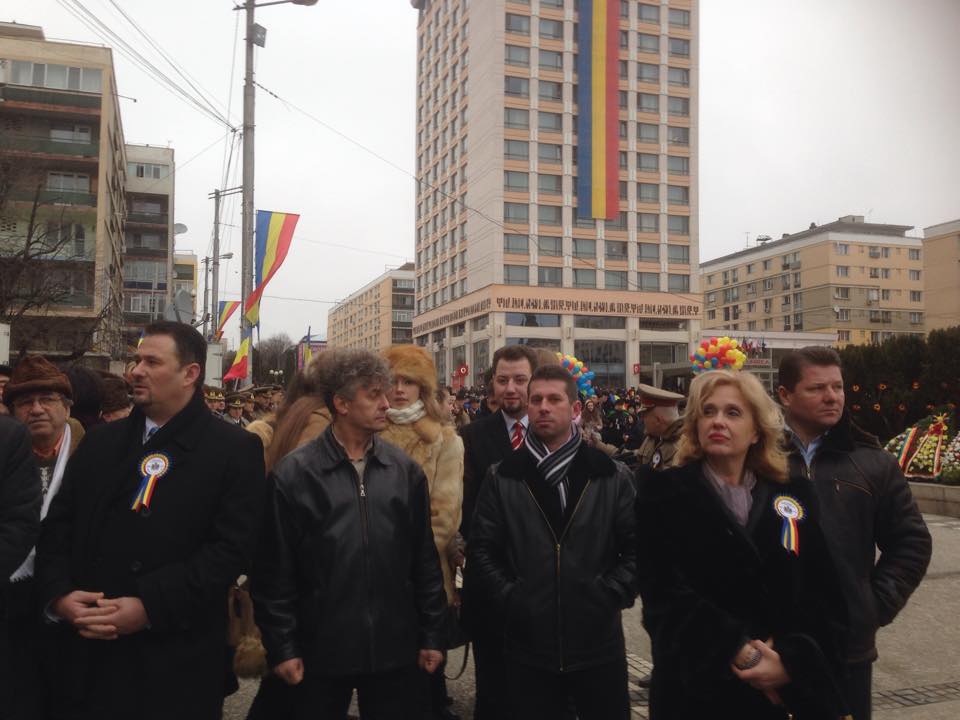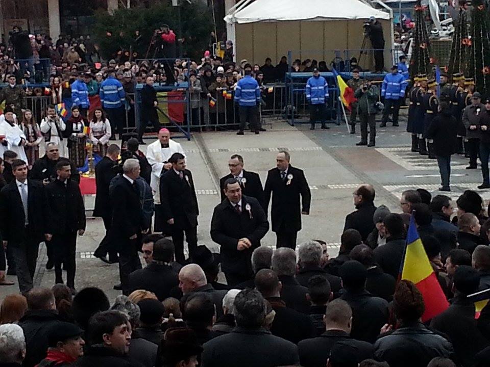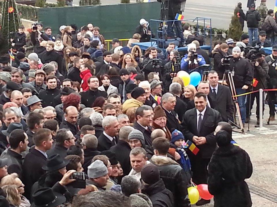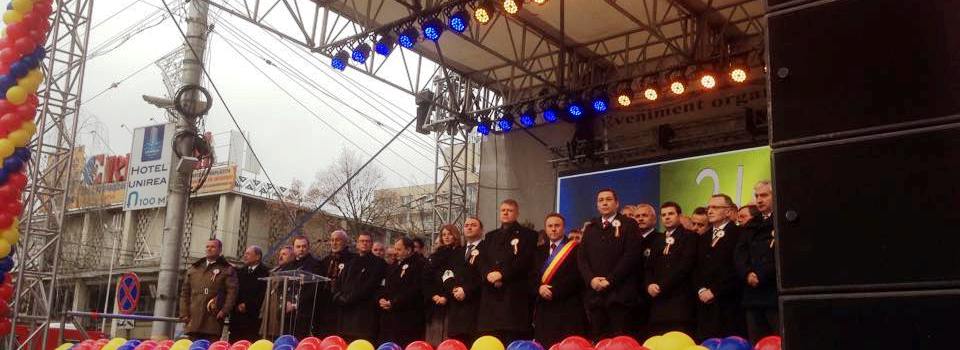 La eveniment, iau parte oficialităţile locale, membri ai Guvernului, lideri politici. Pe scena amplasată în Piaţa Unirii, alături de politicienii români se află şi primarul Chişinăului, Dorin Chirtoacă, şi primarul oraşului Cernăuţi, Oleksi Kaspruk.